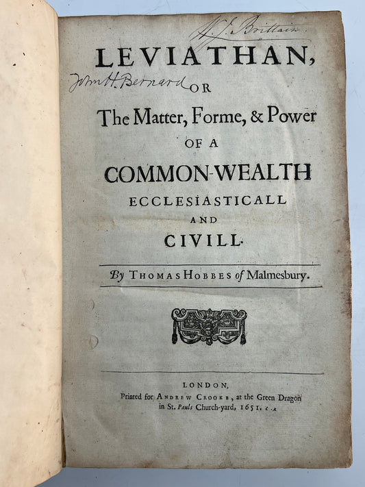 Leviathan by Thomas Hobbes 1651 First Edition First Issue