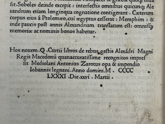 The History of Alexander the Great by Quintus Curtius Rufus 1481
