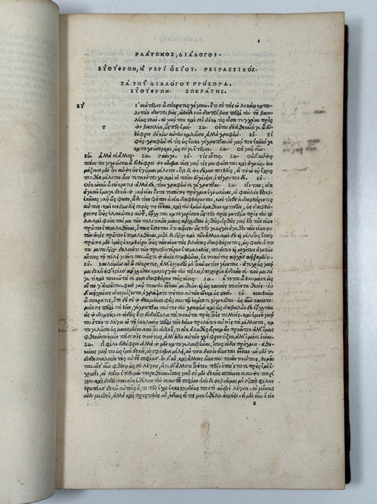 The Editio Princeps of Plato 1513; One of the Most Important Printings of the Aldine Press