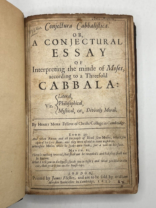 Conjectura Cabbalistica by Henry More 1653 First Edition