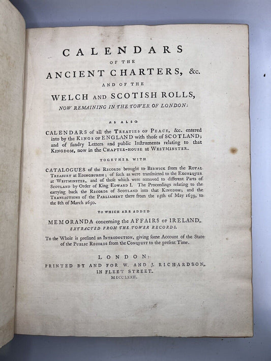 Calendars of the Ancient Charters by Joseph Ayloffe 1772 First Edition