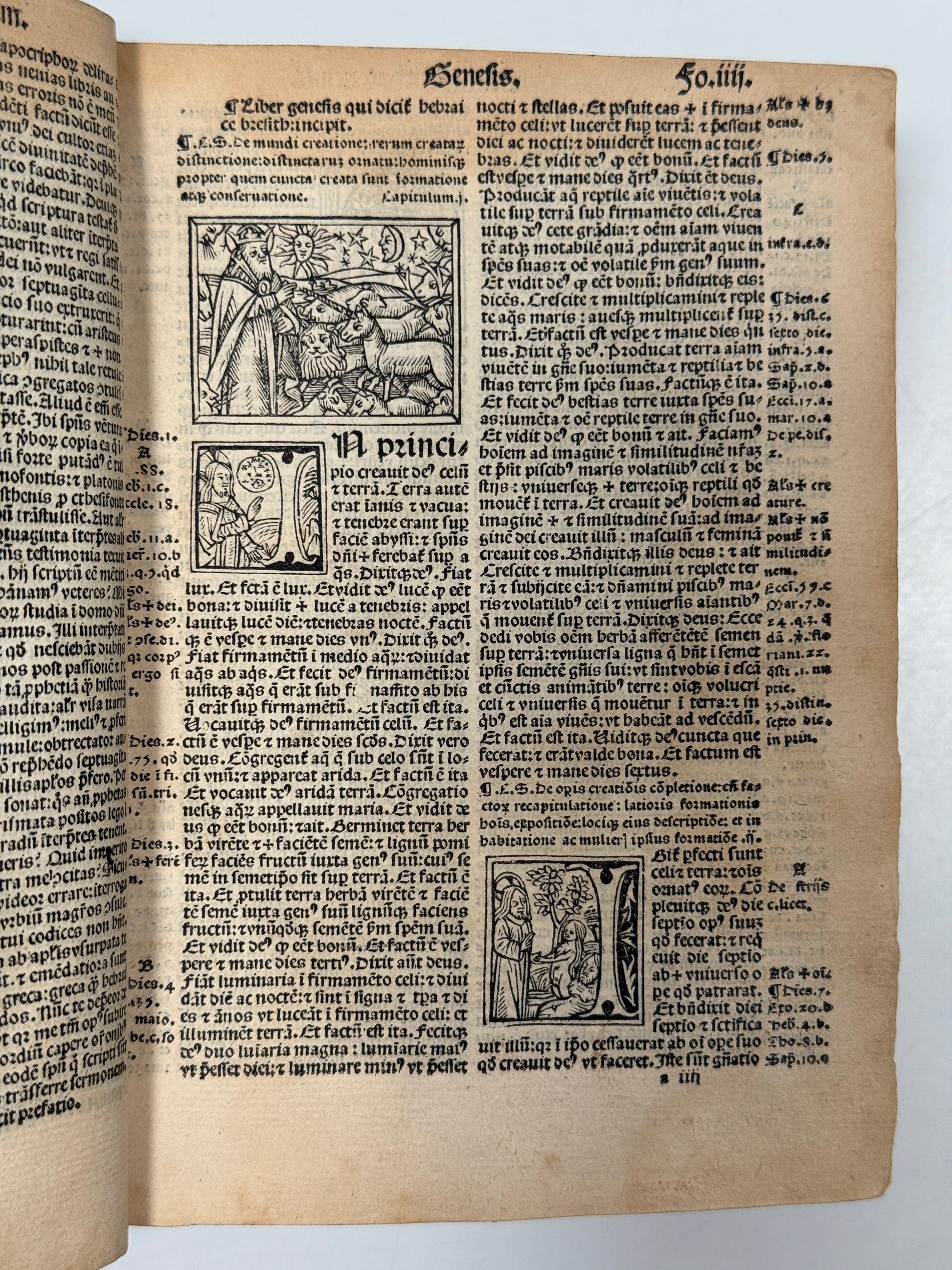 It represents a luxurious and finely produced edition, distinguished by hundreds of historiated capitals printed throughout, together with several charming small in-text illustrations, including especially fine small illustrations at Genesis I and the opening of Revelation.