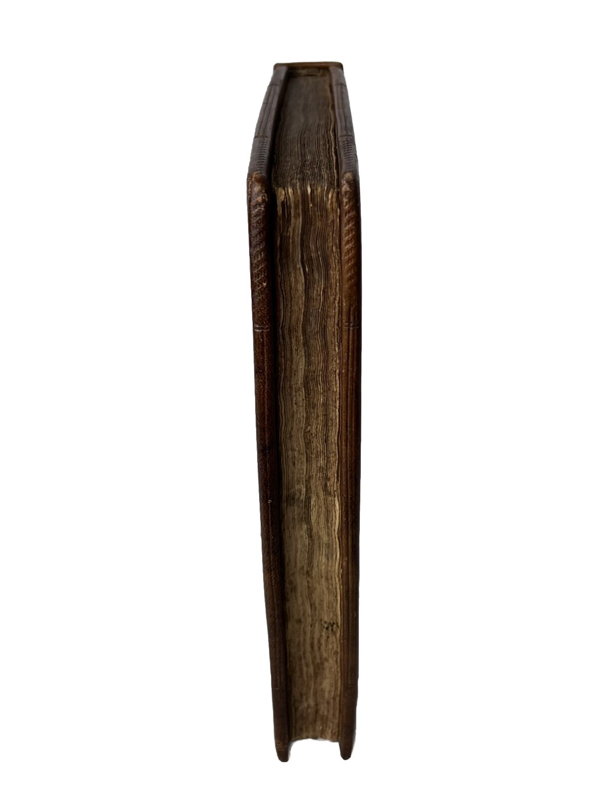 Full leather, spine tooled in gilt with some stamped lines decorating the binding in a very traditional 17th century style. Binding is circa the 19th century and is very nicely executed. Spine uniformly sunned but shows very well on the shelf with the gilt bright. Joints very slightly rubbed but generally near fine with both boards securely attached, the binding secure and without shelf lean. Very minor rubbing to boards else they are near fine. Page edges dulled and discoloured as typical. Without any attached bookplates. Early ink ownership inscription to the head of the title page dated August 8th 1725 with a further of Daniel Jennings dated 1730 to the lower part of the title page. The text is unpaginated but the main text collates as complete according to a WorldCat copy. The preliminaries lack one leaf according to the signatures, perhaps a dedication? Mildly toned throughout else very clean. An excellent copy overall.