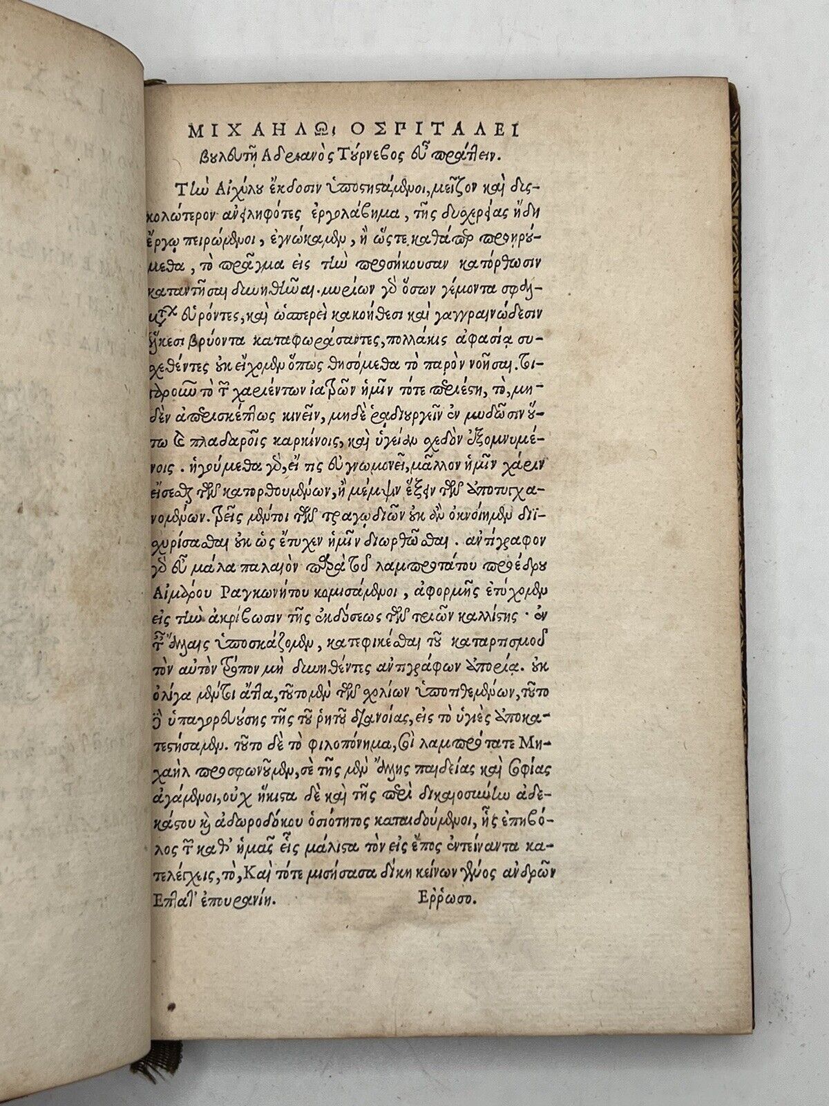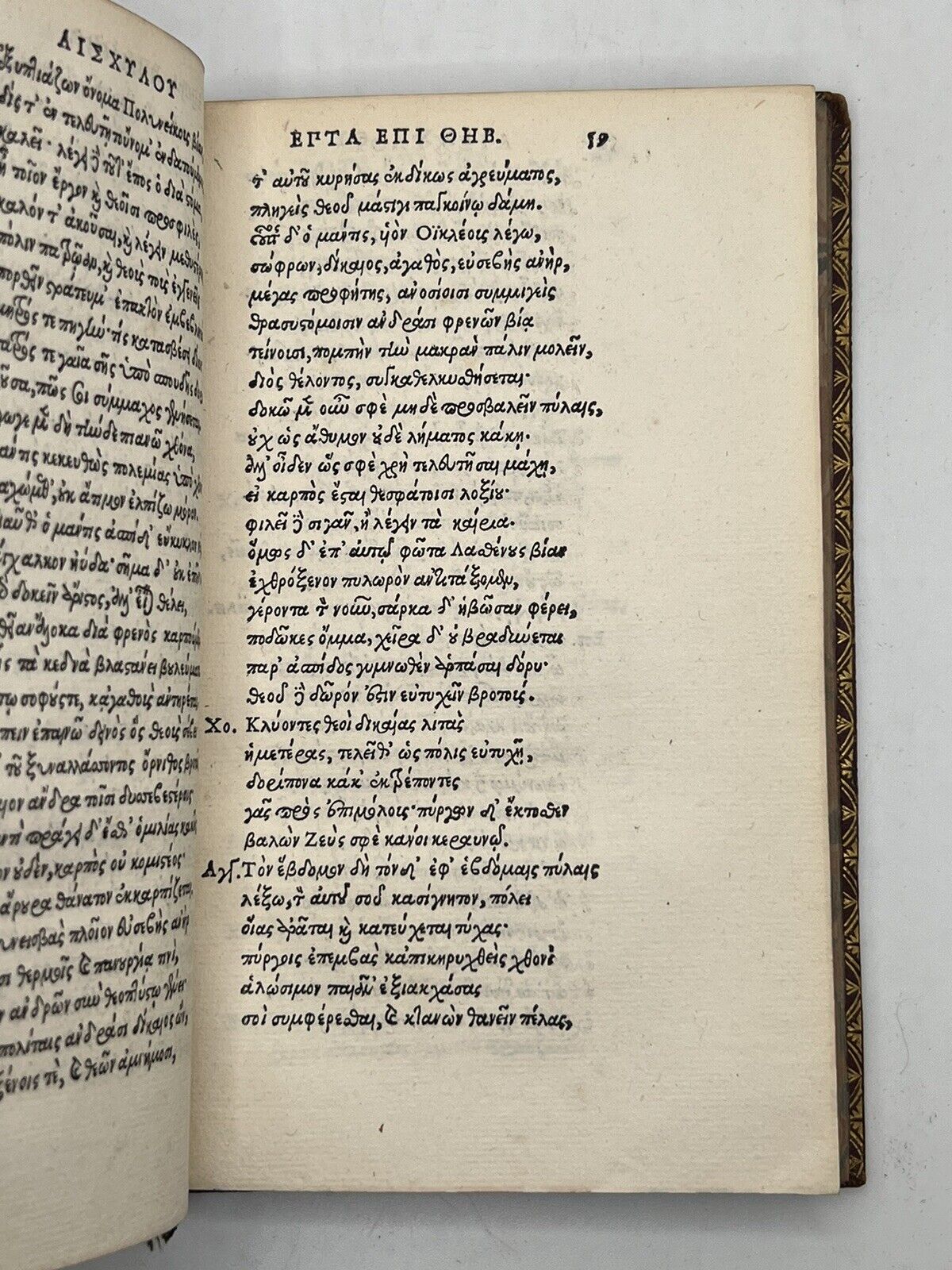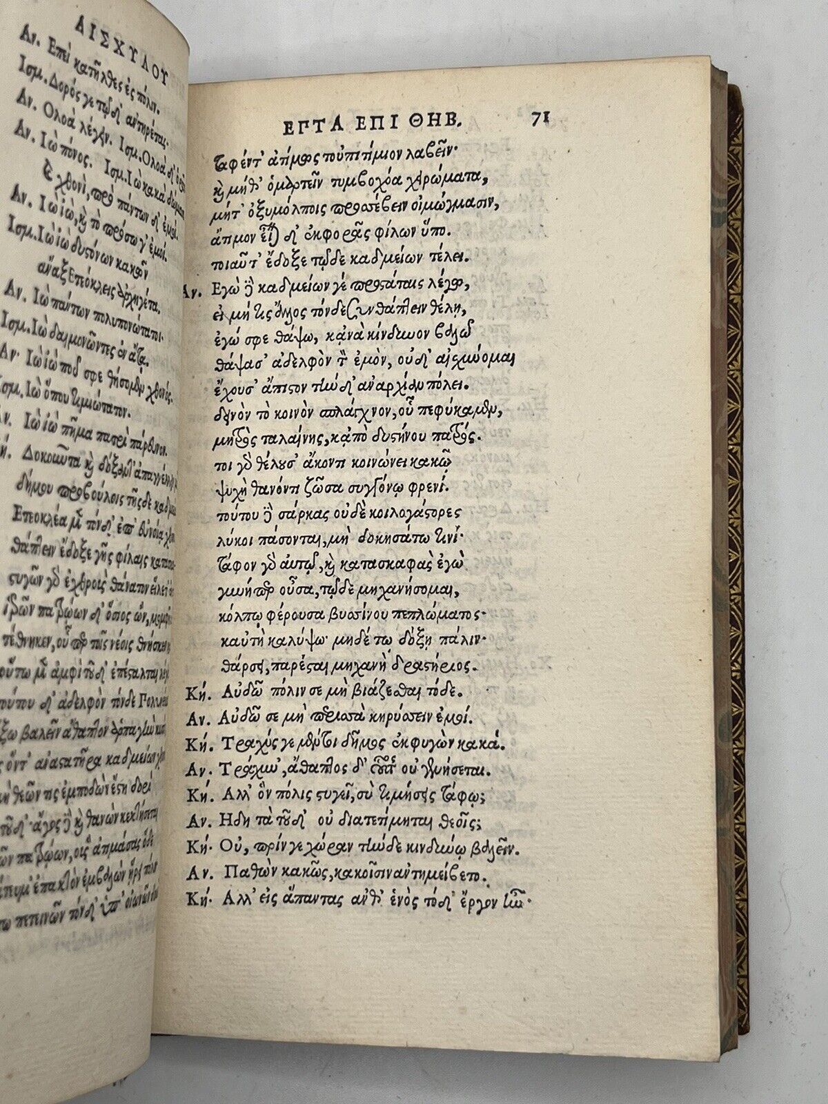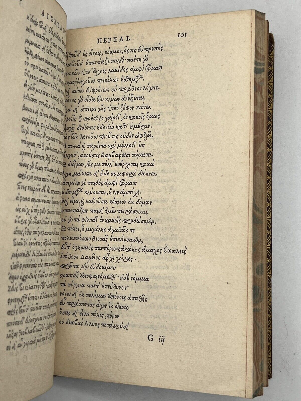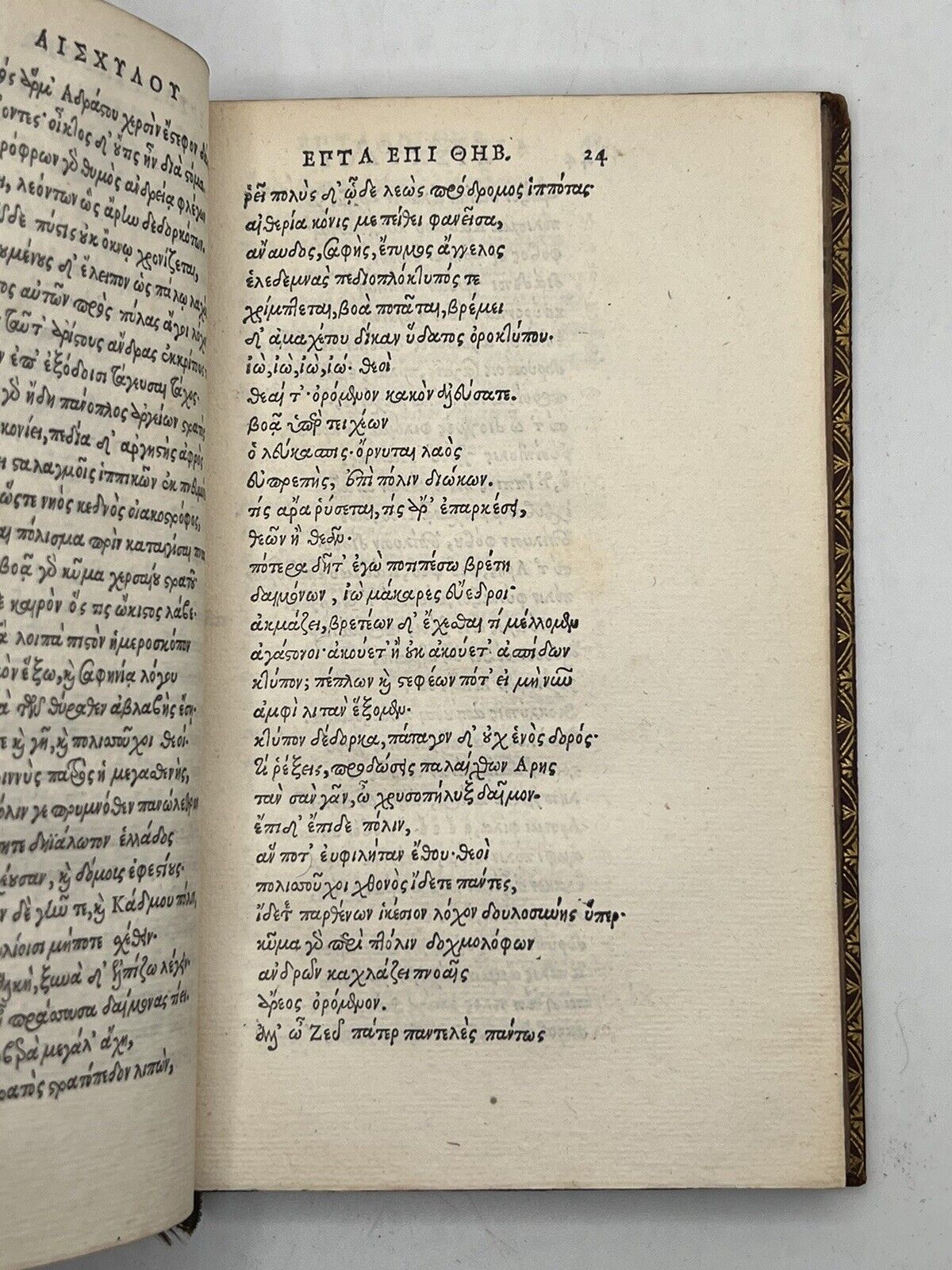 RARE SECOND EDITION OF AESCHYLUS FOLLOWING ONLY THE ALDINE EDITION OF 1518. CONTAINING ALL SEVEN EXTANT PLAYS, PRECEDING THE EDITO PRINCEPS OF AGEMEMNON.