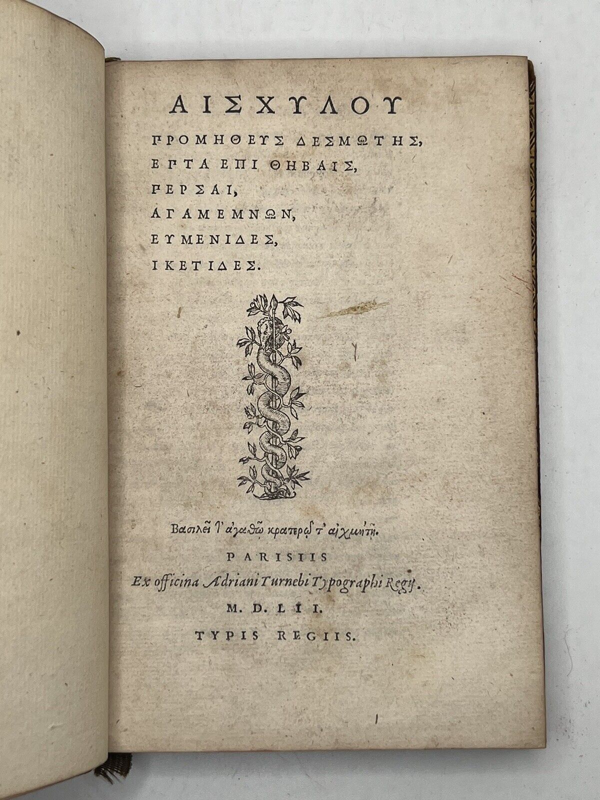 The Tragedies of Aeschylus. Printed in Paris by Adrianus Turnebus in 1552.