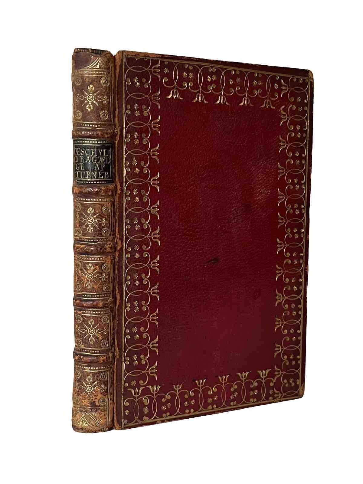 This second edition of Aeschylus is therefore one of the earliest obtainable copies of Aeschylus' plays, with the 1518 Aldine edition being both scarce and rather expensive. Our copy is in a remarkable fine binding, bound circa 1760-1770, in finely tooled full red morocco in the manner of Roger Payne, perhaps being attributable to him.
