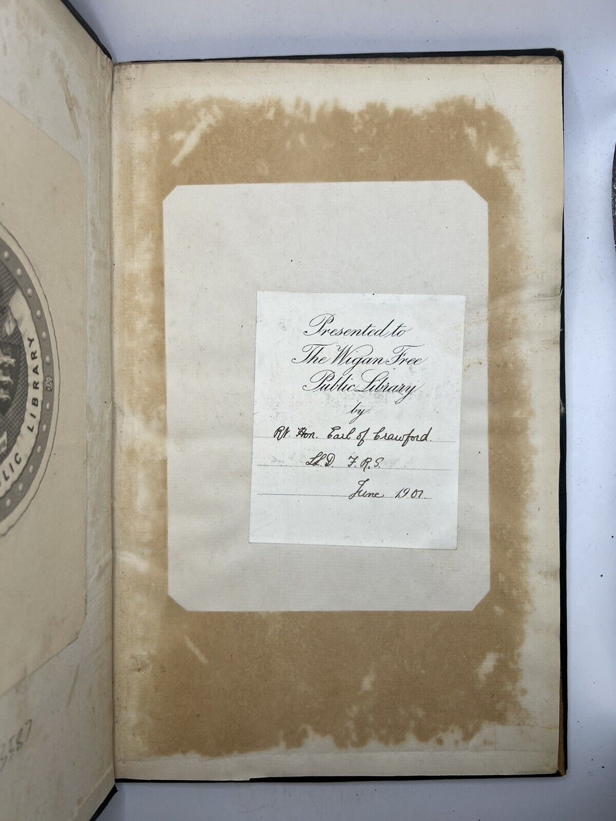 Presentation bookplate reading "Presented to The Wigan Free Public Library by Rt. Hon. Earl of Crawford. LL.D. F.R.S. June 1907."