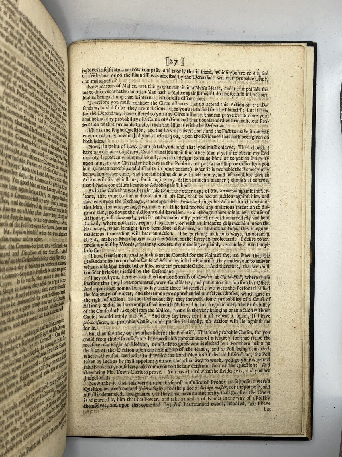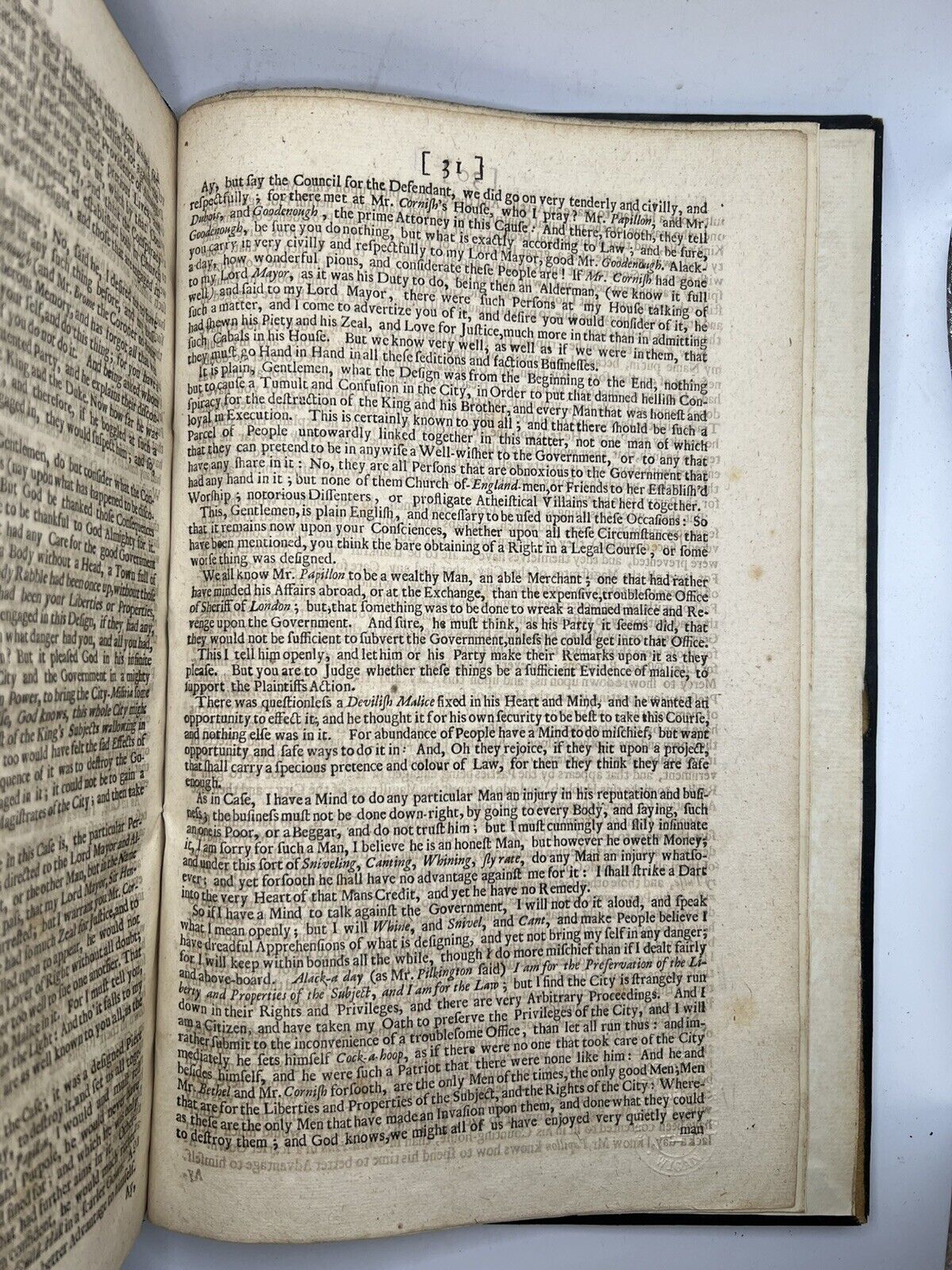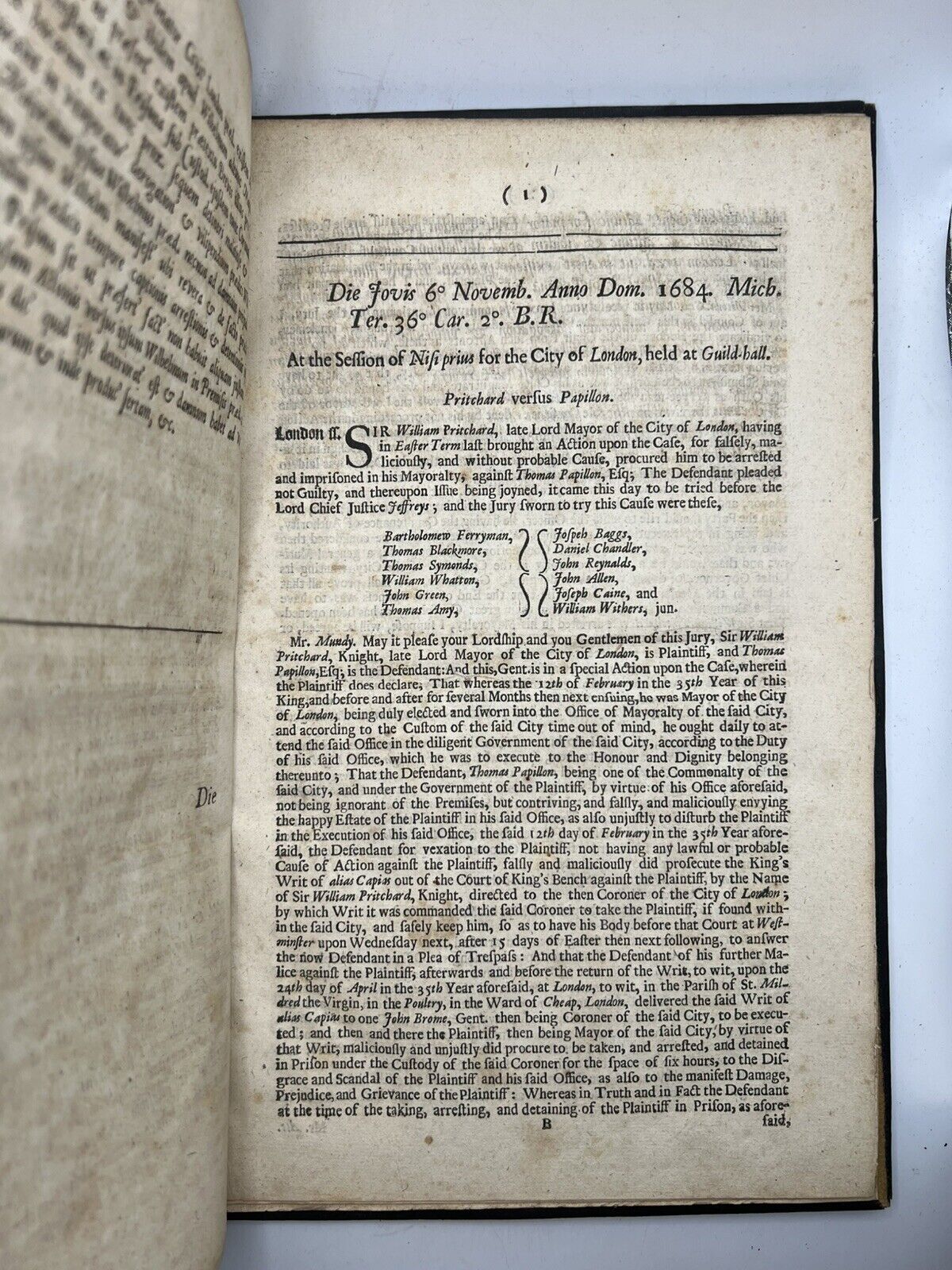 An Exact Account of the Trial Between Sr. William Pritchard, Kt. and Alderman of the City of London, Plaintiff, and Thomas Papillon, Esq; Defendant; In an Action Upon the Cafe. At the Sessions of Nisi Prius Holden for the Court of King's Bench at the Guild-Hall in the City of London, on Thursday the 6th of November, 1684. In Michaelmas Term, in the 36th Year of the Reign of King Charles the Second. Before Sir George Jefferies; Kt. and Baronet, Then Lord Chief Justice of the Said Court of King's Bench. To Which is Added, The Matter of Fact Relating to Election of Sheriffs, as it was Printed in the Year 1682. London: Printed and Sold by Richard Janeway in Queens-head-Court in Pater-Noster-Row. MDCLXXXIX (1689).