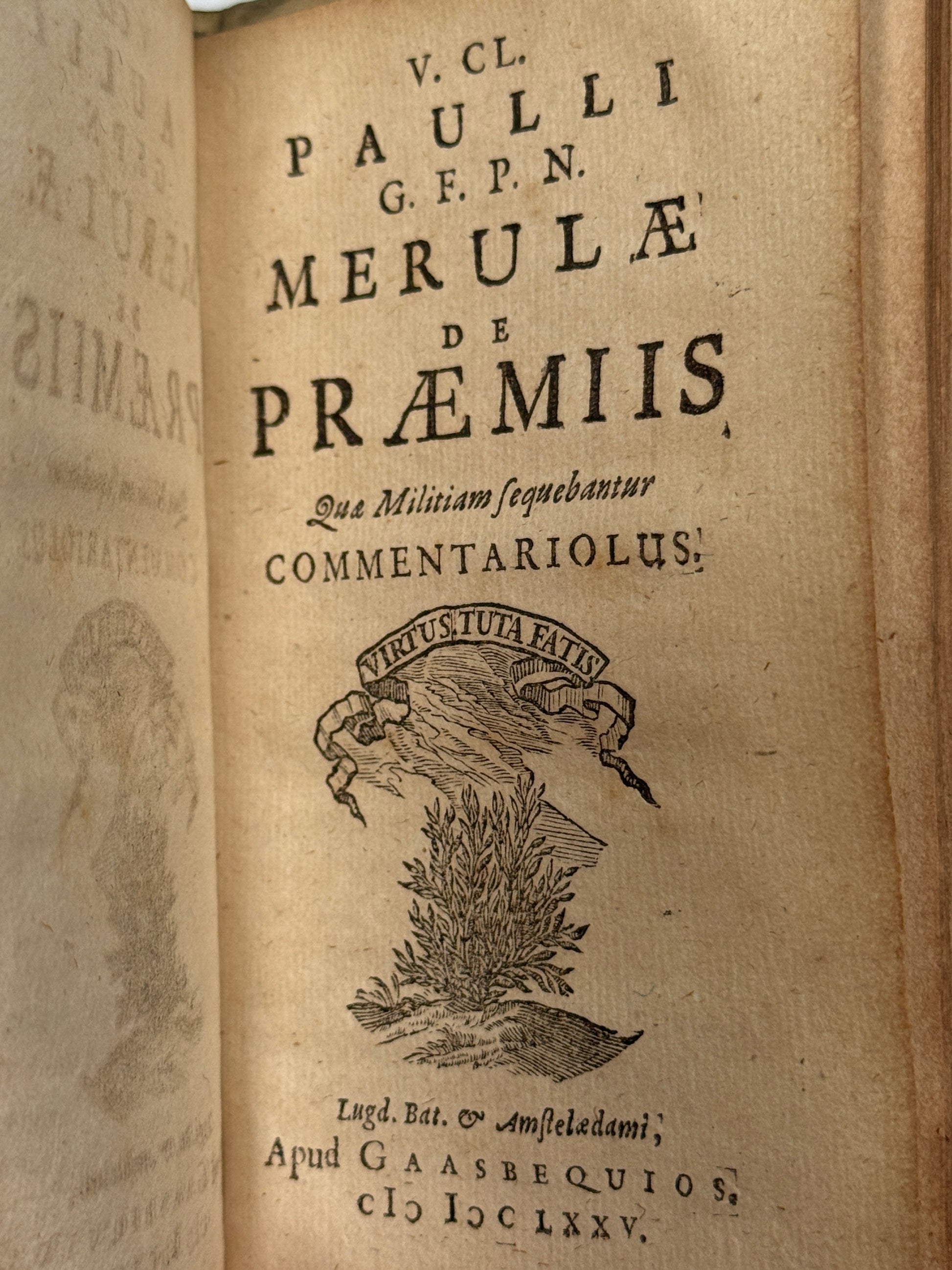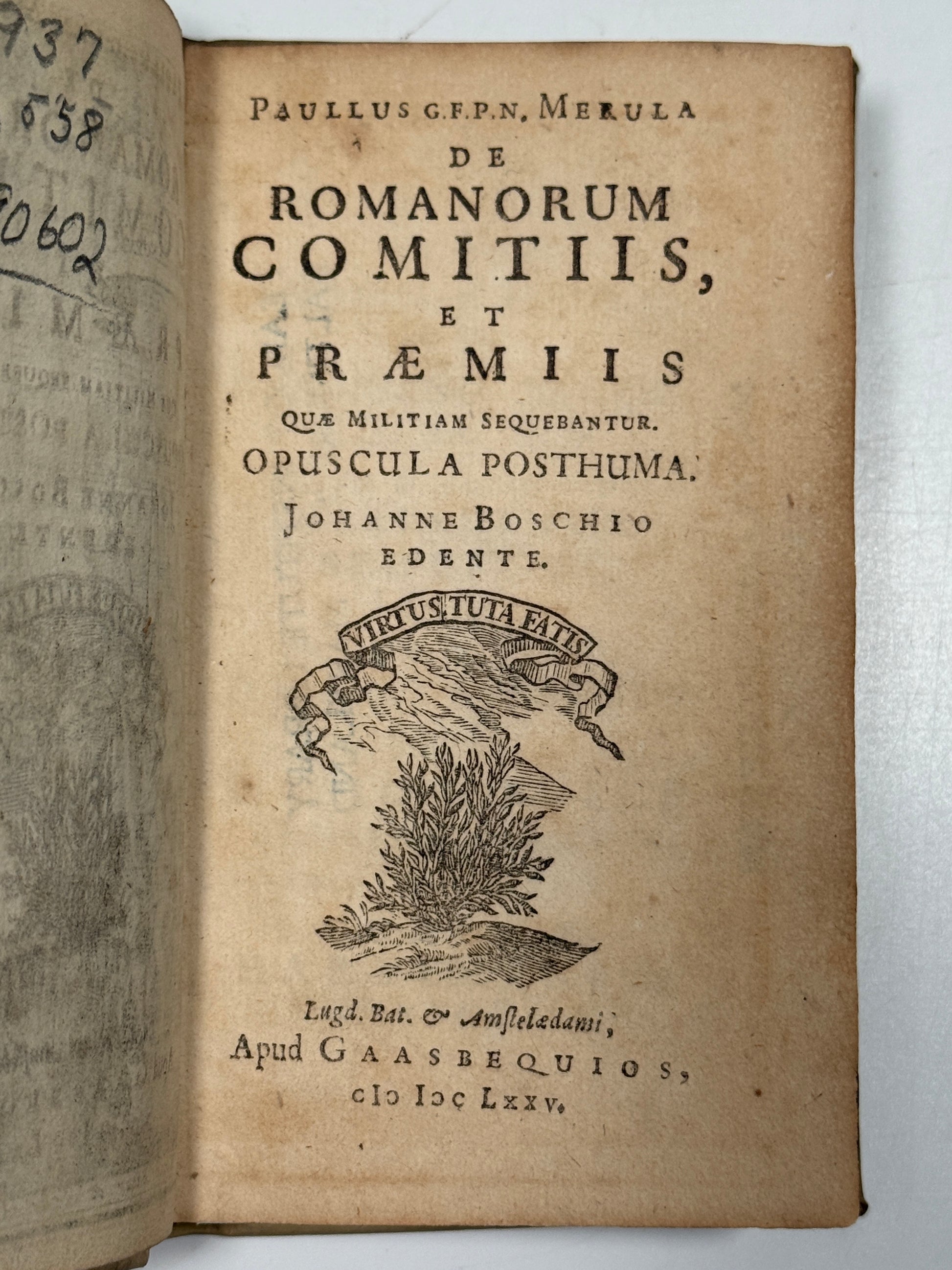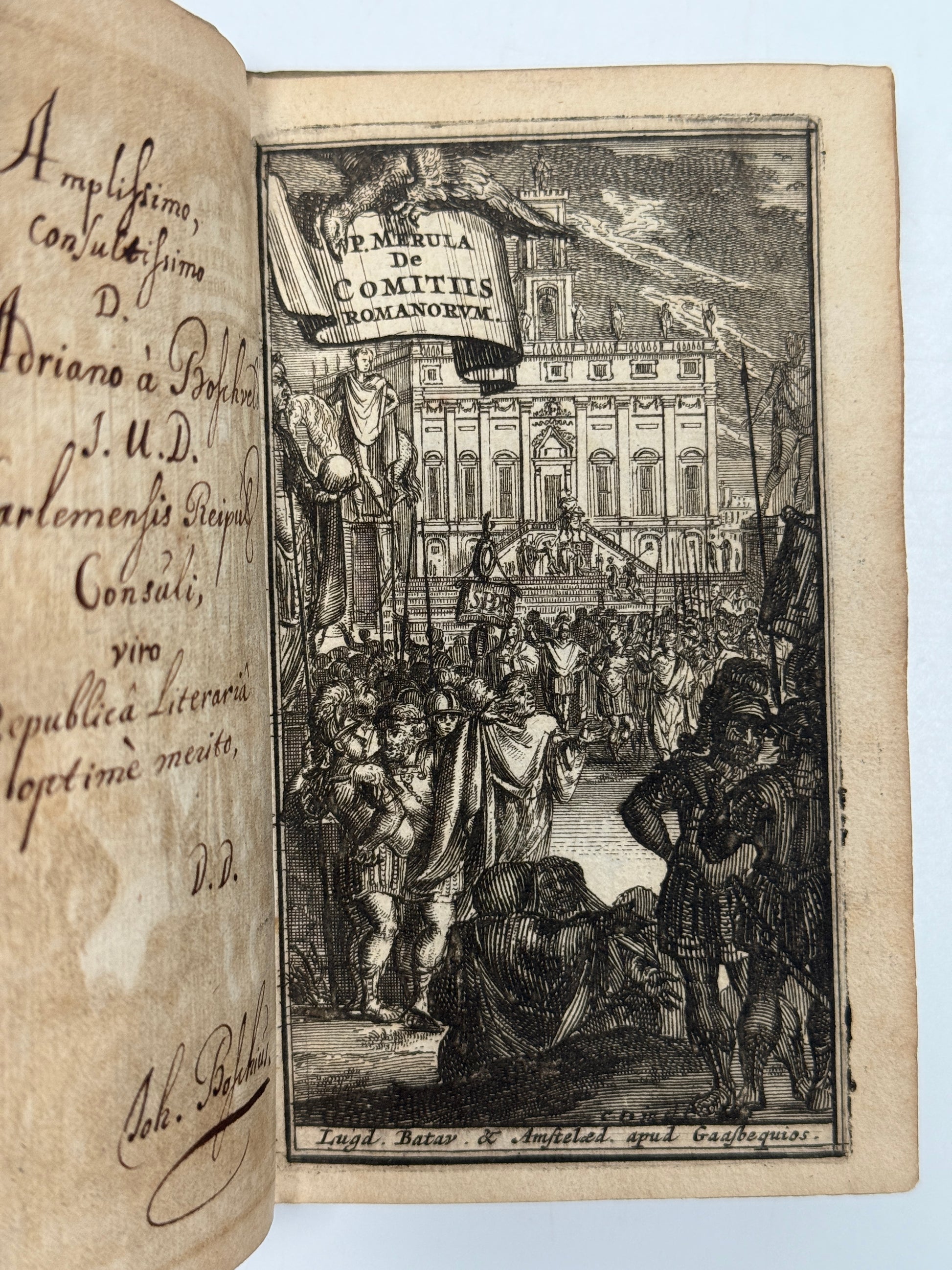 Paullus G. F. P. N. Merula, On the Assemblies of the Romans and the Rewards Which Followed Military Service. Posthumous Works. Edited by Johannes Bosch. Amsterdam: At the House of the Gaasbeeks, 1675. [Together with] A Short Commentary on the Rewards Associated with Military Service, by the most distinguished Paul Merula, descendant of G.F.P.N. Amsterdam: At the House of the Gaasbeeks, 1675.