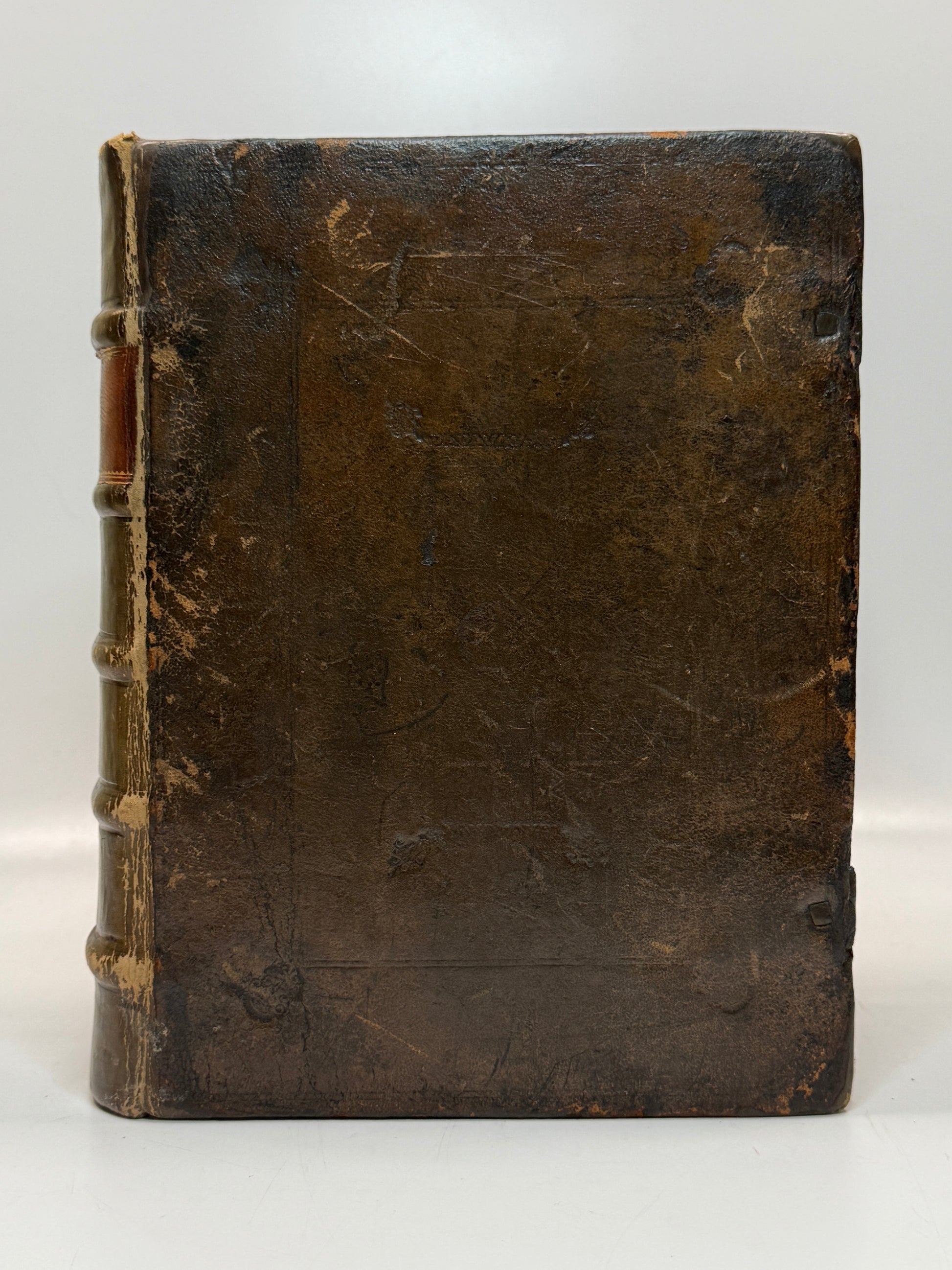 Near contemporary full calf, finely rebacked circa the 19th century. Attractive tooled morocco label affixed to spine. Both boards securely attached. Binding secure, stands without shelf lean. Lacks clasps as usual but with the metalwork extant to both sides. Boards decorated in blind, edges and corners minimally restored contemporaneously with the rebacking. Early pastedowns and endpapers preserved, several ink ownership inscriptions throughout ranging in date between contemporary 16th century and circa the 18th century. No attached bookplates/stickers etc.
