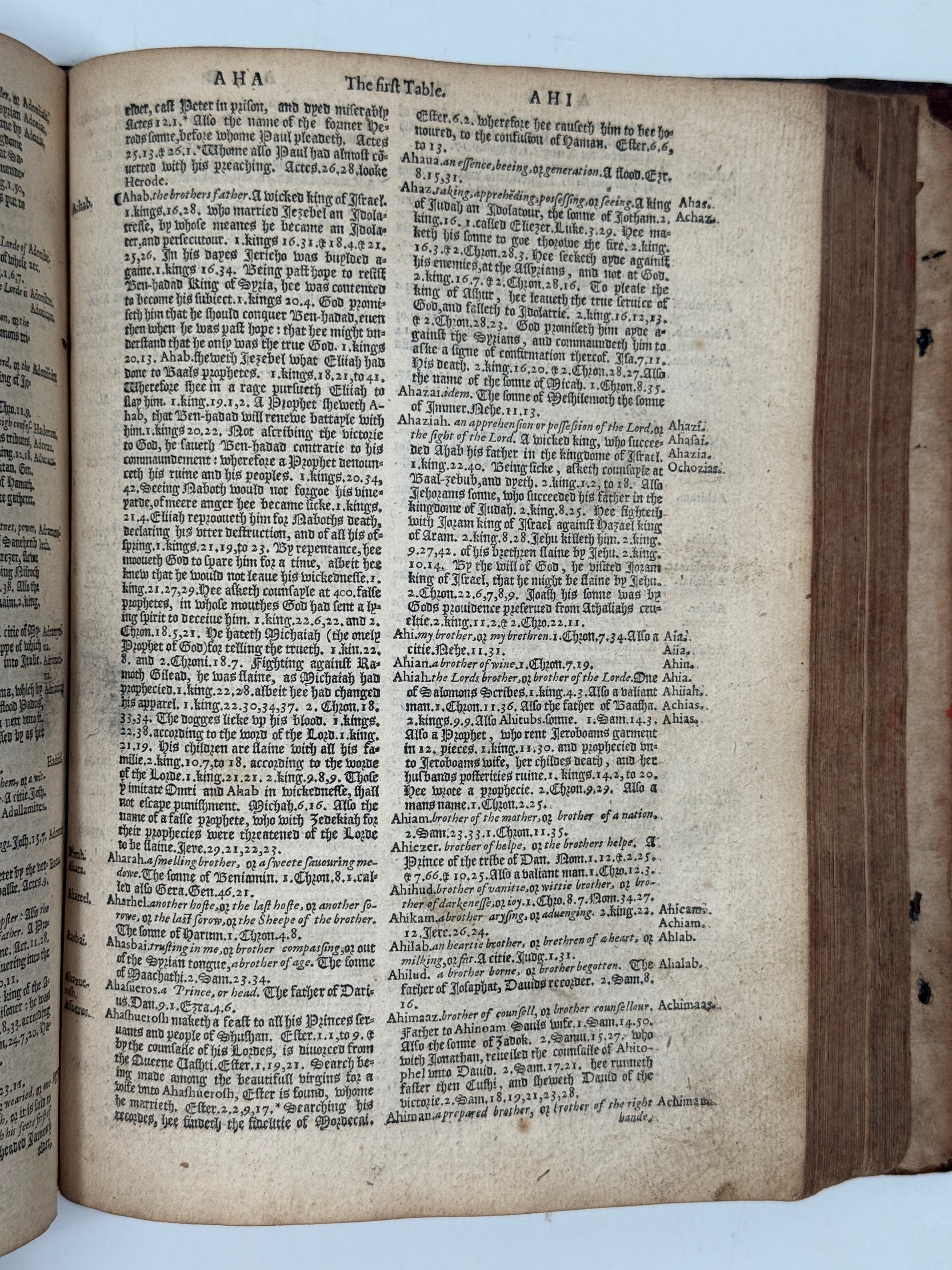 A rare original 1585 "Breeches" Geneva Bible, so named for the reading in Genesis 3:7 describing Adam and Eve as having made "breeches" to cover their nakedness instead of "aprons" or "loincloths".