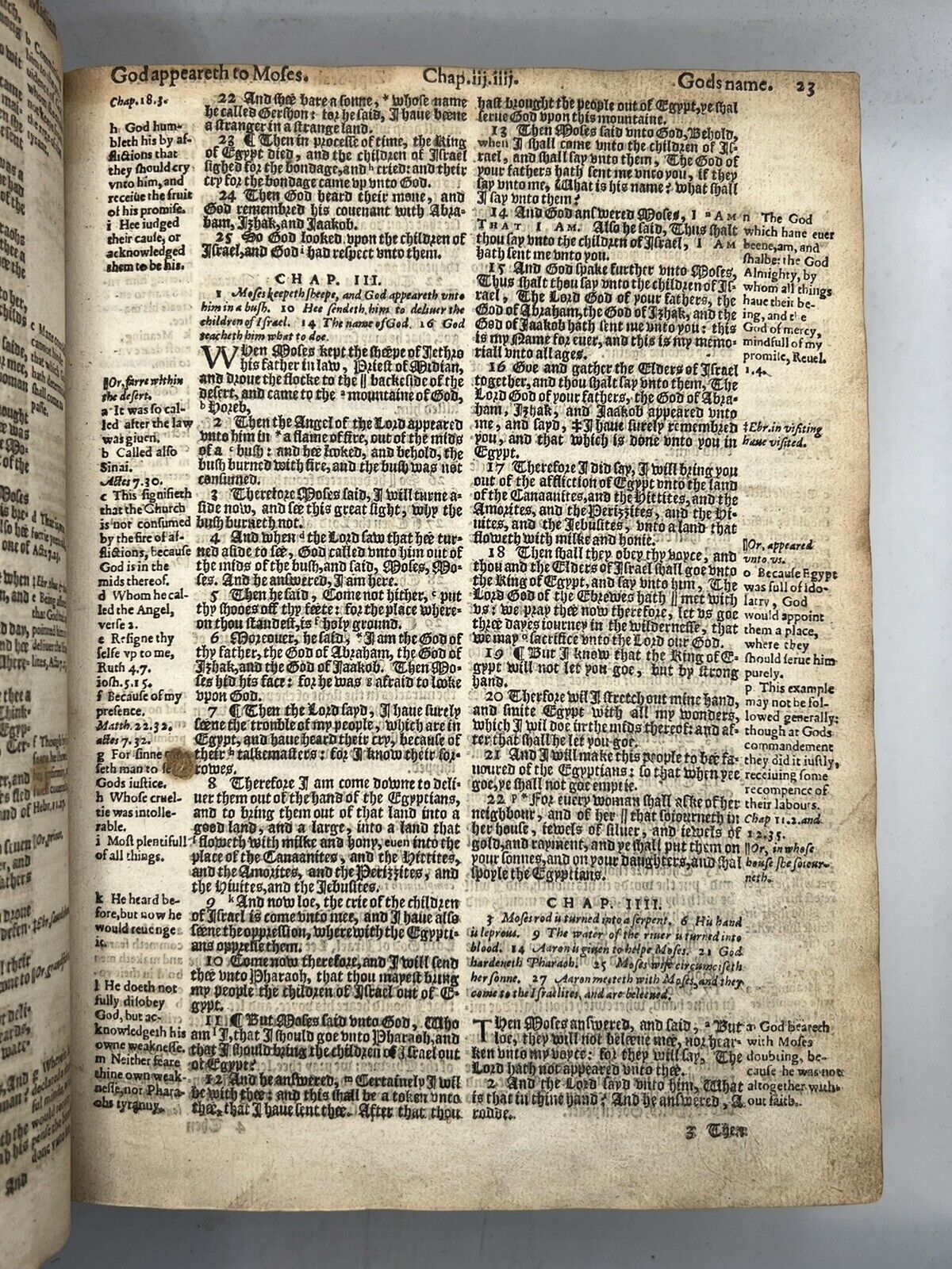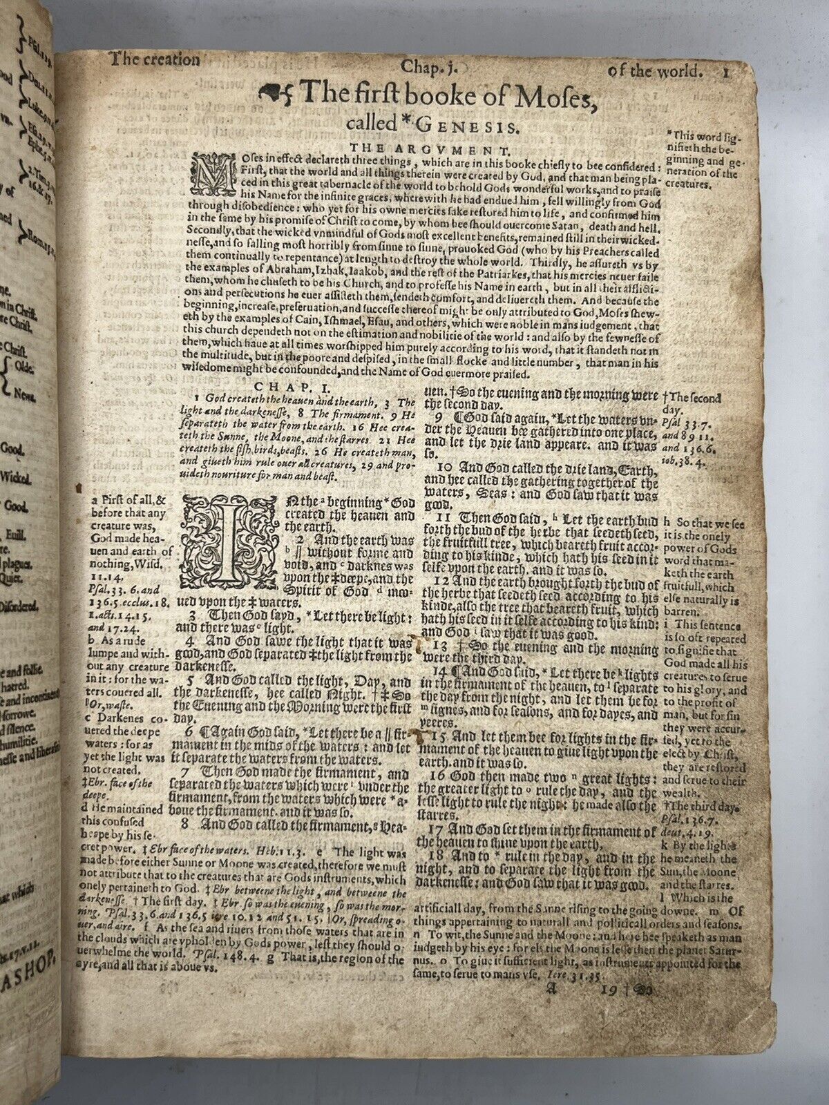A STUNNING GENEVA BIBLE IN PARTICULARLY EXCELLENT CONDITION, RETAINING BOTH ORIGINAL TITLE PAGES. VERY WELL PRESENTED. ONE OF THE GREATEST OBTAINABLE COPIES OF AN EARLY 17TH CENTURY ENGLISH BIBLE!