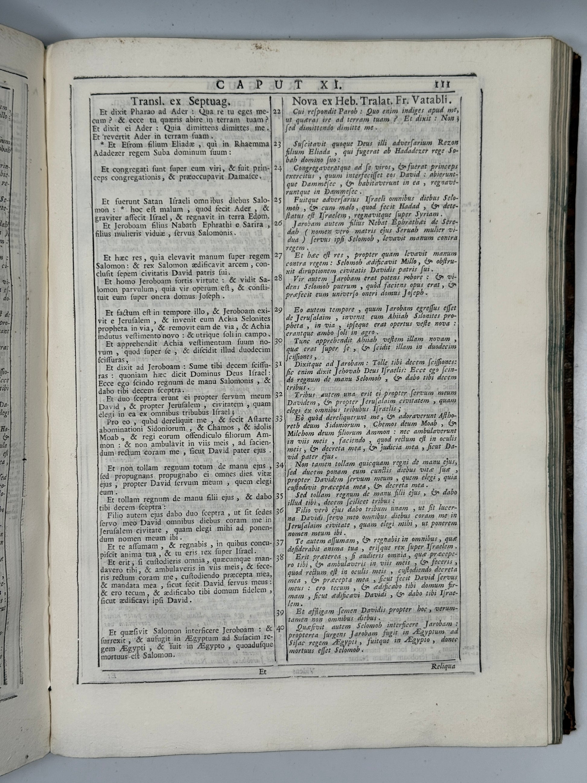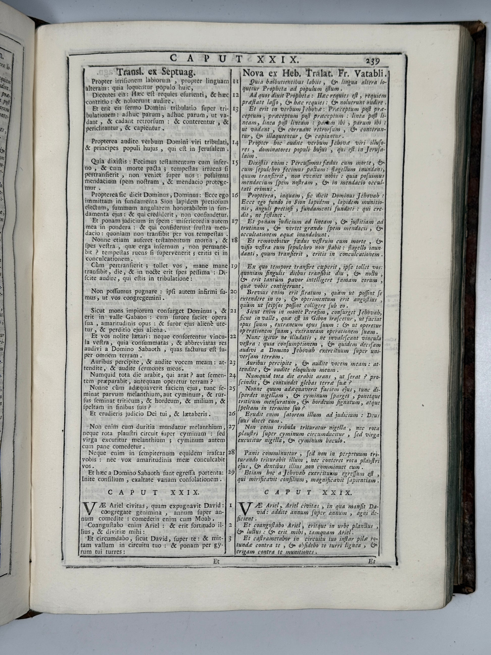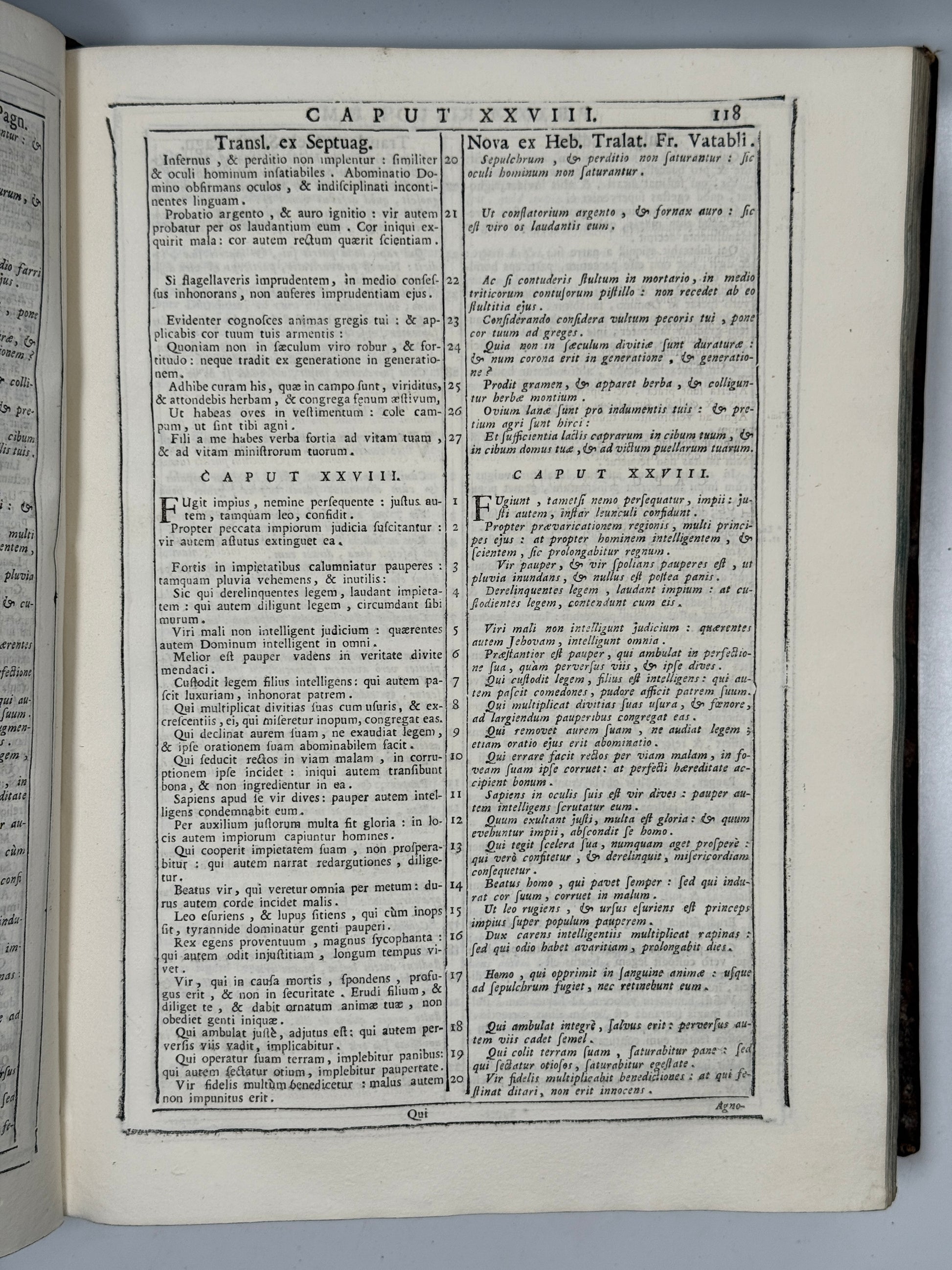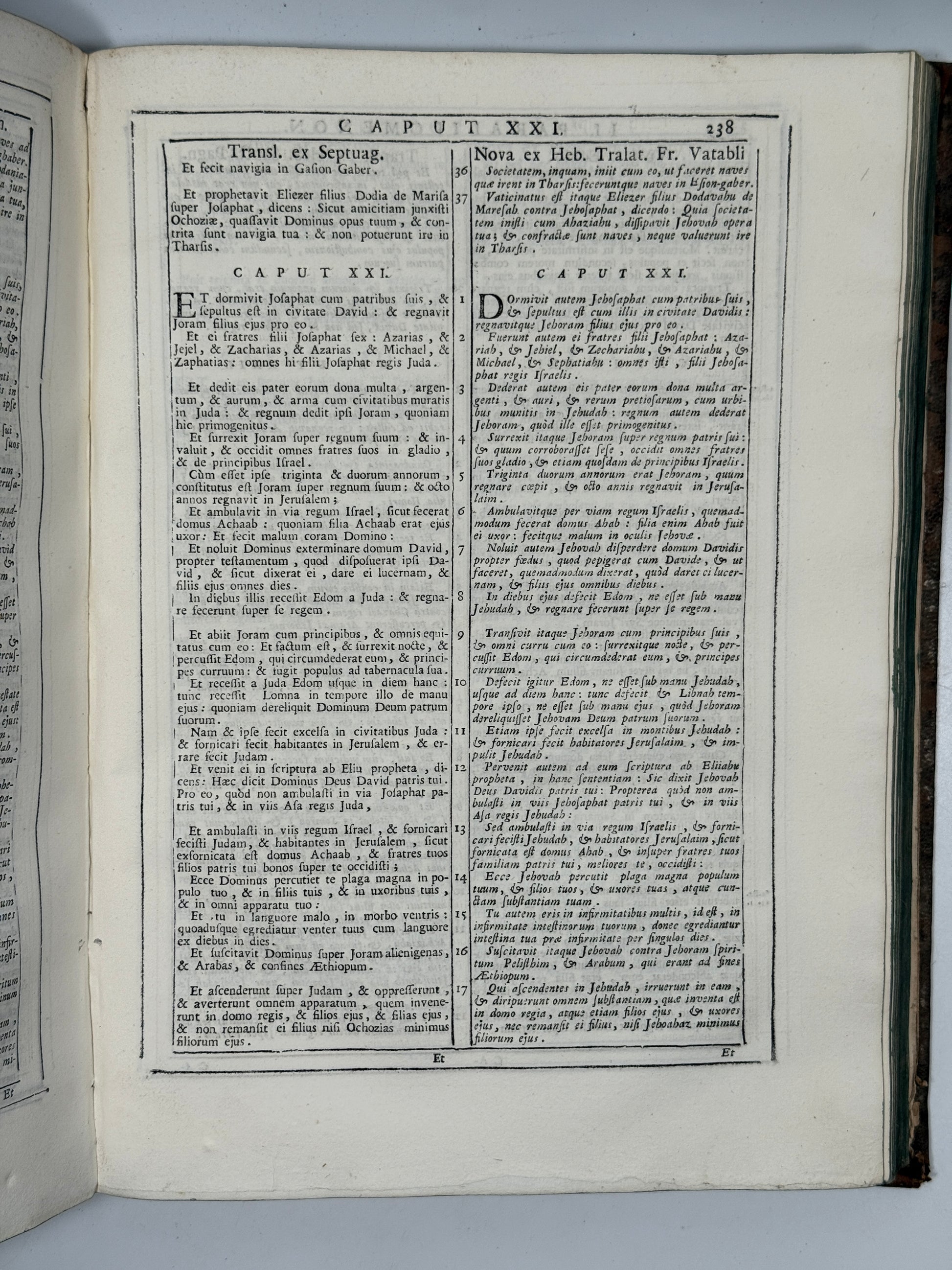 The Holy Bible, Comprising Various Translations Besides the Vulgate: Those of Sanctes Pagninus from the Hebrew, of the Seventy Interpreters, and Another from the Hebrew by François Vatable; Moreover, Where Any Of the Aforesaid Versions Were Lacking, Chaldean and Arabic Translations Have Now Been Added, and in Other Places Syriac and Arabic Translations, Which are Absent from the Antwerp Edition. Venice, 1747. Printed by Nicolò Pezzana.