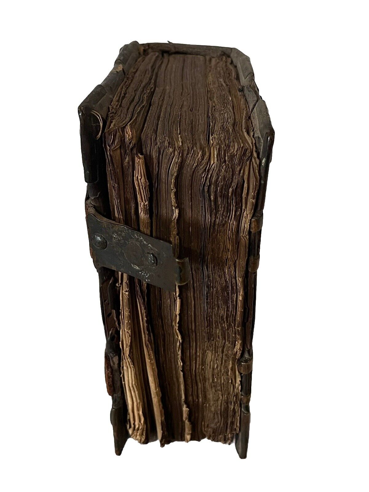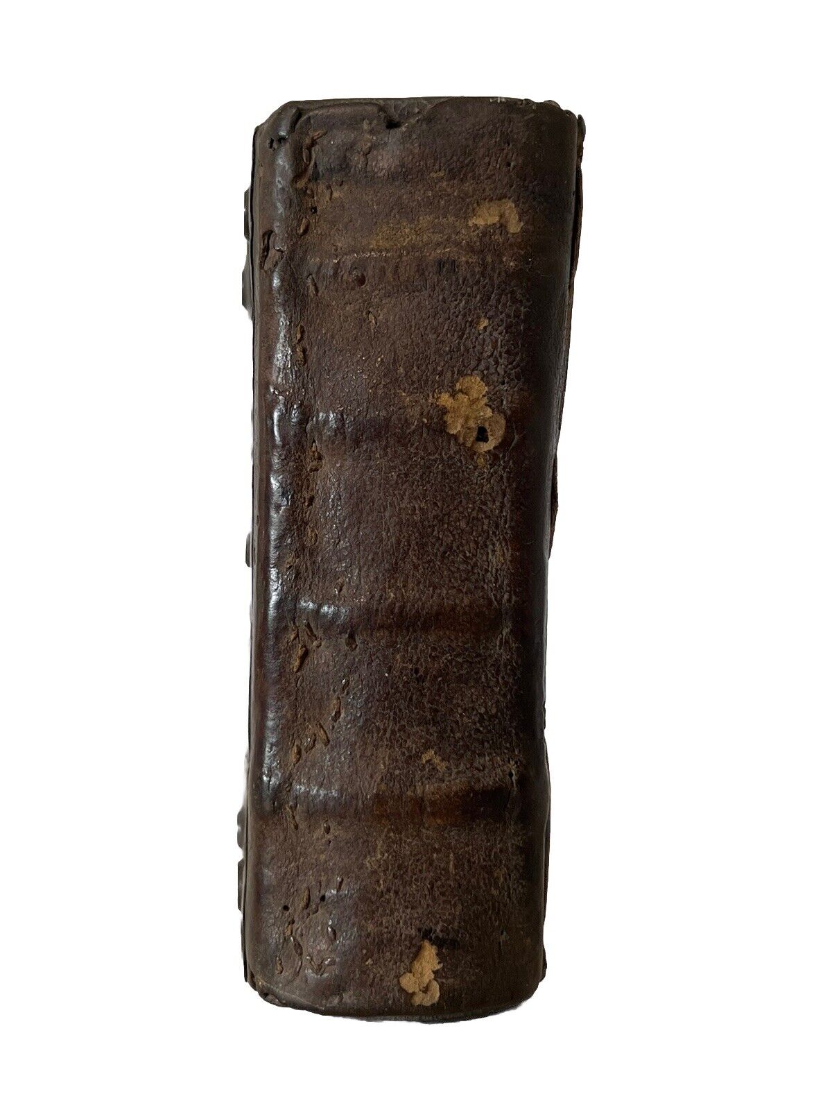 This beautiful edition is in its original binding with beautiful early metalwork applied to the boards, also retaining one of the original clasps which retains its functionality. The binding is especially remarkable & important for having carved apotropaic marks, also known as 'witch marks' to the top of both boards in the form of hexafoils, used for the ritual protection against witchcraft and evil spirits. Such marks are very scarcely encountered, especially from during the early modern period at the height of the persecution of witches. It is all the more interesting given that this book was printed and bound right around the time of the writing of Shakespeare's Macbeth and James' increasing social focus on witchcraft.