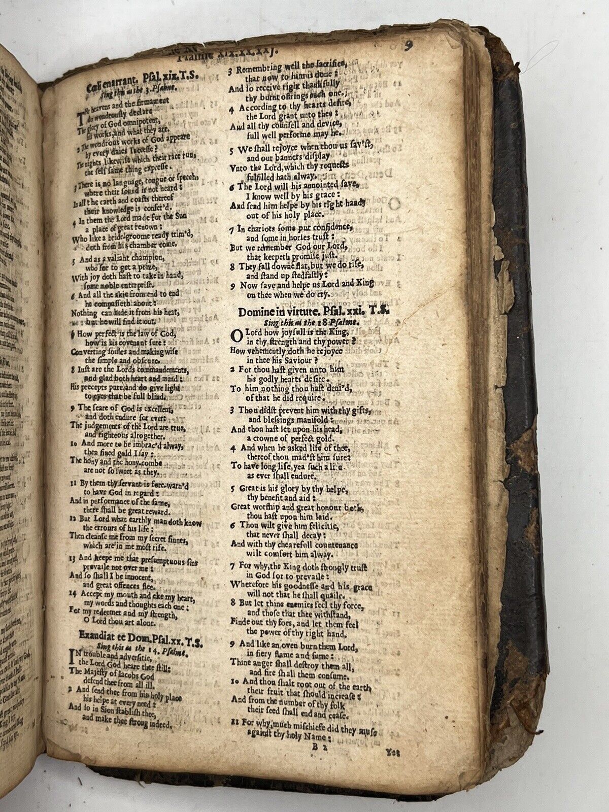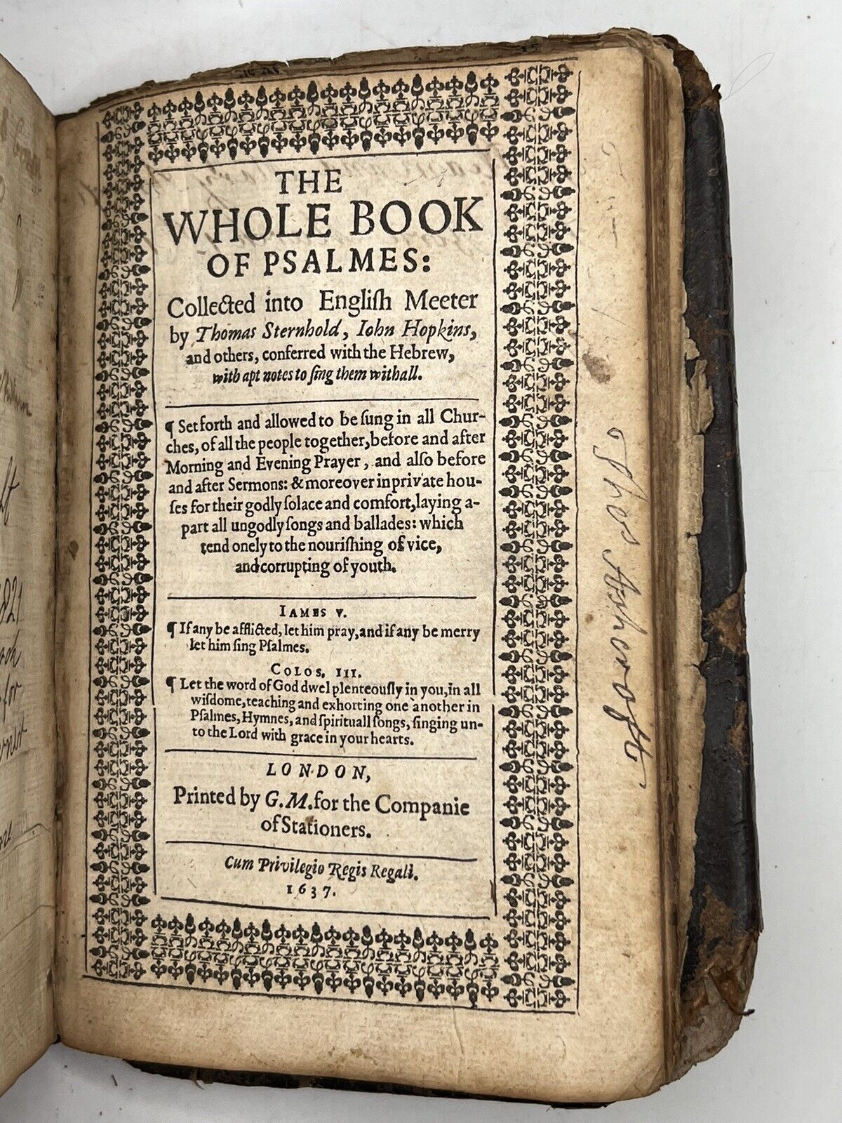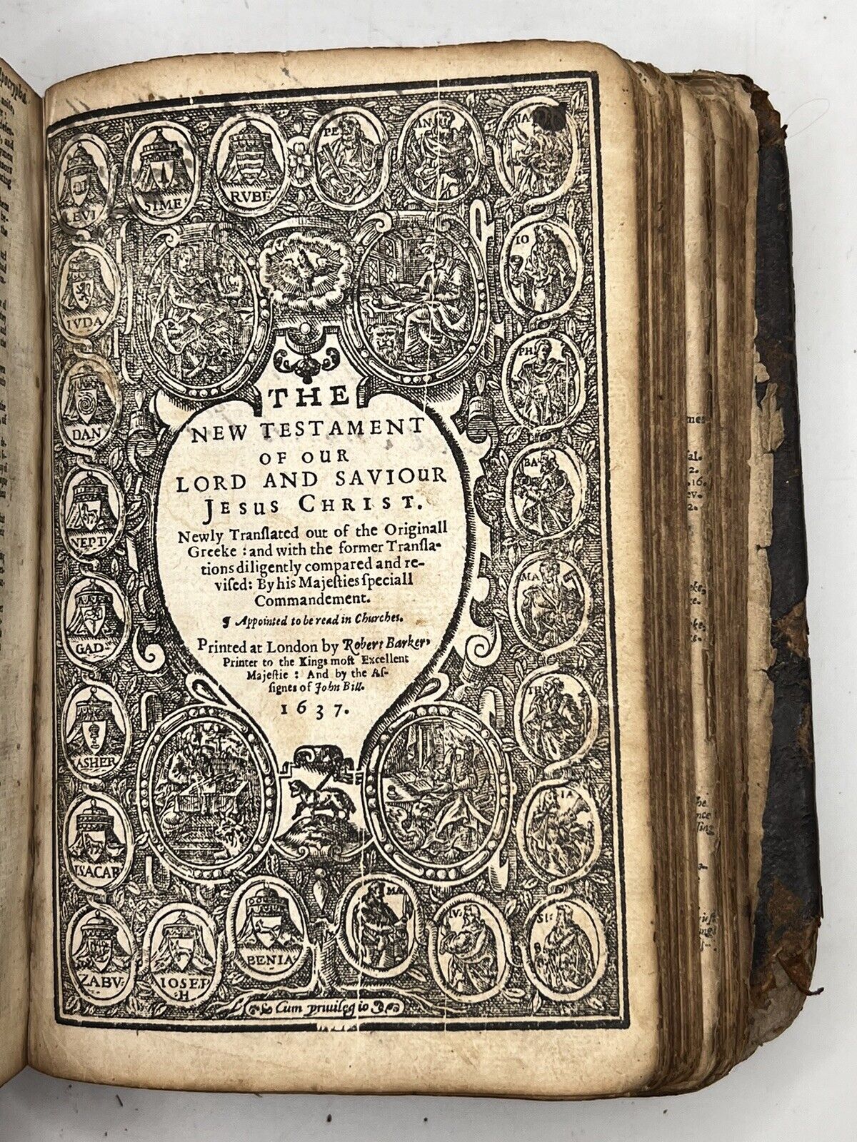 The Holy Bible, comprising The Old and New Testaments of Our Lord and Saviour Jesus Christ. Newly Translated out of the Originall Greeke: and with the former Translations diligently compared and revised: By his Majesties speciall Commandement. Appointed to be read in Churches. London: Robert Barker, 1637. [together with] The Book of Common Prayer [with] The Genealogies Recorded in Sacred Scriptures, 1636. [Together with] The Whole Book of Psalmes. London: G.M, 1637.