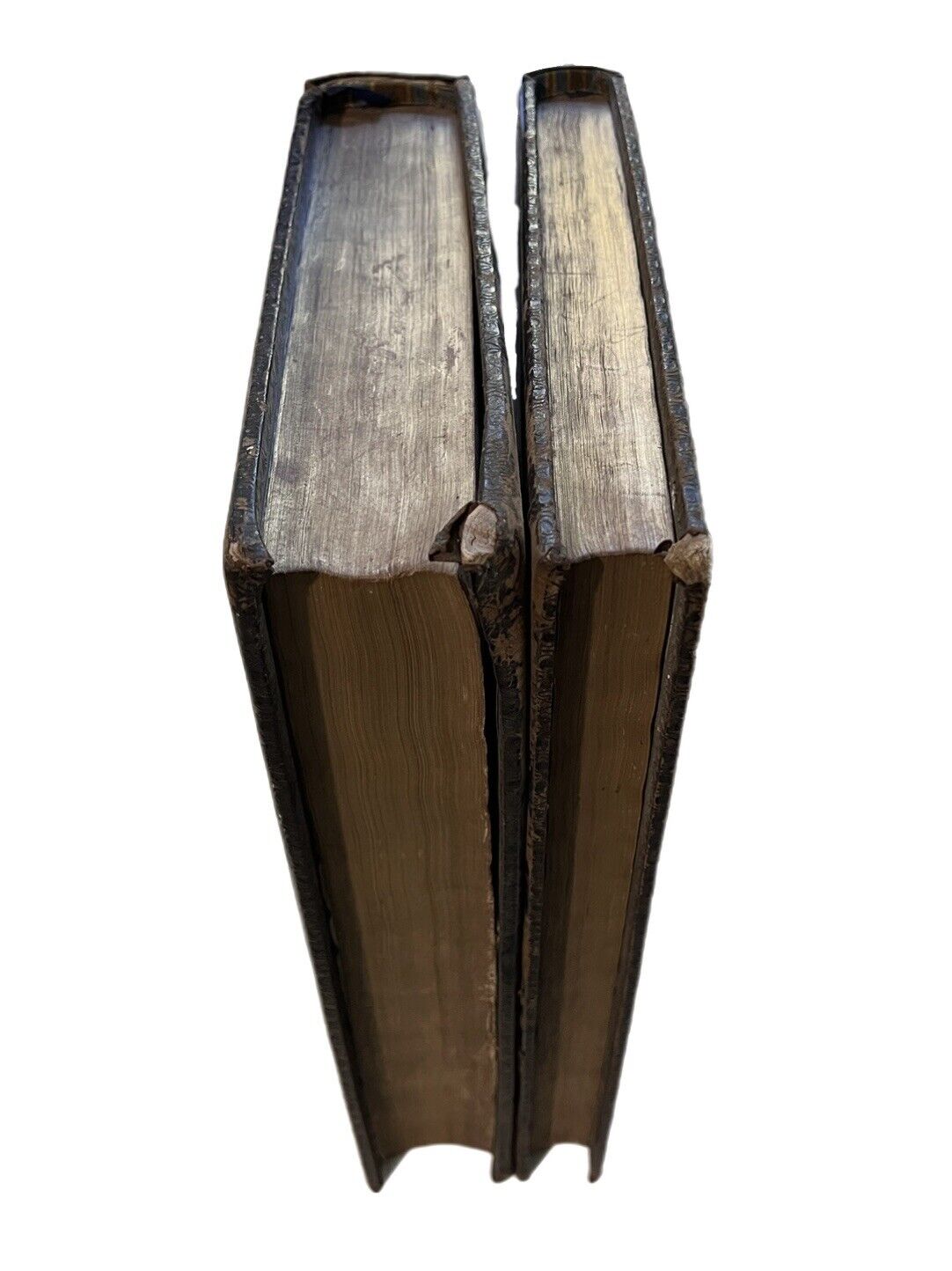 Collated as complete through all sections. The apocrypha is present and complete, though is bound after the New Testament in the second volume. The text block is beautifully clean throughout, truly a testament to the original paper stock used for the printing of this edition of how bright and clean the text remains, quite easily the most beautiful 17th century text block one will find for a Bible, especially of an edition which was almost always so extensively read and used at the Pulpit. The reason for the cleanliness of the text blocks here may well be because this was a trial copy for the printing; it was certainly one of the very earliest in the print run for this edition for the lack of the dedication to Charles II, rather being printed with the typical James I dedication. The final few leaves in first volume are a little ragged at edges but without any text loss etc. Naturally there are a few spots to a few leaves throughout, but generally this is the greatest condition of a 17th century text block we have ever encountered - it would definitely be the dream copy of the Victorian collector!