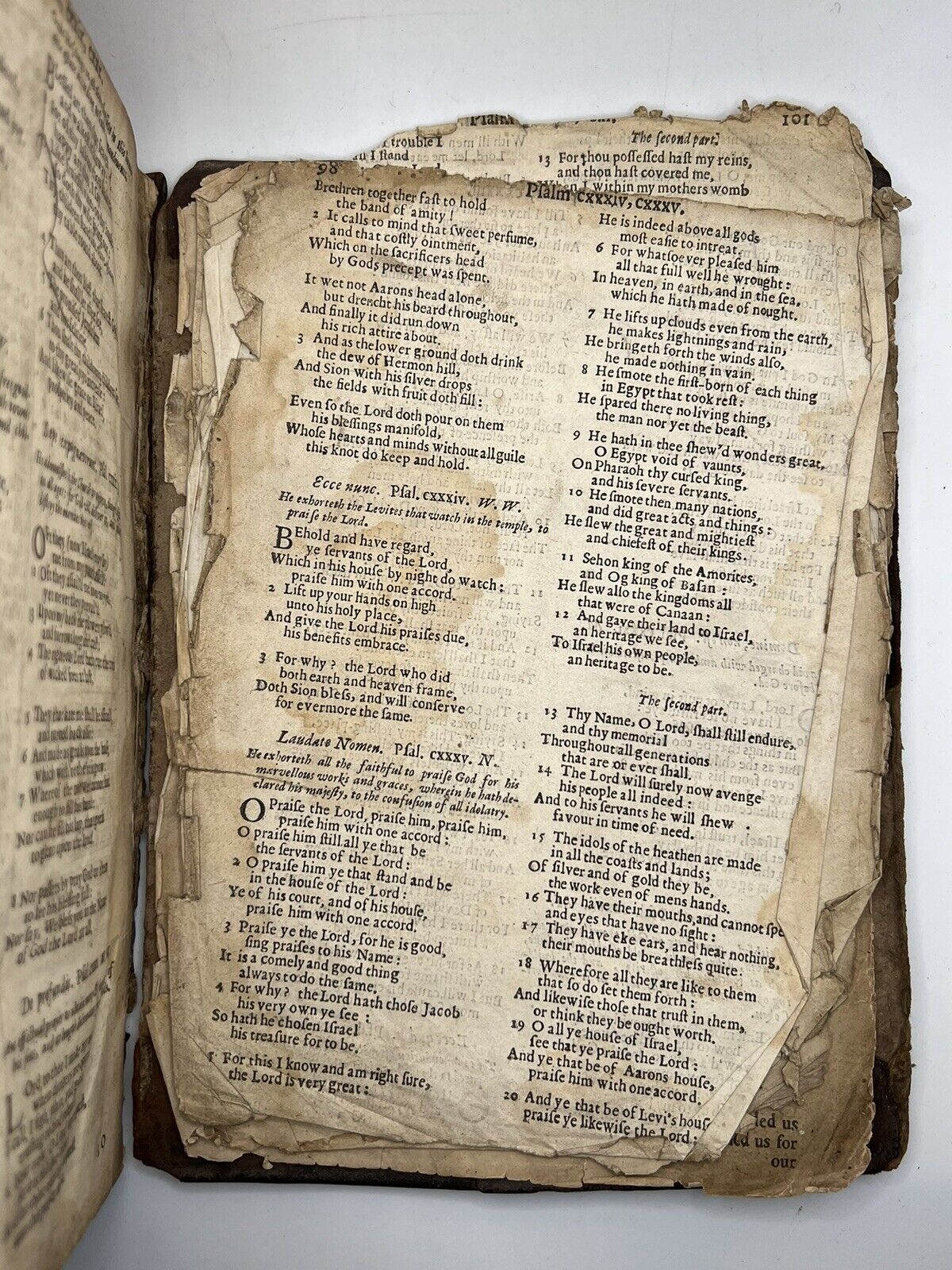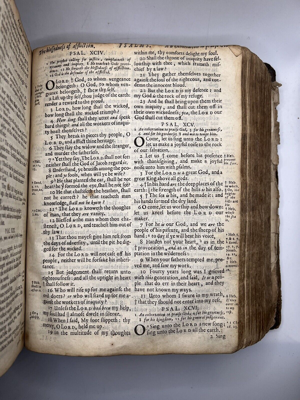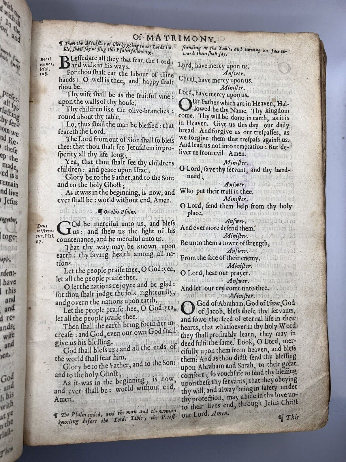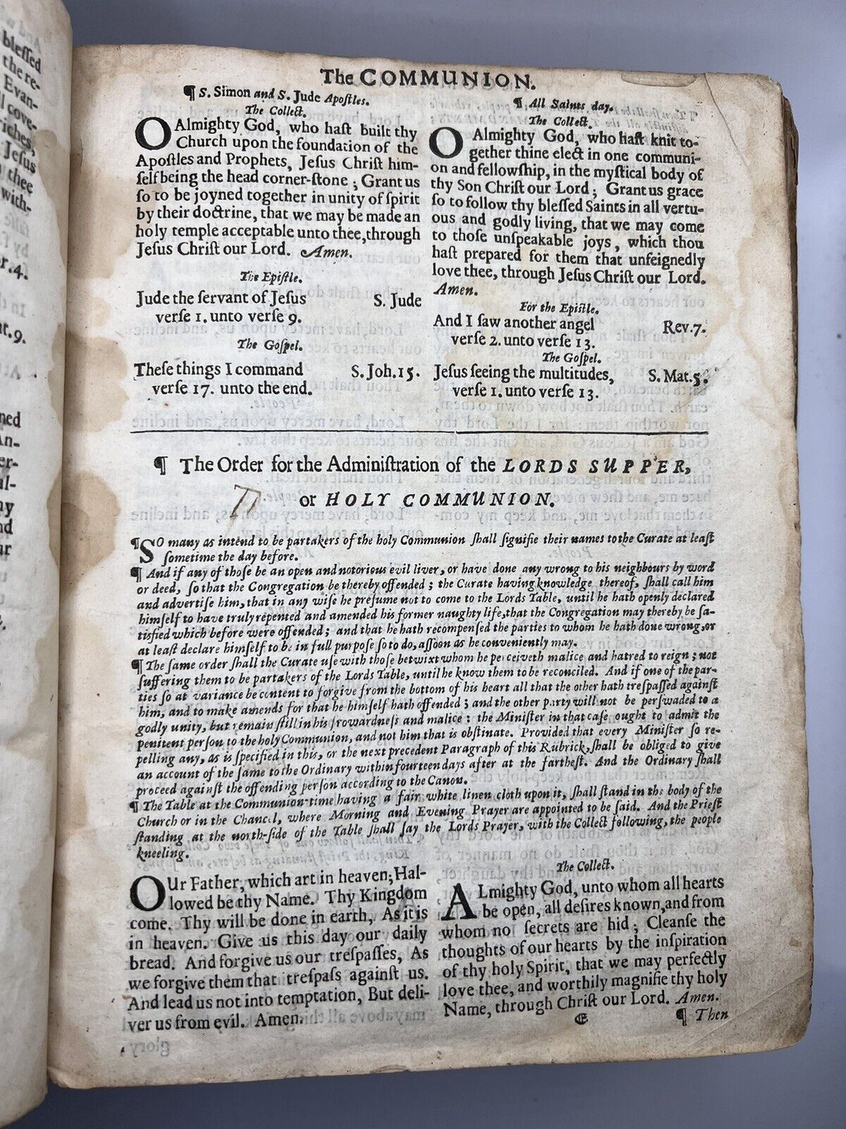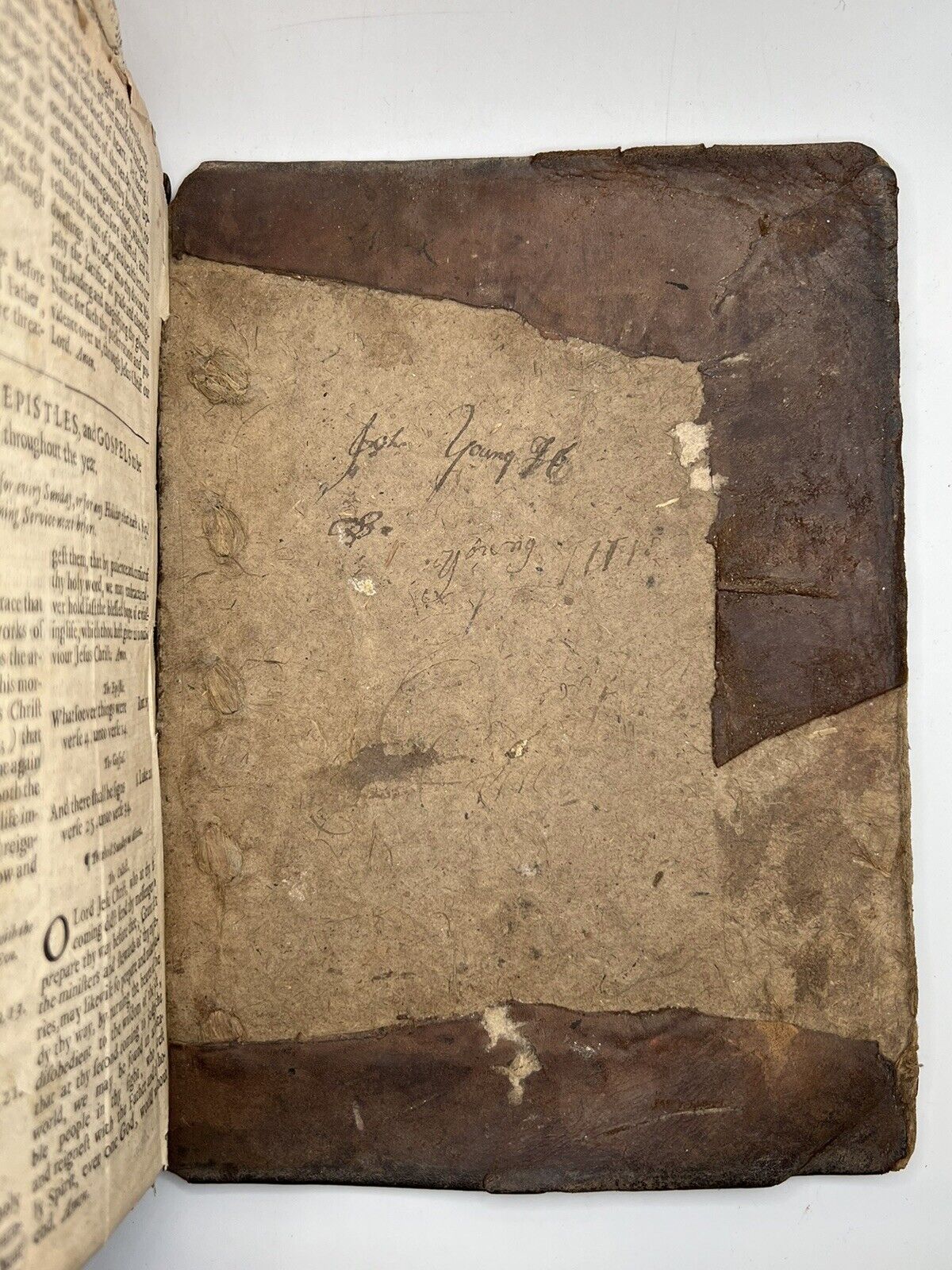 Contemporary (original) full calf binding, rubbed with minor losses to the leather. Front board detached, rear attached but with lower joints split, fragile. No attached bookplates, but with a large number of inscriptions of varying date throughout, some of which appear to be contemporary to printing, the latest being 1814. Generally clean throughout the text, but with occasional dampstaining, some minor losses at leaf edges, and occasional closed tears. New Testament title page torn but present, first few leaves of Matthew also torn with losses. The book is uncollated and so no statement to completeness is made, though the Book of Common Prayer begins at C2, with C1 supplied detached at the rear of the book, and the Psalter lacking all after G1, but with G2-4 also supplied detached which goes up to Psalm 146. The Bible text is uncollated but appears complete, but is possibly lacking a few leaves. Both title pages are present.