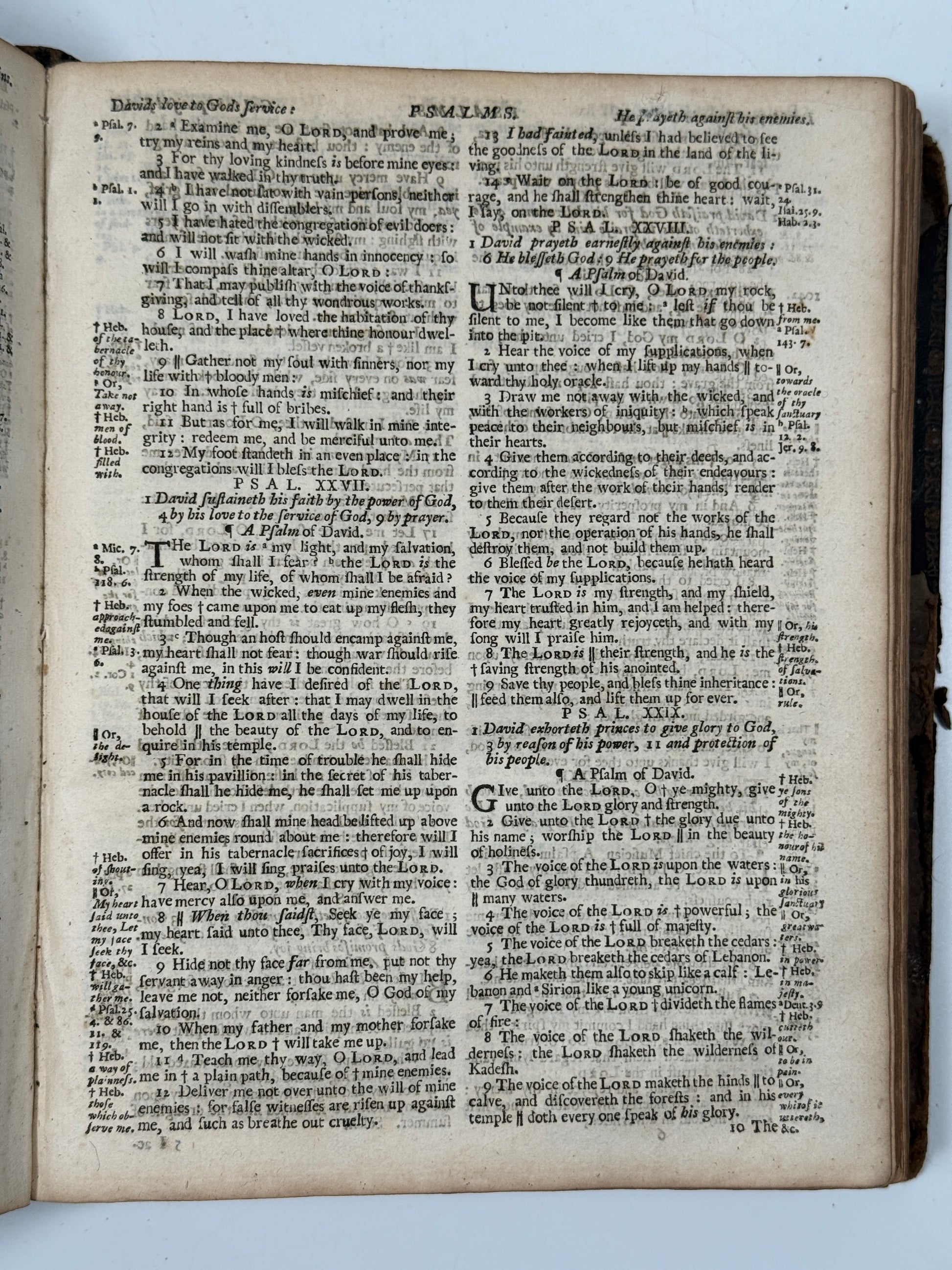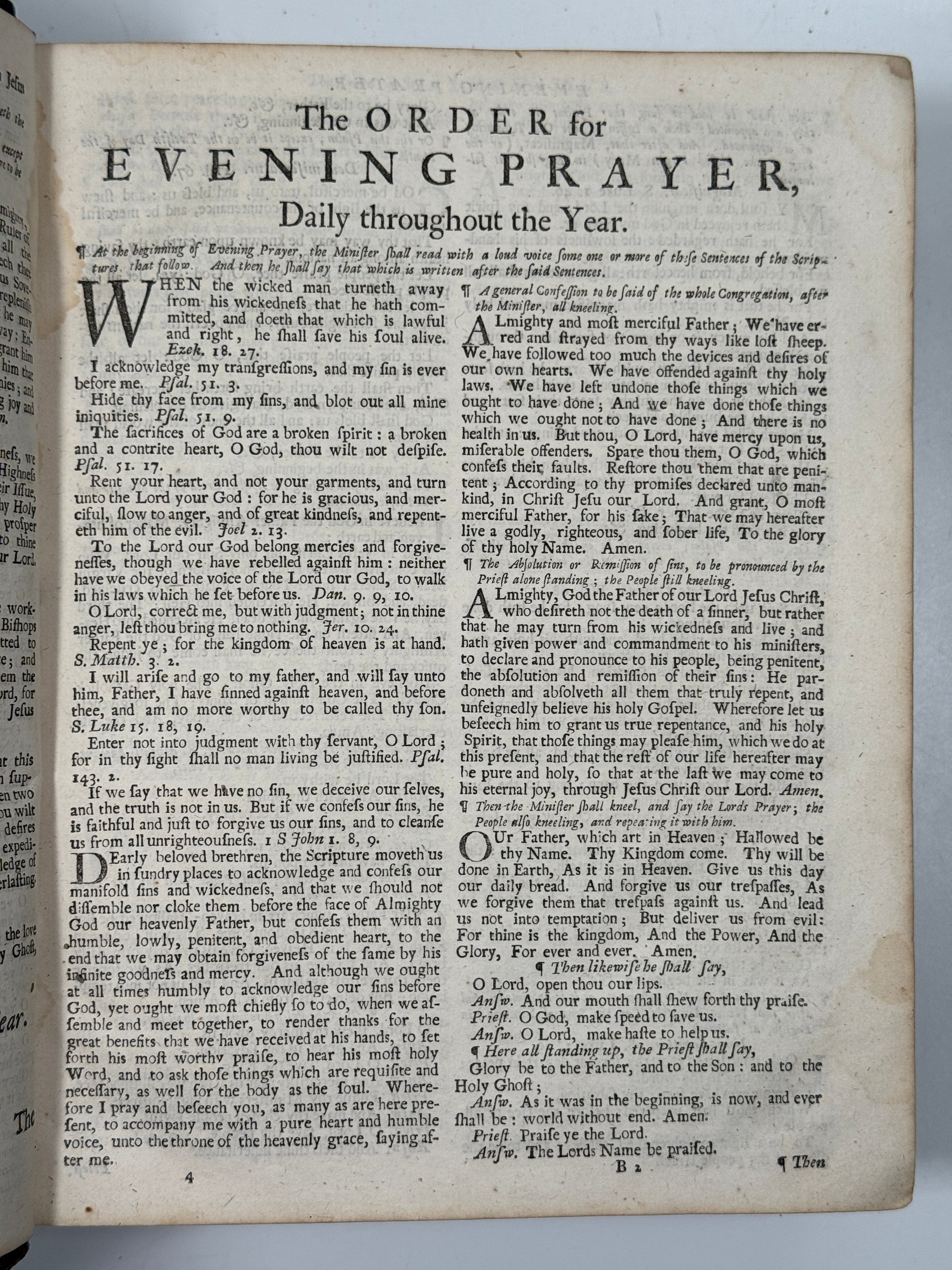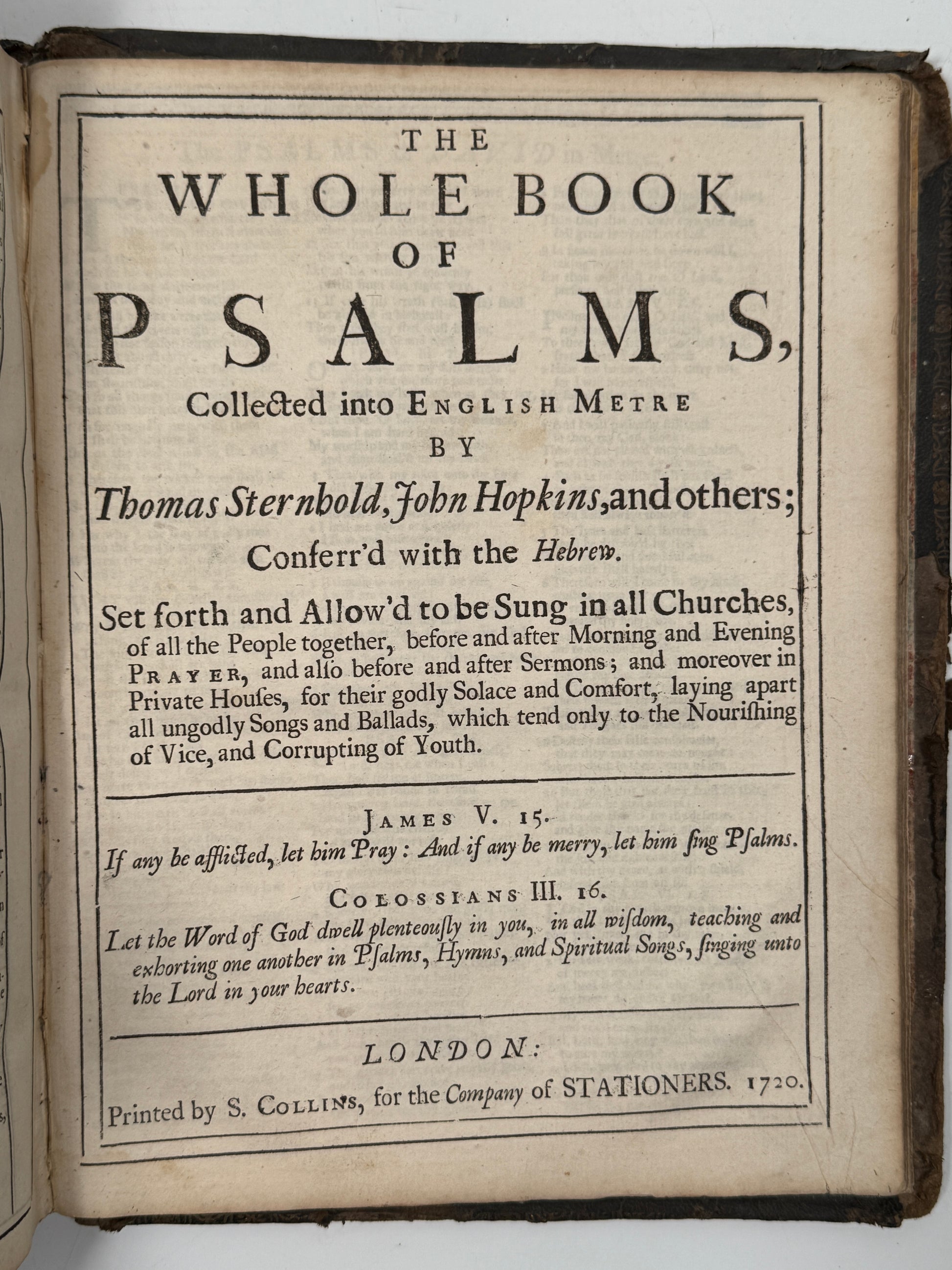 The Book of Common Prayer and Administration of the Sacraments, and other Rites and Ceremonies of the Church, According to the Use of the Church of England. Oxford: John Baskett, 1724. [Together with] The Holy Bible, Containing the Old Testament and The New: Newly Translated out of the Original Tongues… London: John Baskett, 1724. [Together with] The Whole Book of Psalms… London: S. Collins, 1720, 4to, a.e.g.