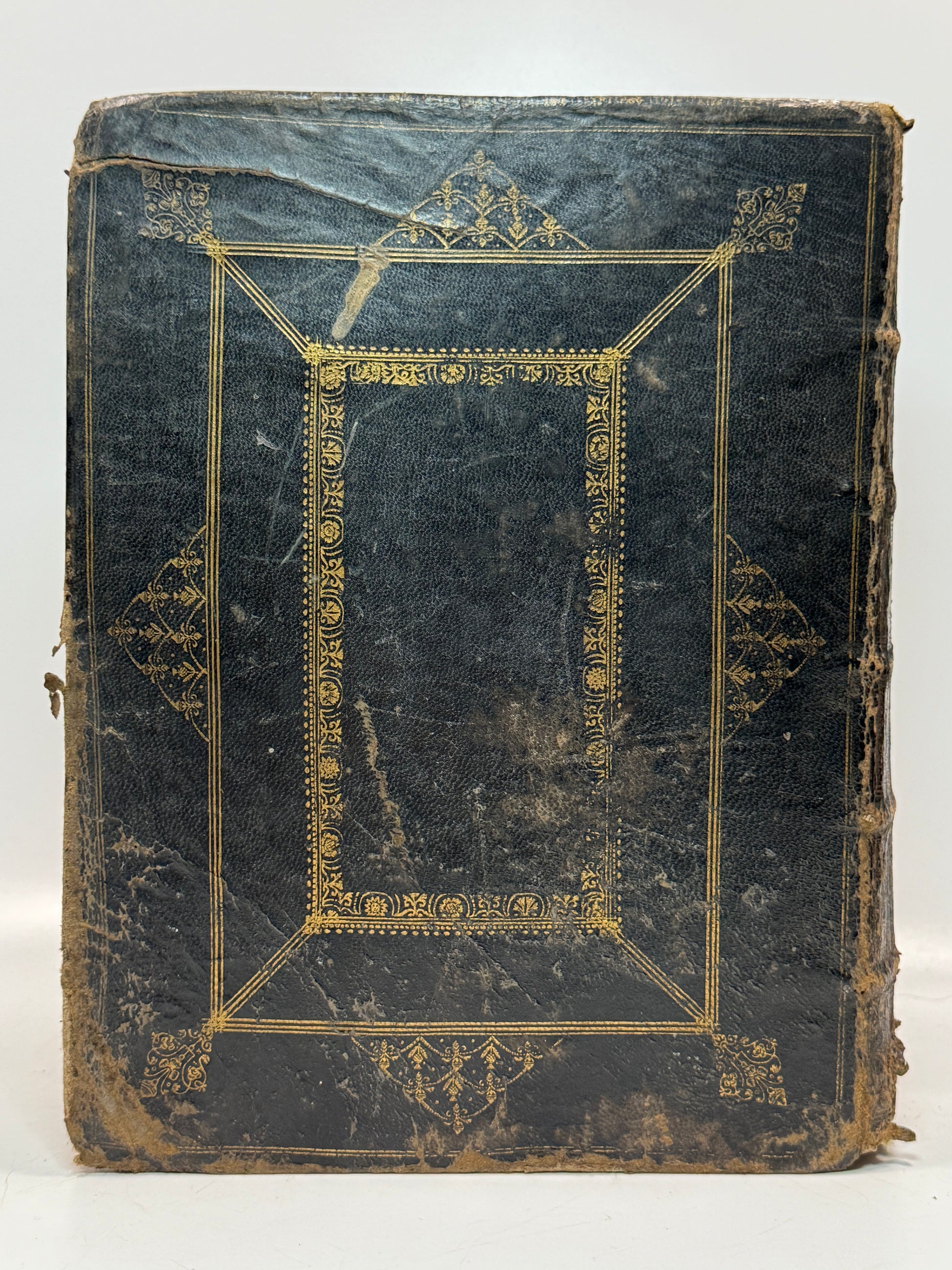 Contemporary full black morocco finely tooled in gilt, English panelled design. Binding rubbed, some loss to the leather in places, notably the foot of the backstrip, shelf and edge wear, but externally a very attractive binding. Both boards are securely attached with joints secure. All edges gilt.
