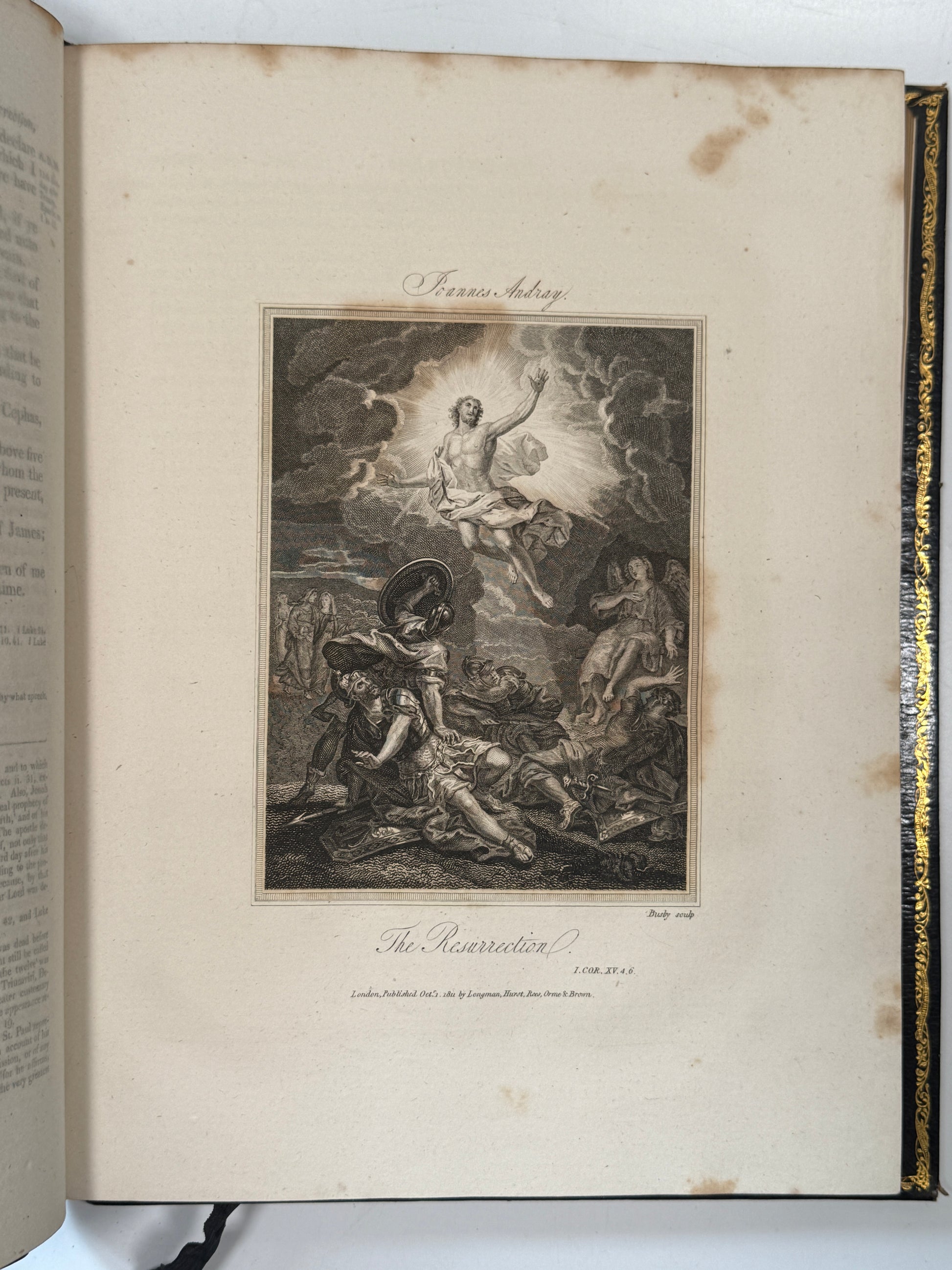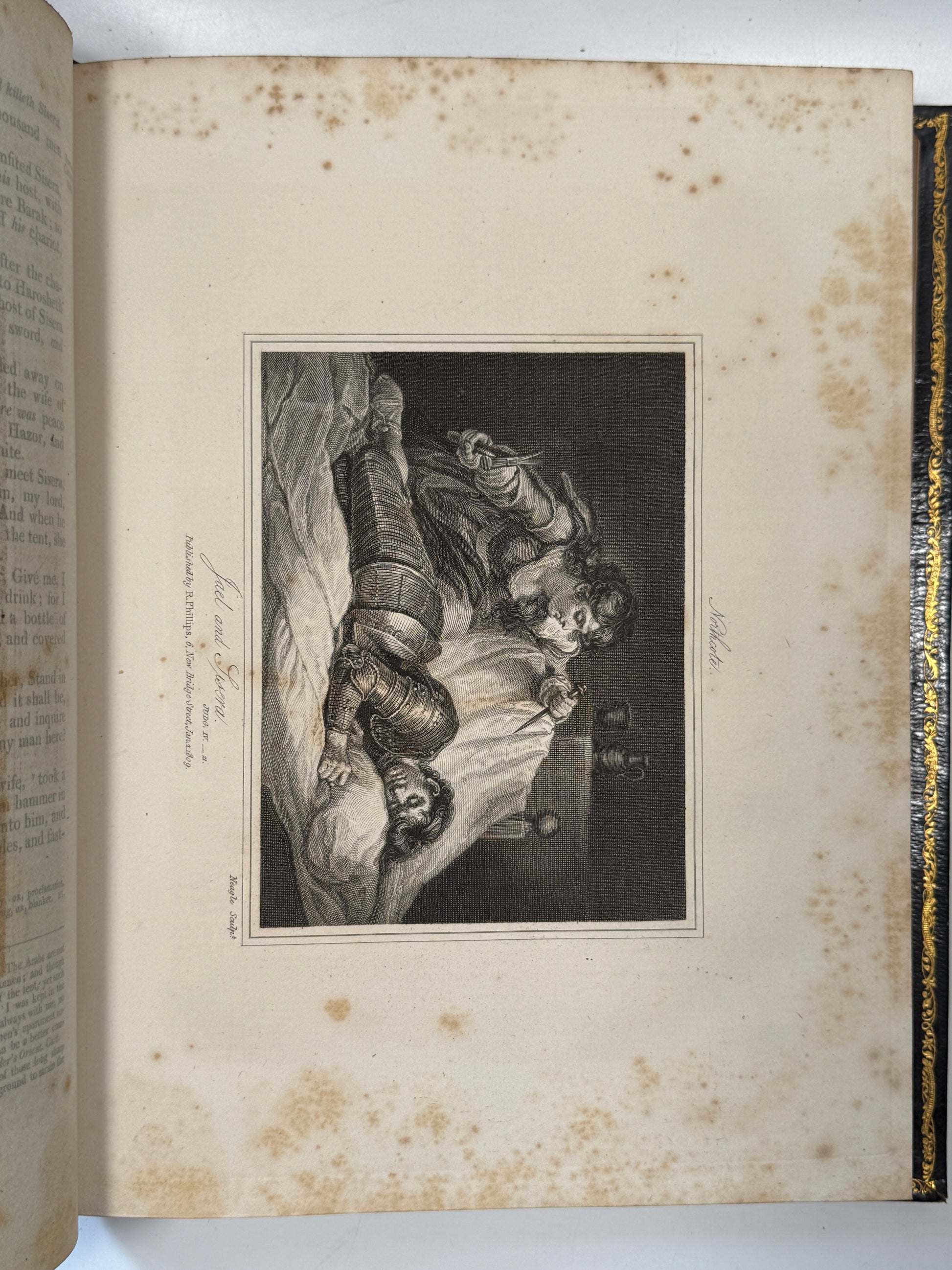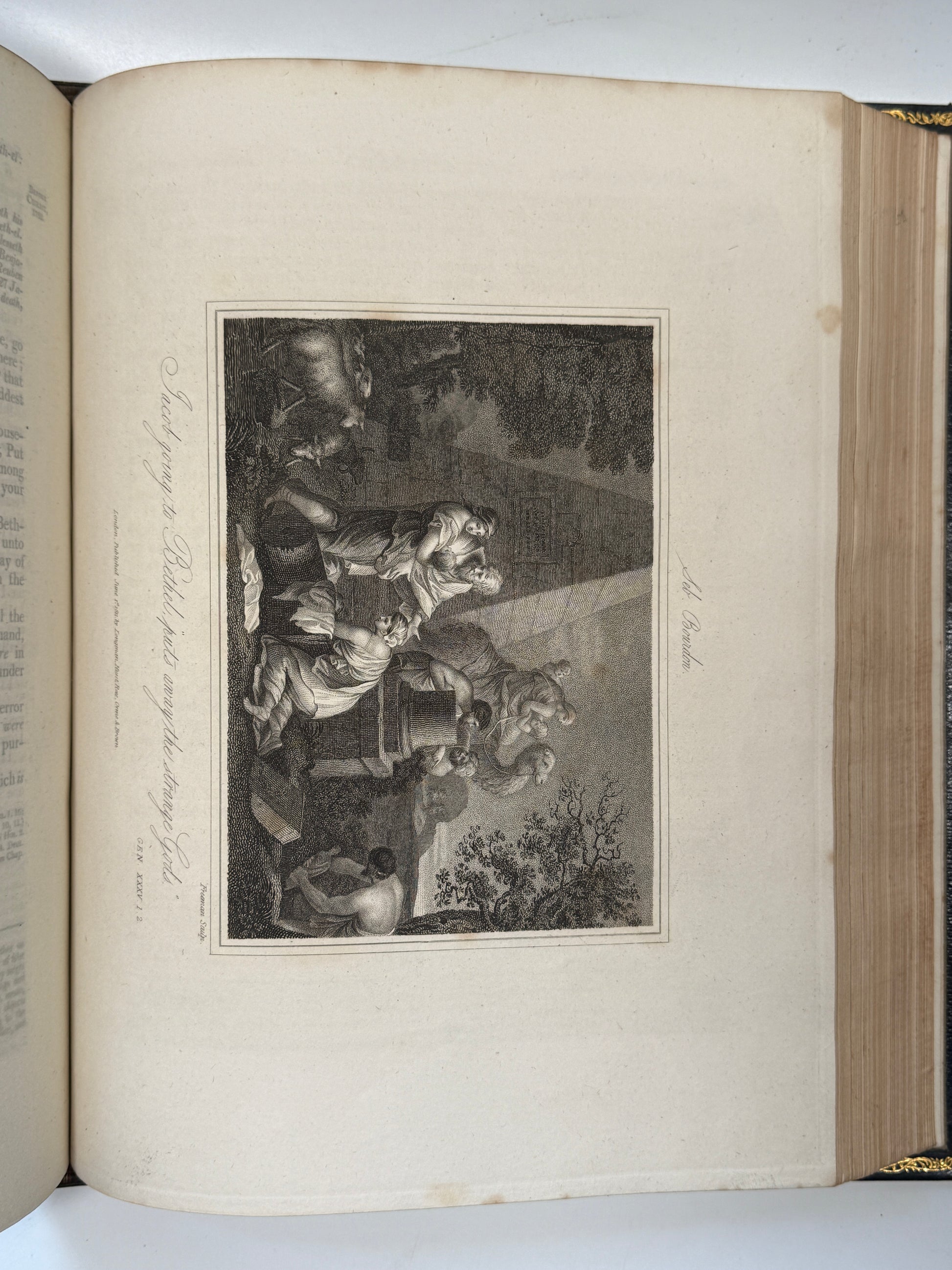 A magnificent finely bound set of the King James Bible, attractively illustrated throughout. This set truly is a visual masterpiece, with beautiful uniform contemporary full blue leather bindings with finely tooled gilt to spines and turn-ins with a striking tooled morocco presentation plate to the front pastedowns dated 1813. One of the best KJV Bible sets of this period we have ever seen, and with the books of the Bible divided intelligently into the separate volumes rather than the frequently encountered strange divisions one sees in sets. A set which is a genuine pleasure to read with beautiful well-sized type, generous margins, good quality paper, and a huge number of illustrations (including maps).
