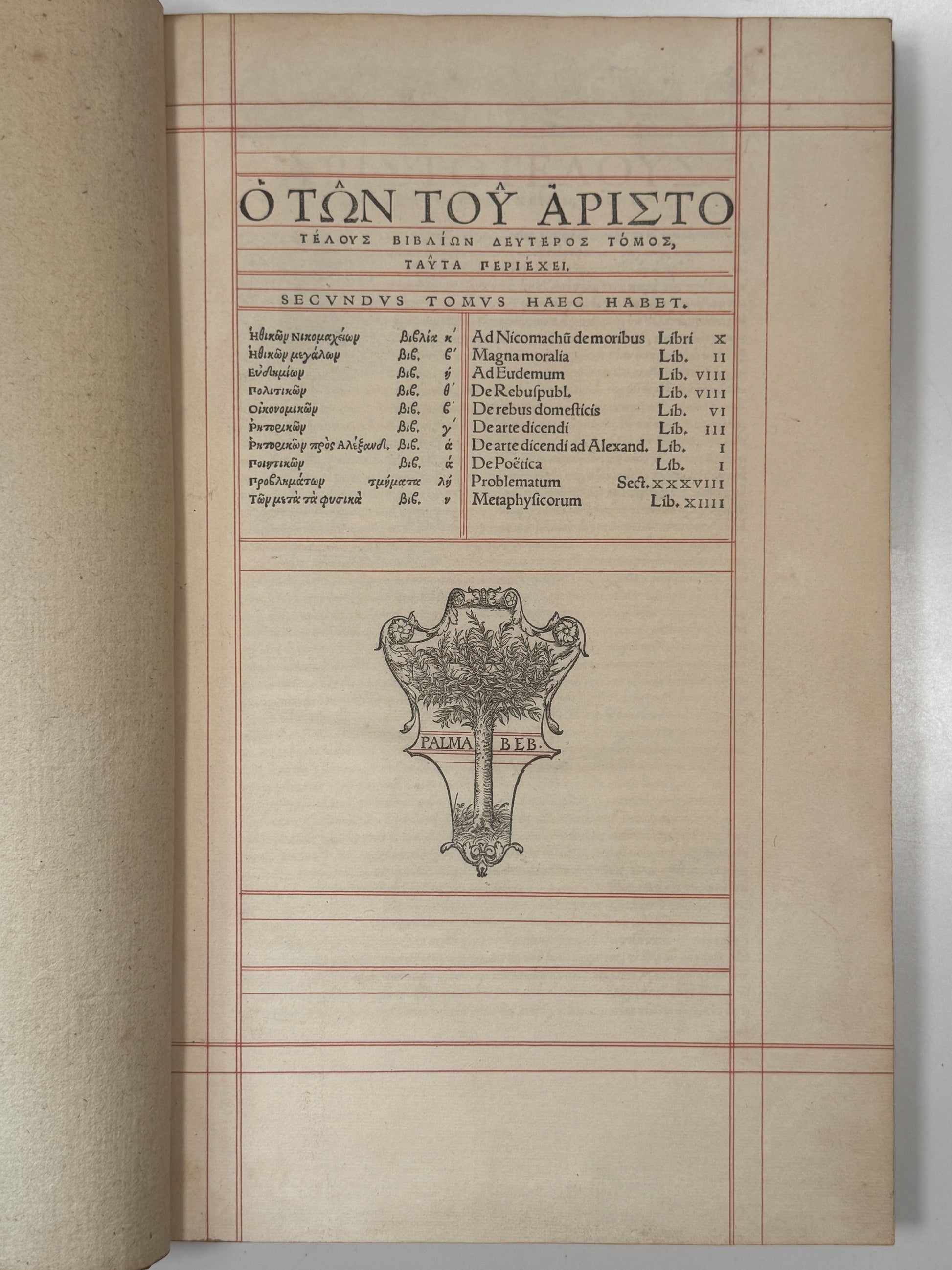 Opera Omnia Graece, Aristotle, edited by Desiderius Erasmus and Simon Grynaeus. Basel: Johann Bebel, 1531, folio.