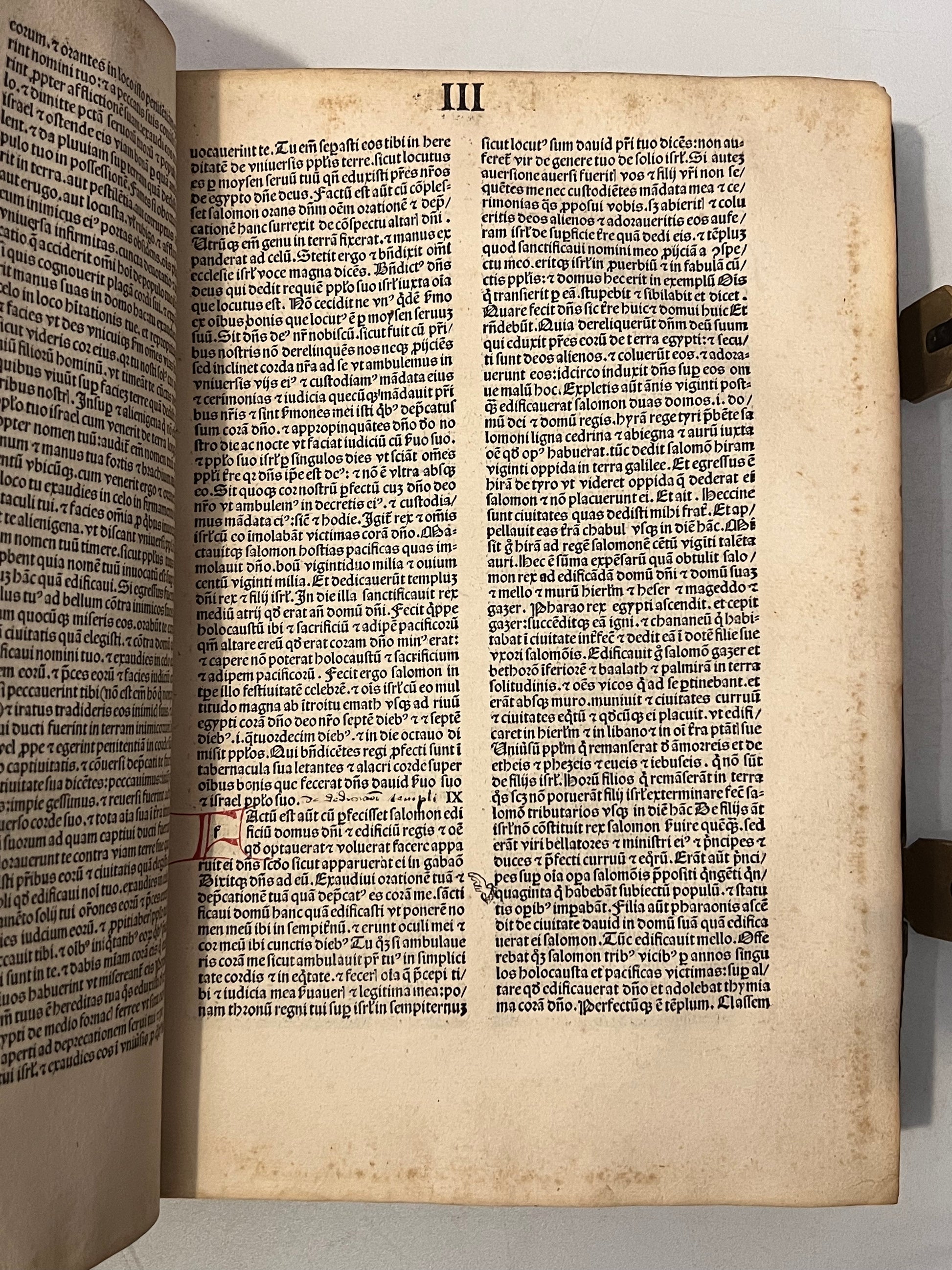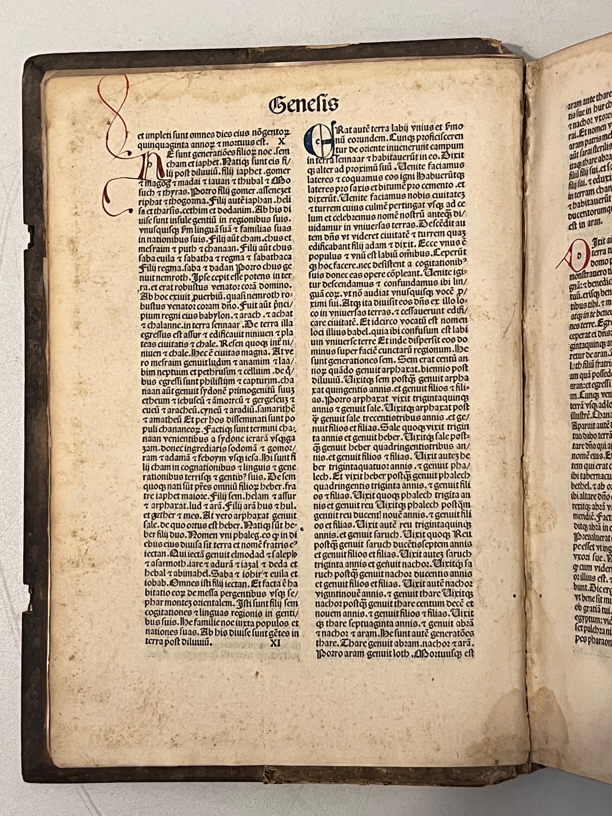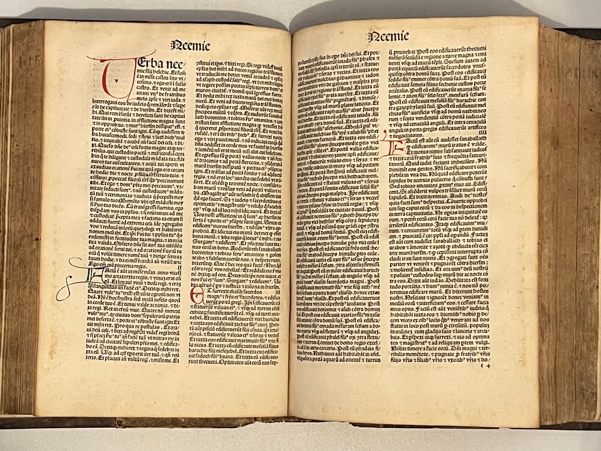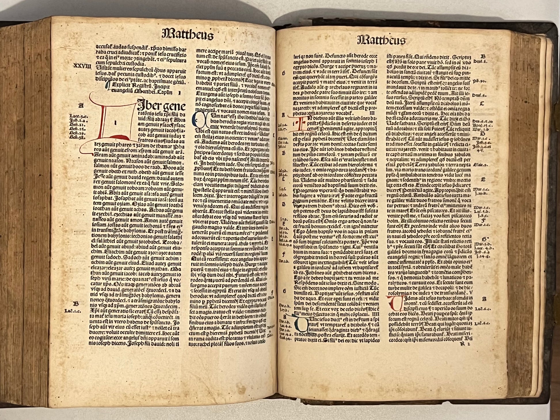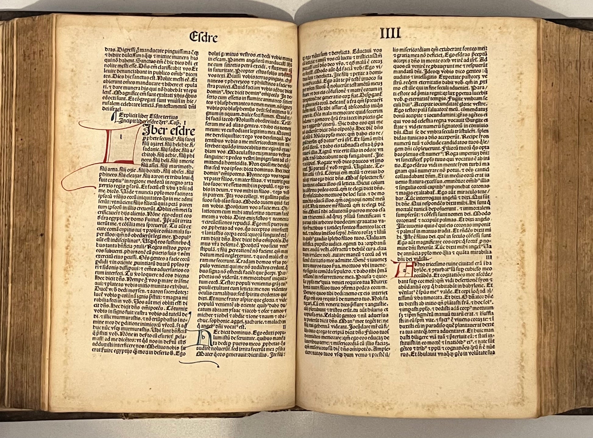 A MASTERPIECE OF EARLY PRINTING: THE FIRST EDITION OF KESSLER'S BIBLE, A TESTAMENT TO THE ARTISTRY AND INNOVATION OF THE INCUNABULA PERIOD, WITH DIRECT LINKS TO THE PRINTING OF THE GUTENBERG BIBLE IN BOTH STYLE AND FORMAT.