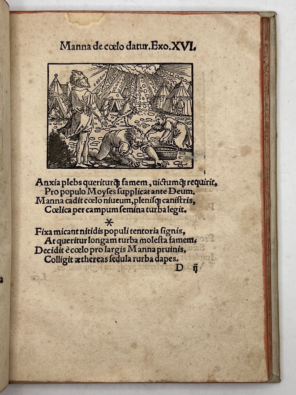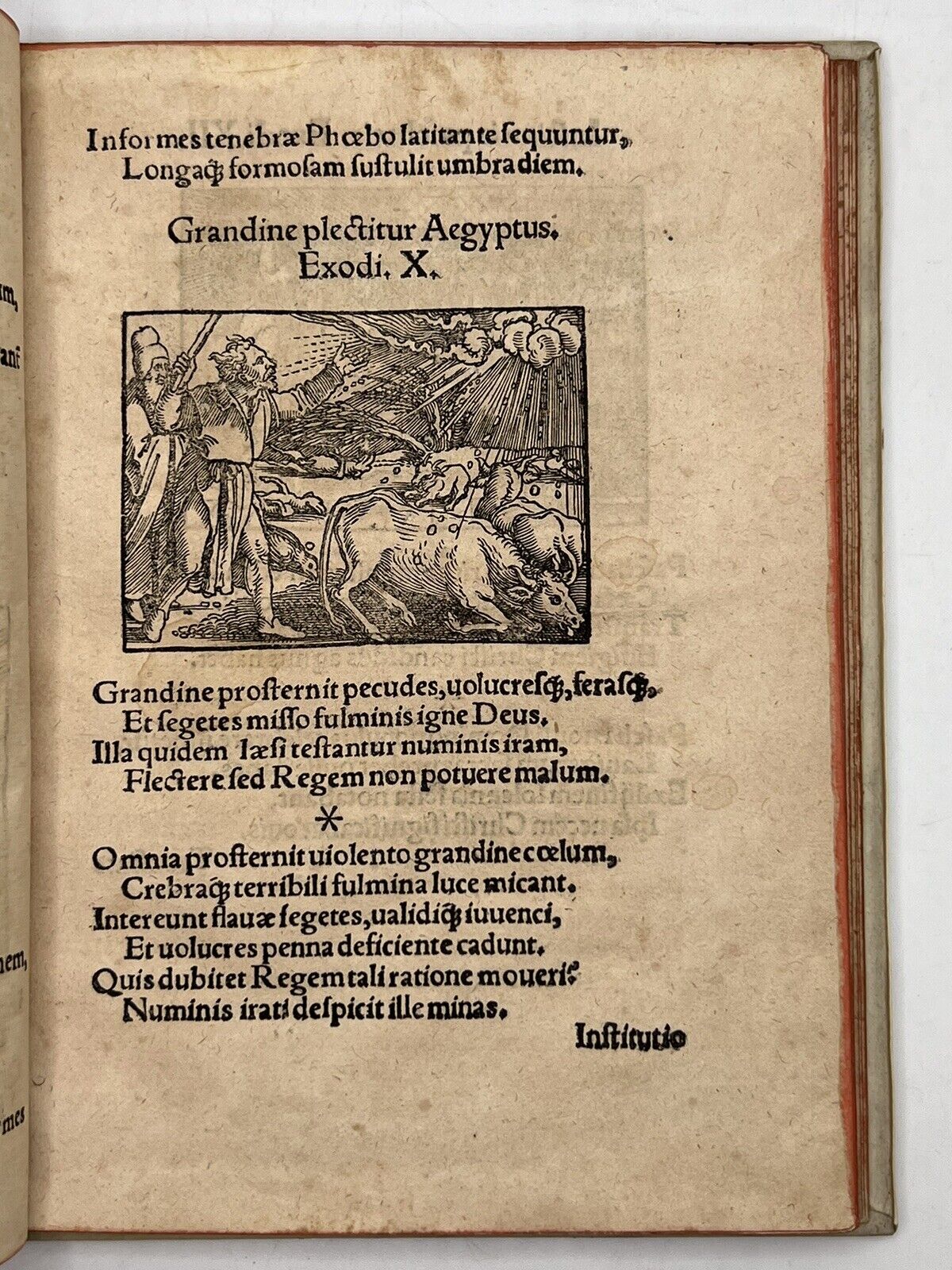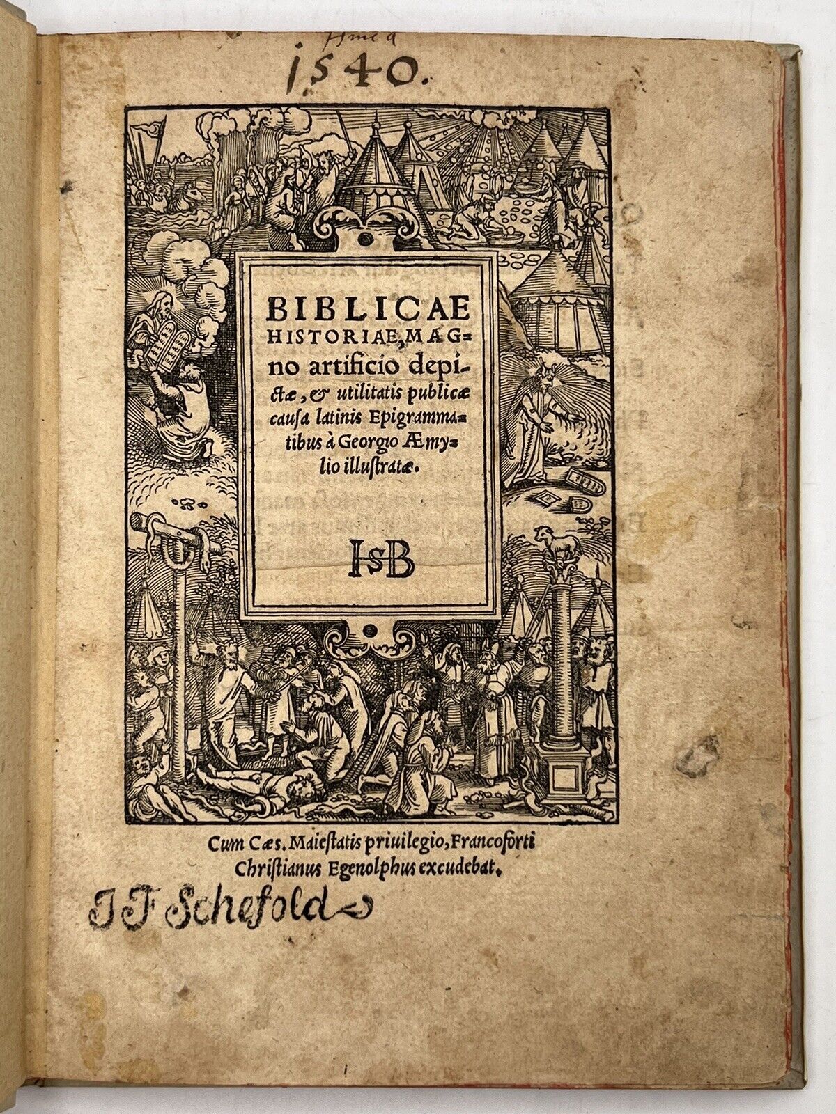 Biblicae Historiae, Magno artificio depictae, et utilitatis publicae causa latinis Epigrammatibus a Georgio Aemylio illustratae. Cum Caes. Maiestatis privilegio, Francoforti Christianus Egenolphus excudebat, 1539, small 4to.