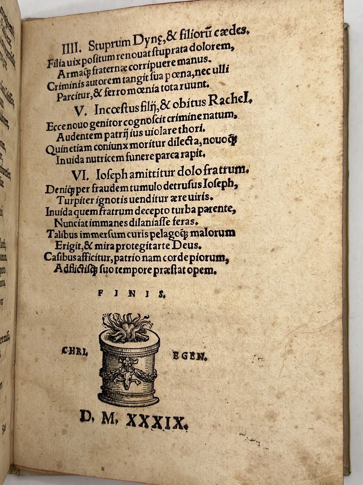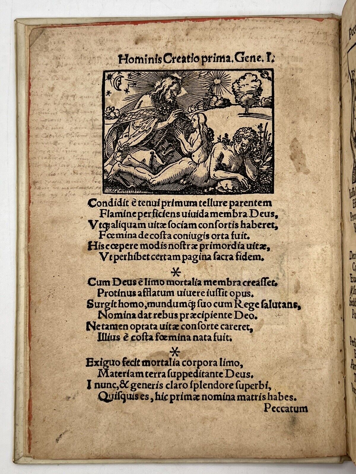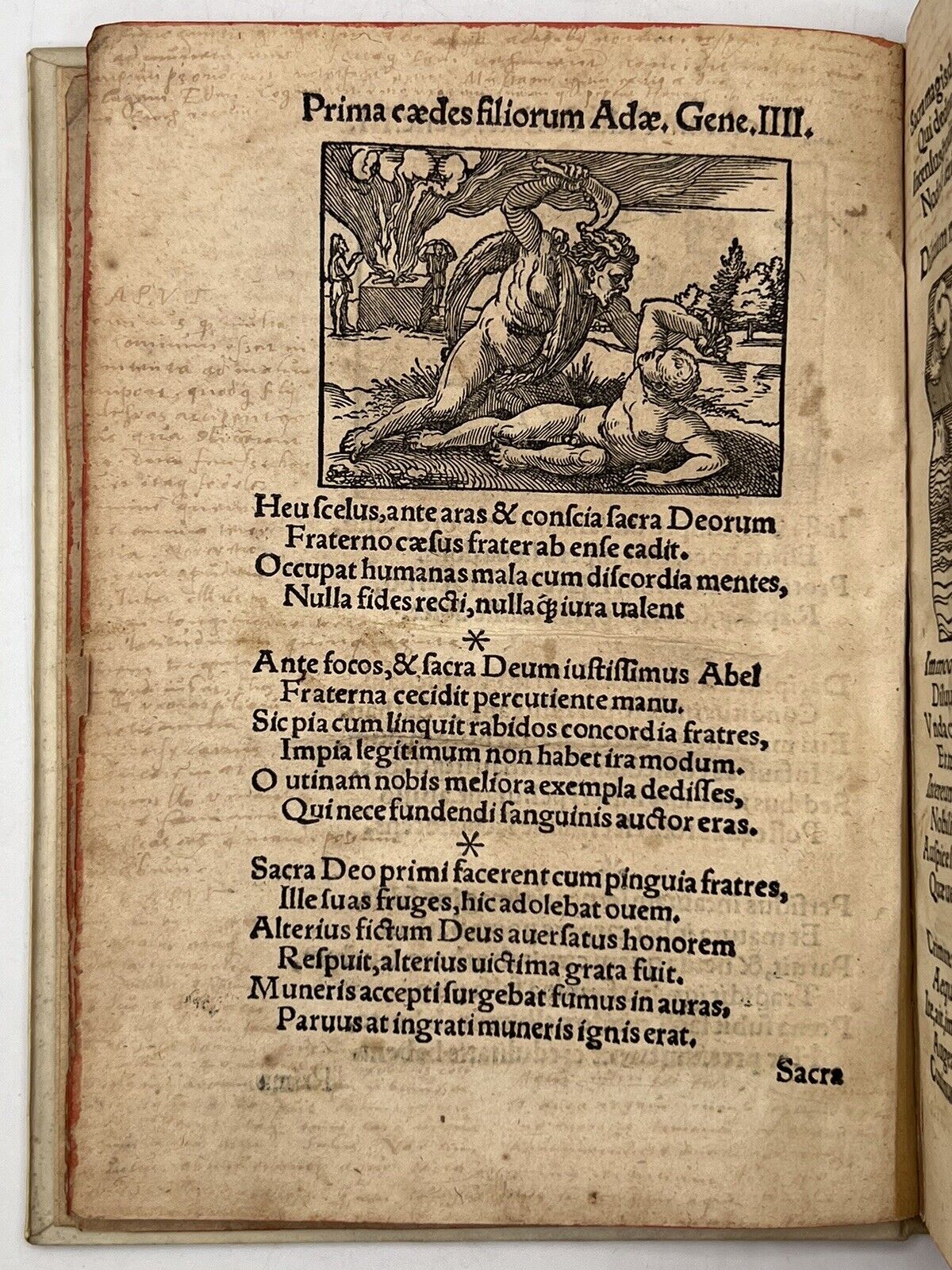 FIRST EDITION of Georg Aemilius' Biblicae Historiae Magno Artificio Depictae, a very scarce work, with just 6 copies held institutionally worldwide (USTC) and exceedingly rare, being near unobtainable, we can only trace two copies having sold in the last 50 years, this copy being one of them. This is about as close as one can come to obtaining a Tyndale New Testament or Coverdale Bible, with those generally unobtainable both for their scarcity and extremely high prices. This is quite possibly the greatest obtainable copy, collated as complete, with excellent provenance.