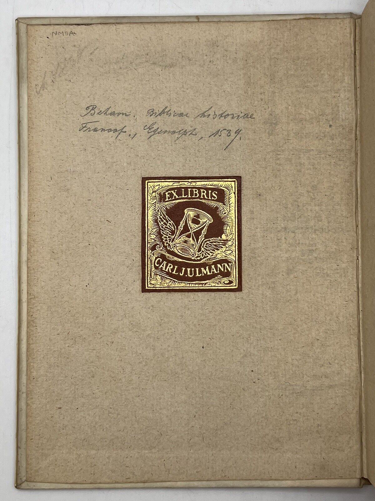 Carl J. Ulmann, very fine bookplate to front pastedown with some pencil notes to the rear endpaper, including a collation and some bibliographical references.