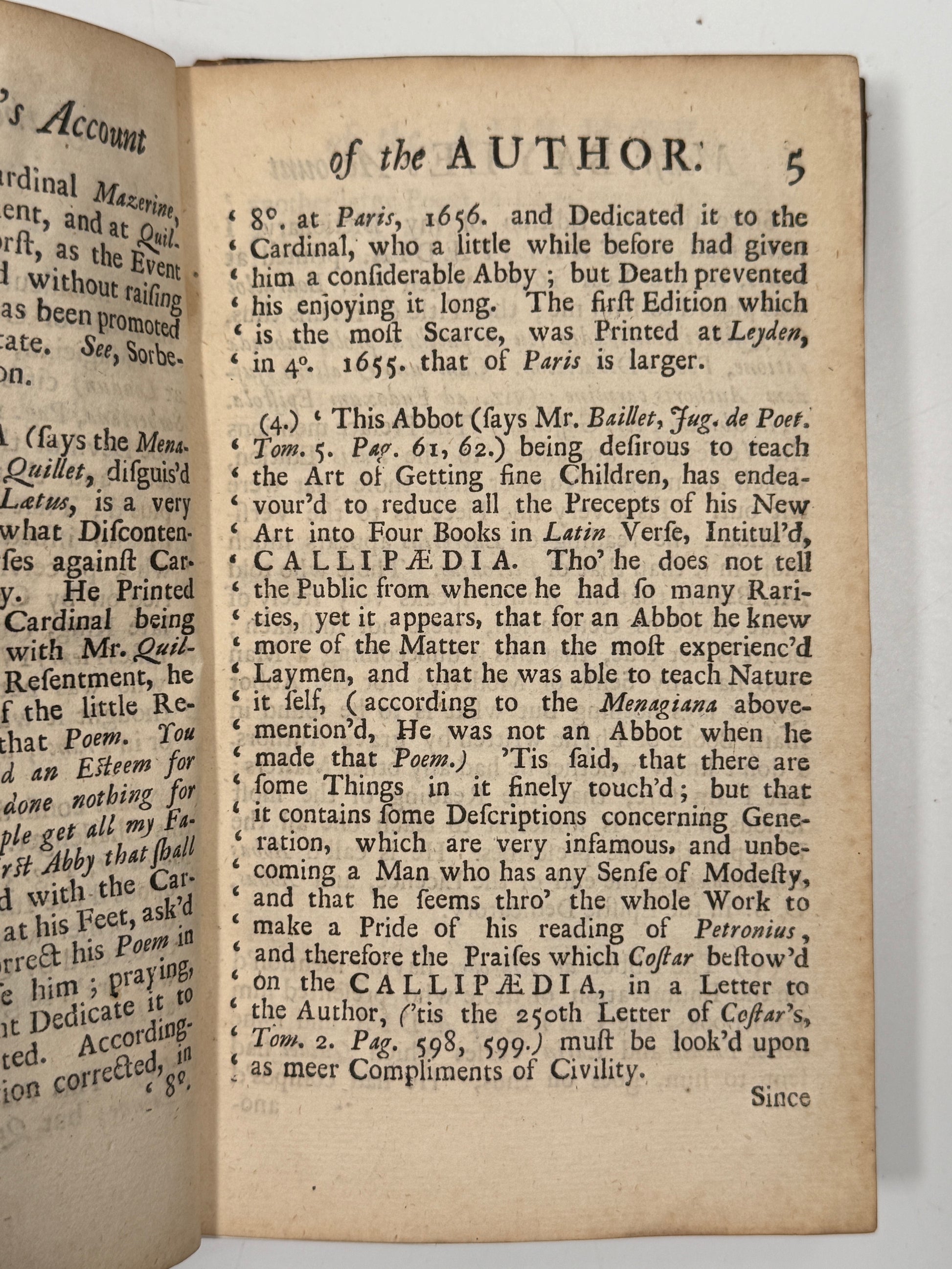 Callipaedia. A Poem. In Four Books. With Some Other Pieces. Written in Latin by Claudius Quillet, Made English by N. Rowe, To which is Prefix'd, Mr. Bayle's Account of His Life. London: E. Sanger and E. Curll, 1712.