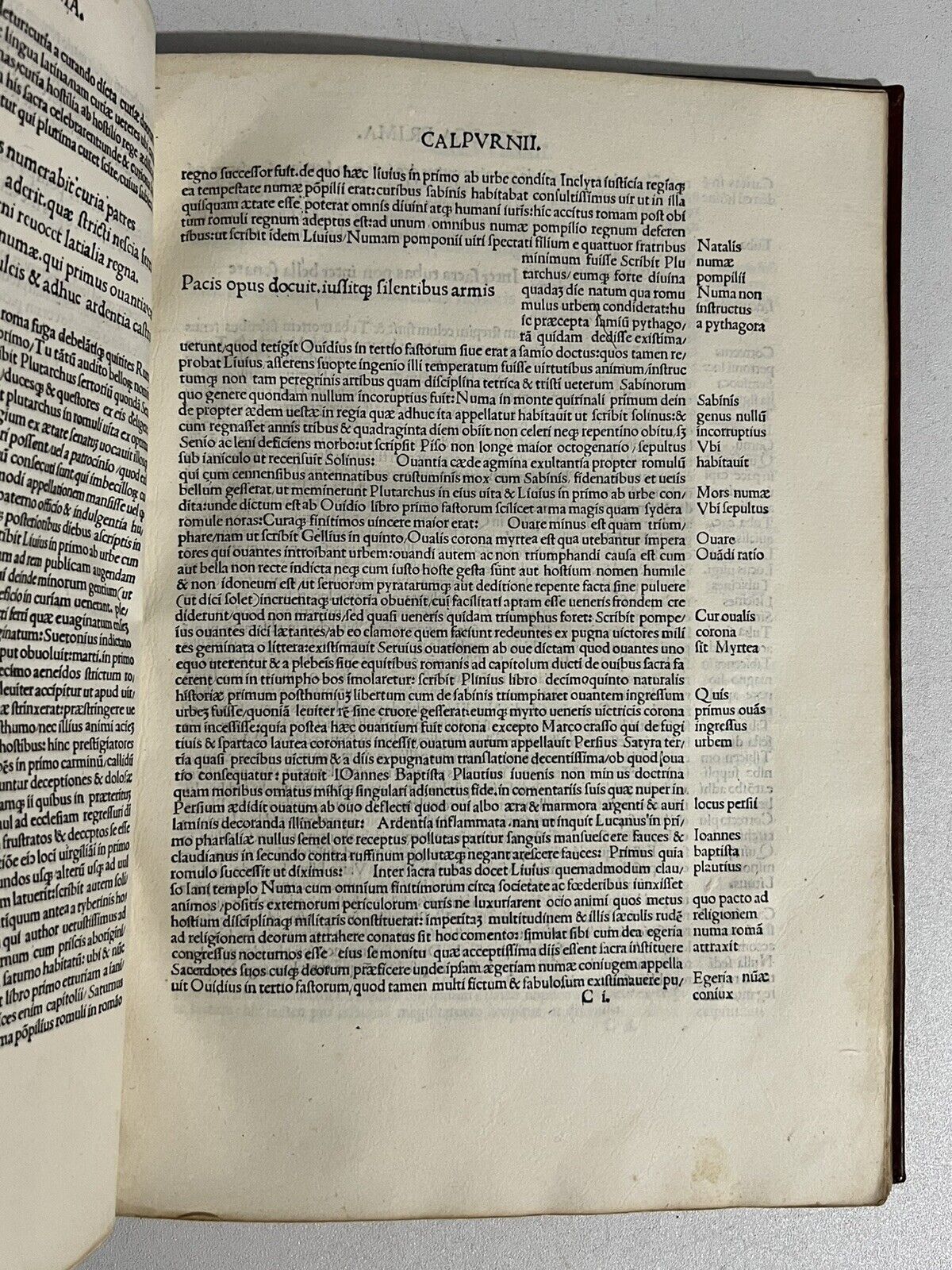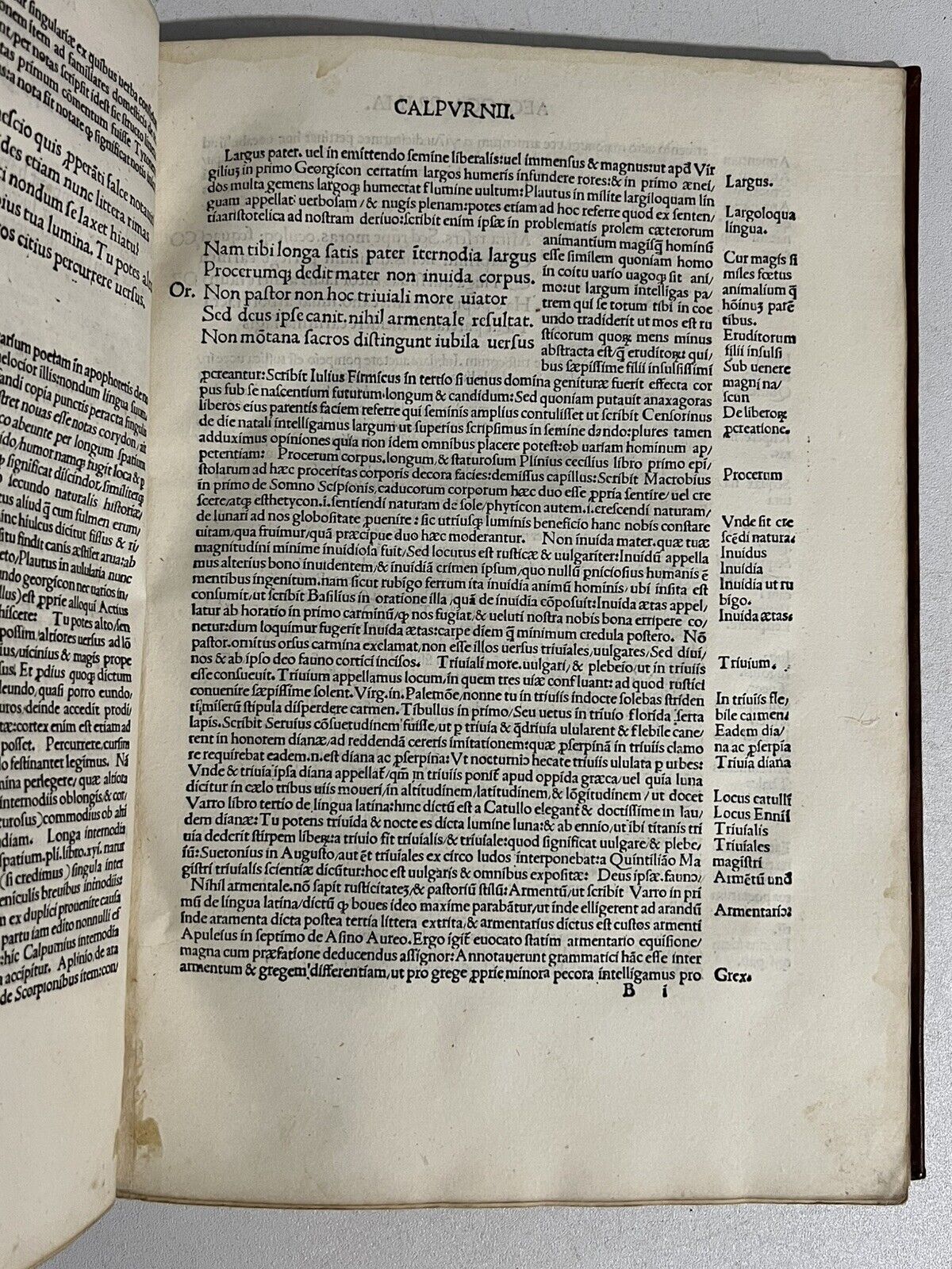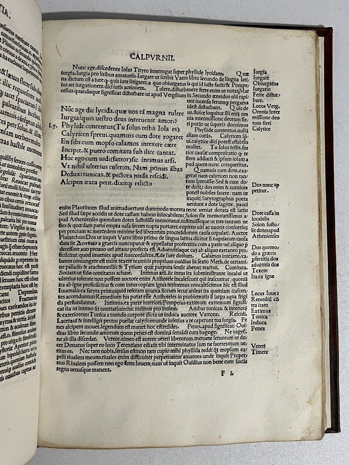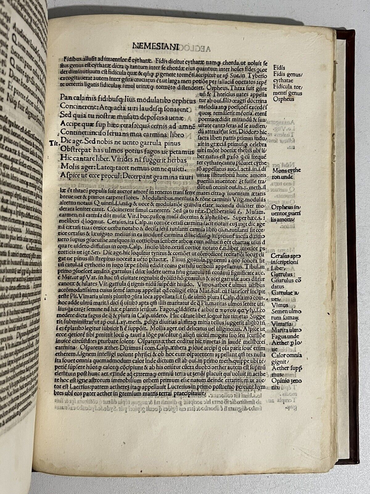 The Roman poets Titus Calpurnius Siculus and Marcus Aurelius Nemesianus (the latter is not to be confused with the emperor Marcus Aurelius) are best known for the imitative Virgilian style with their works celebrating rural life. There is debate over when they wrote, but general consensus agrees that they at least post-date Virgil for their thematic and stylistic use of the Eclogues. Calpurnius is also said to imitate Ovid and Theocritus. The first edition of this work appeared in 1490 in Nuremberg, this being the 5th overall edition, the first to be printed in Bologna and the second in Italy.