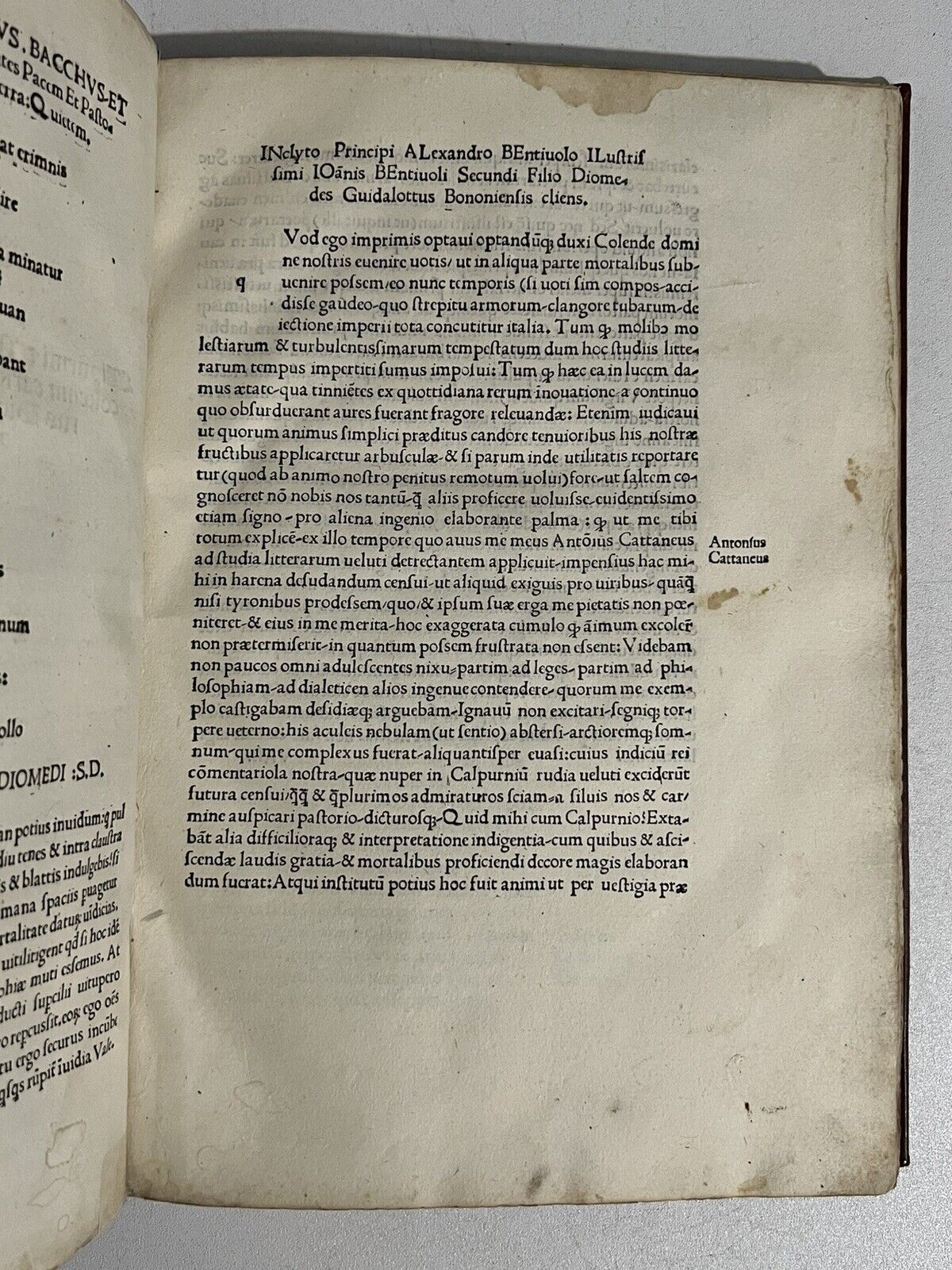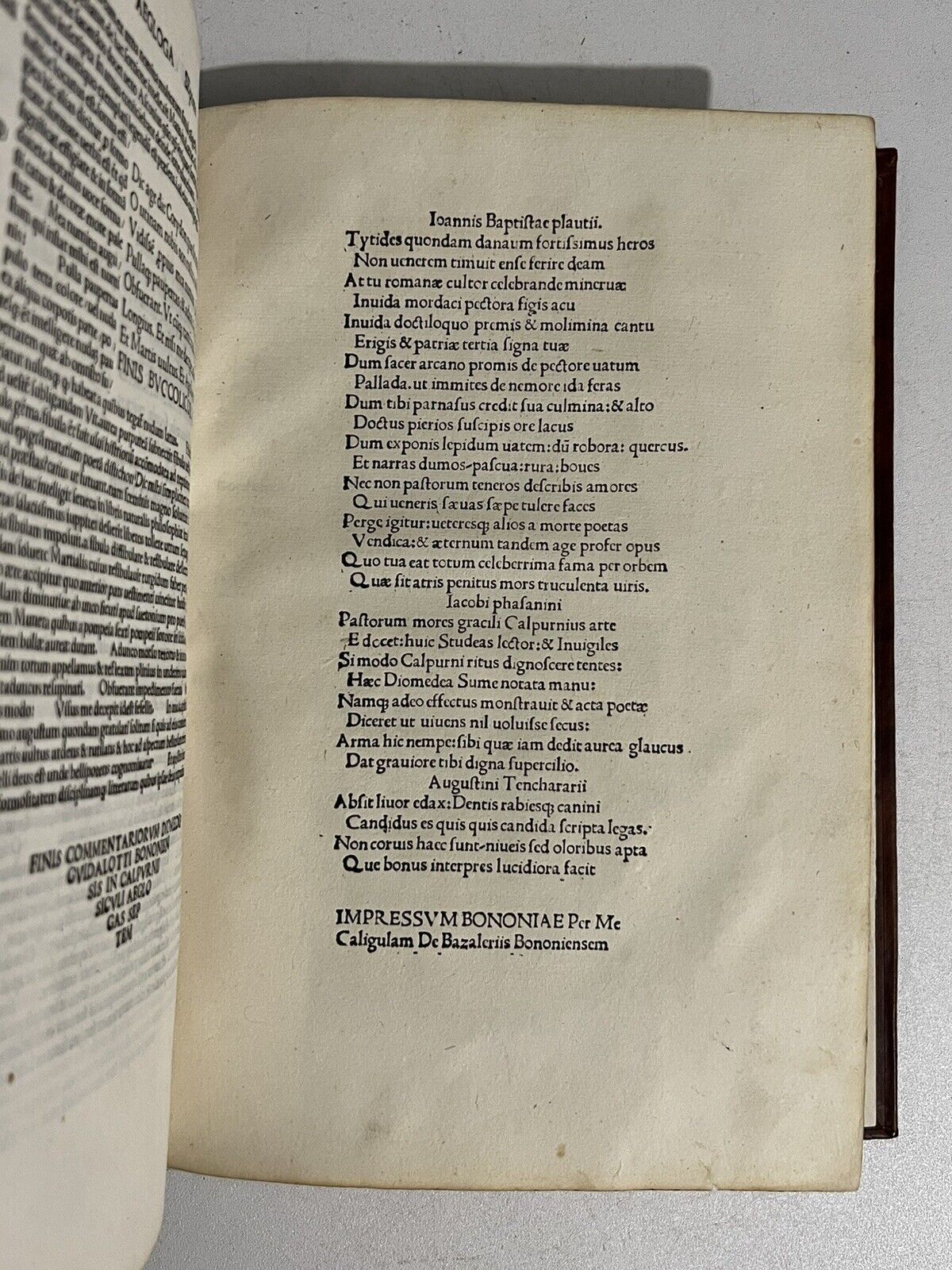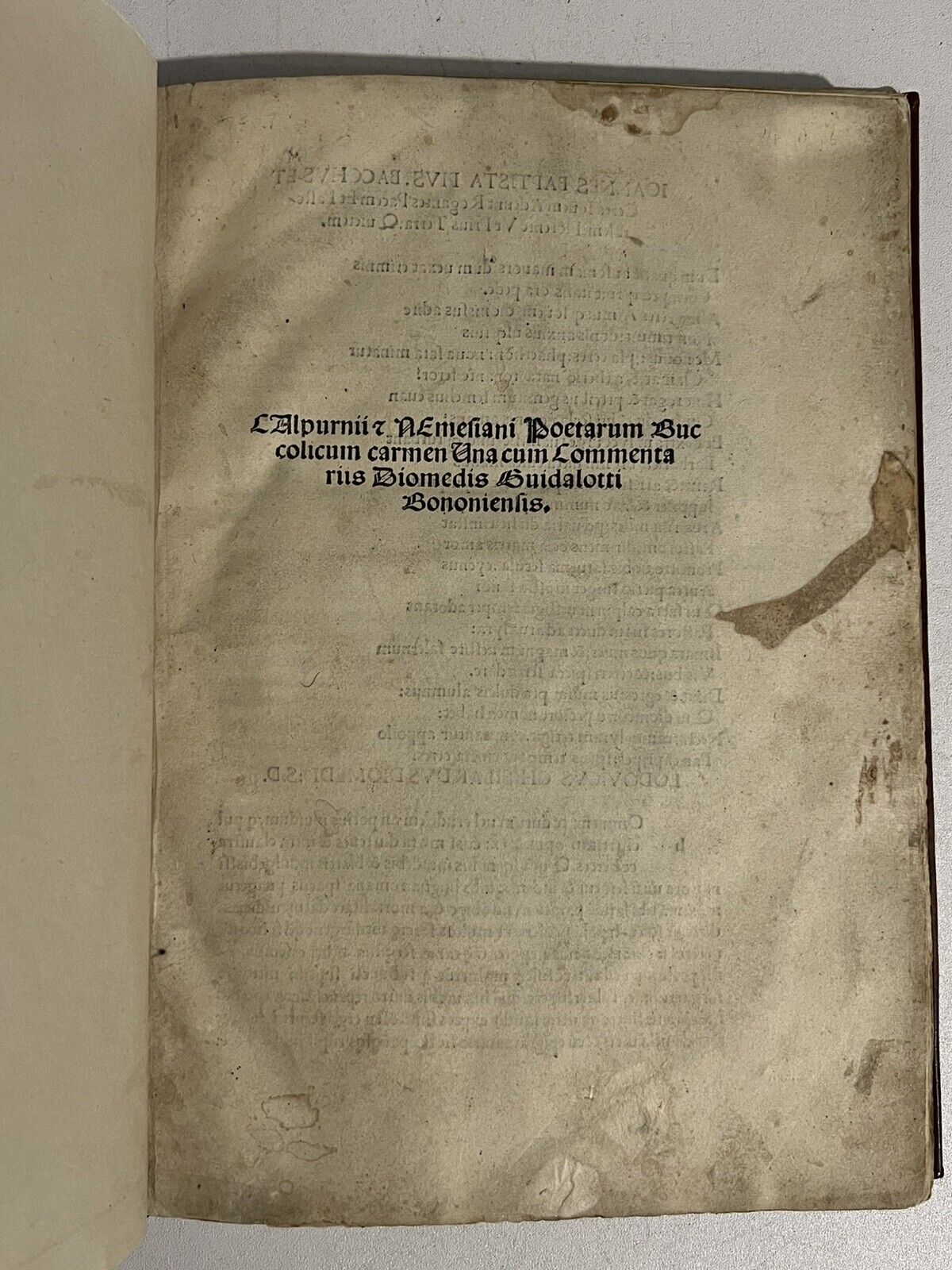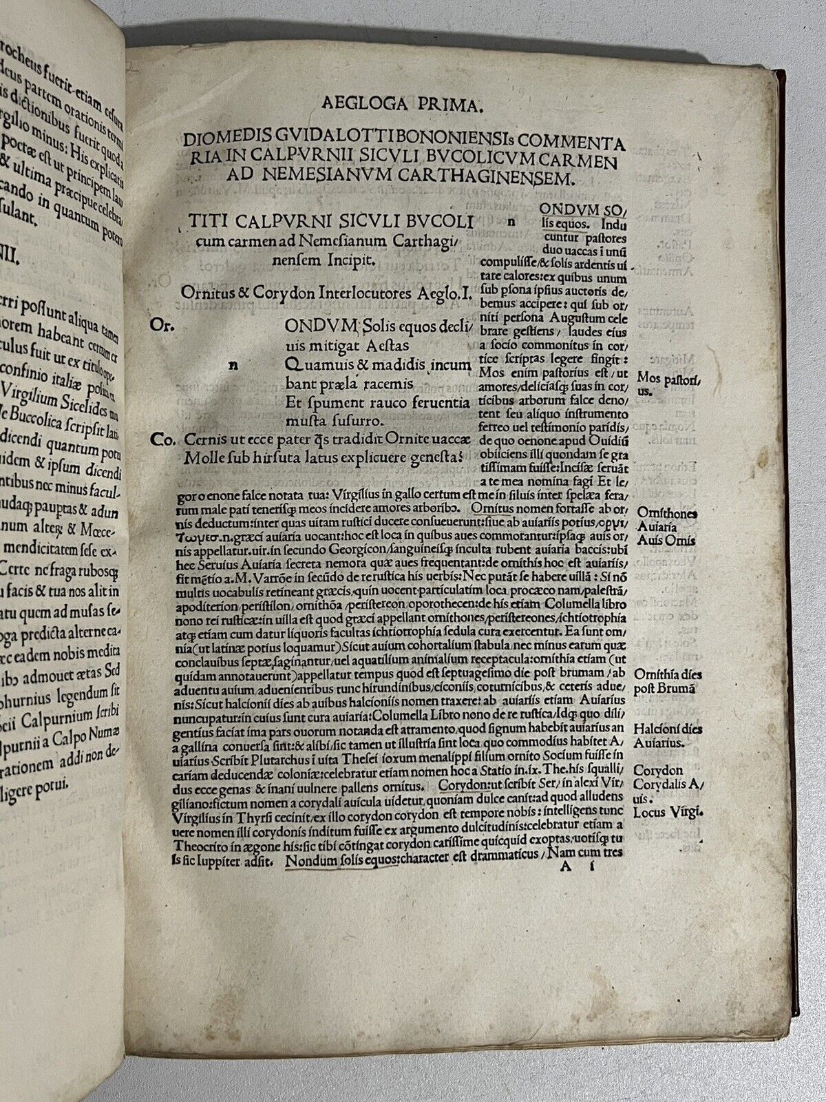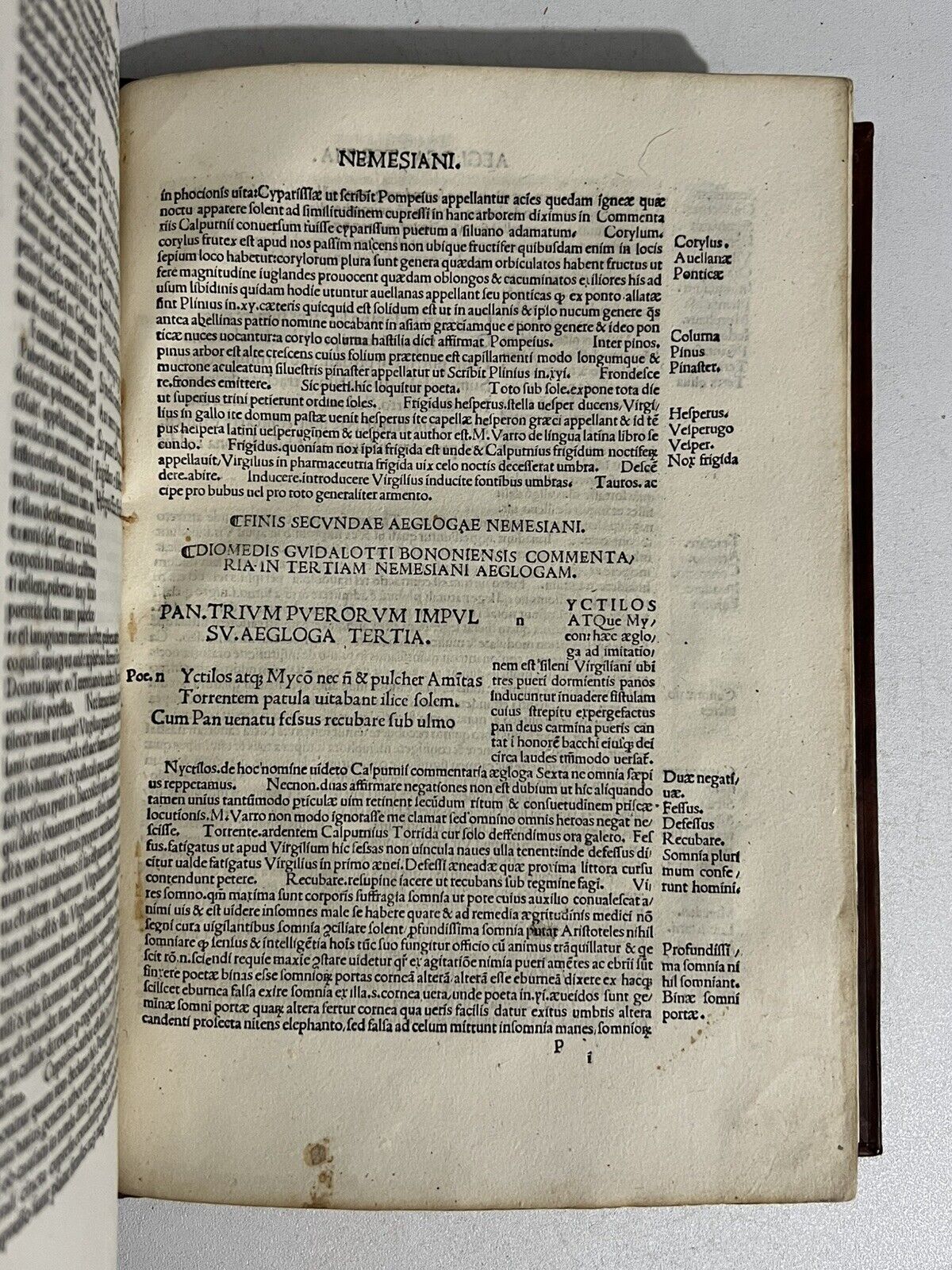 The Bucolic Poems of the Poets Calpurnius and Nemesianus, together with the Commentary of Diomedes Guidalotta of Bologna. Bologna: Caligula Bazalerius, 1504, folio.
