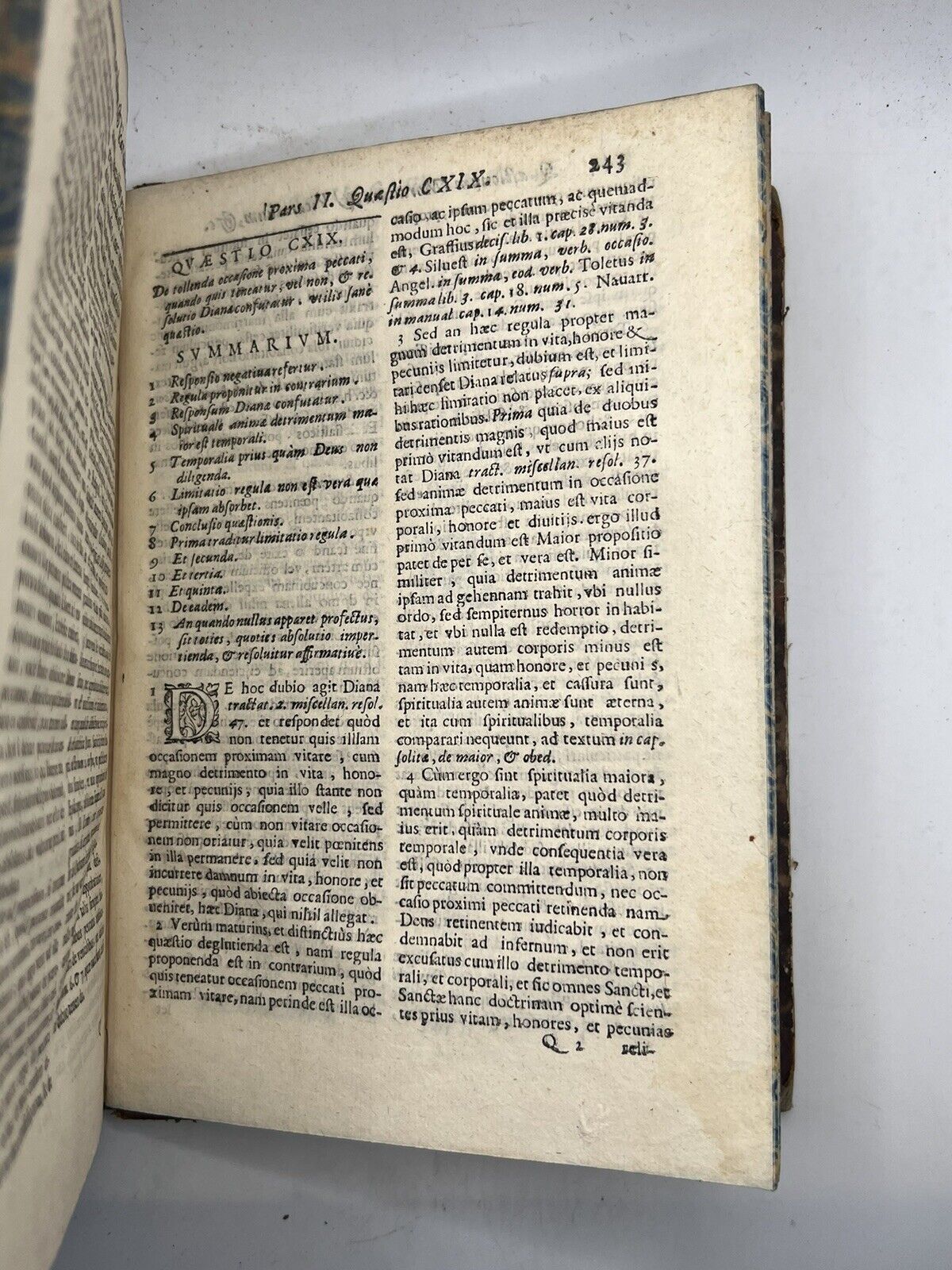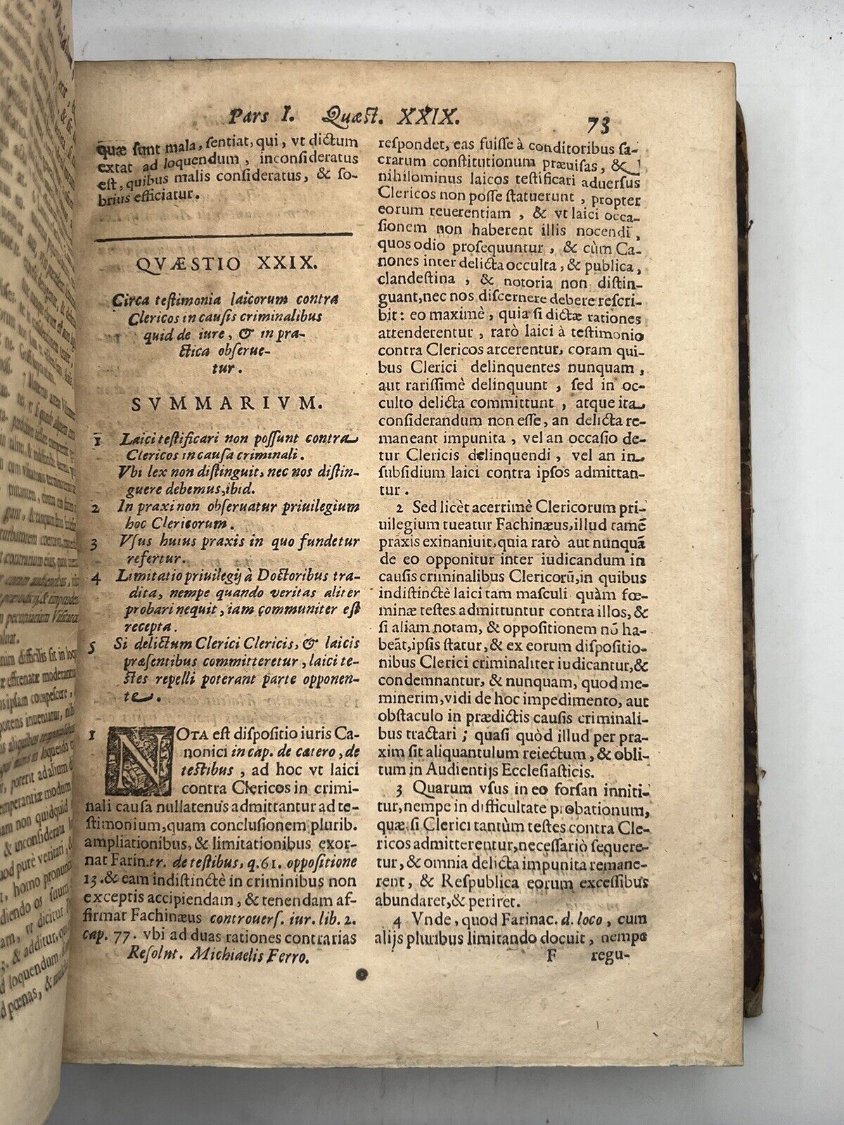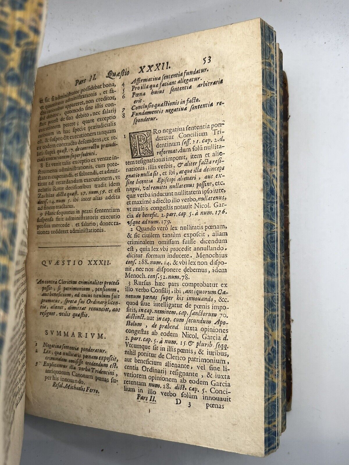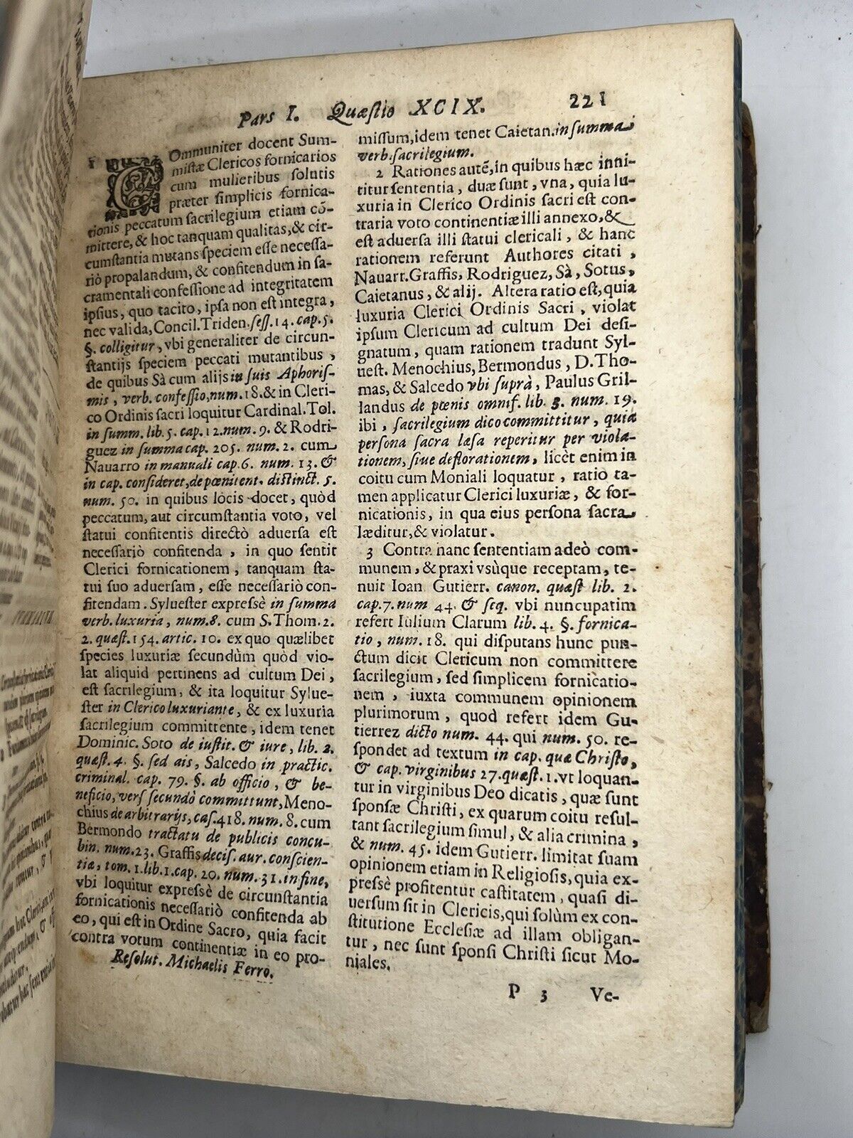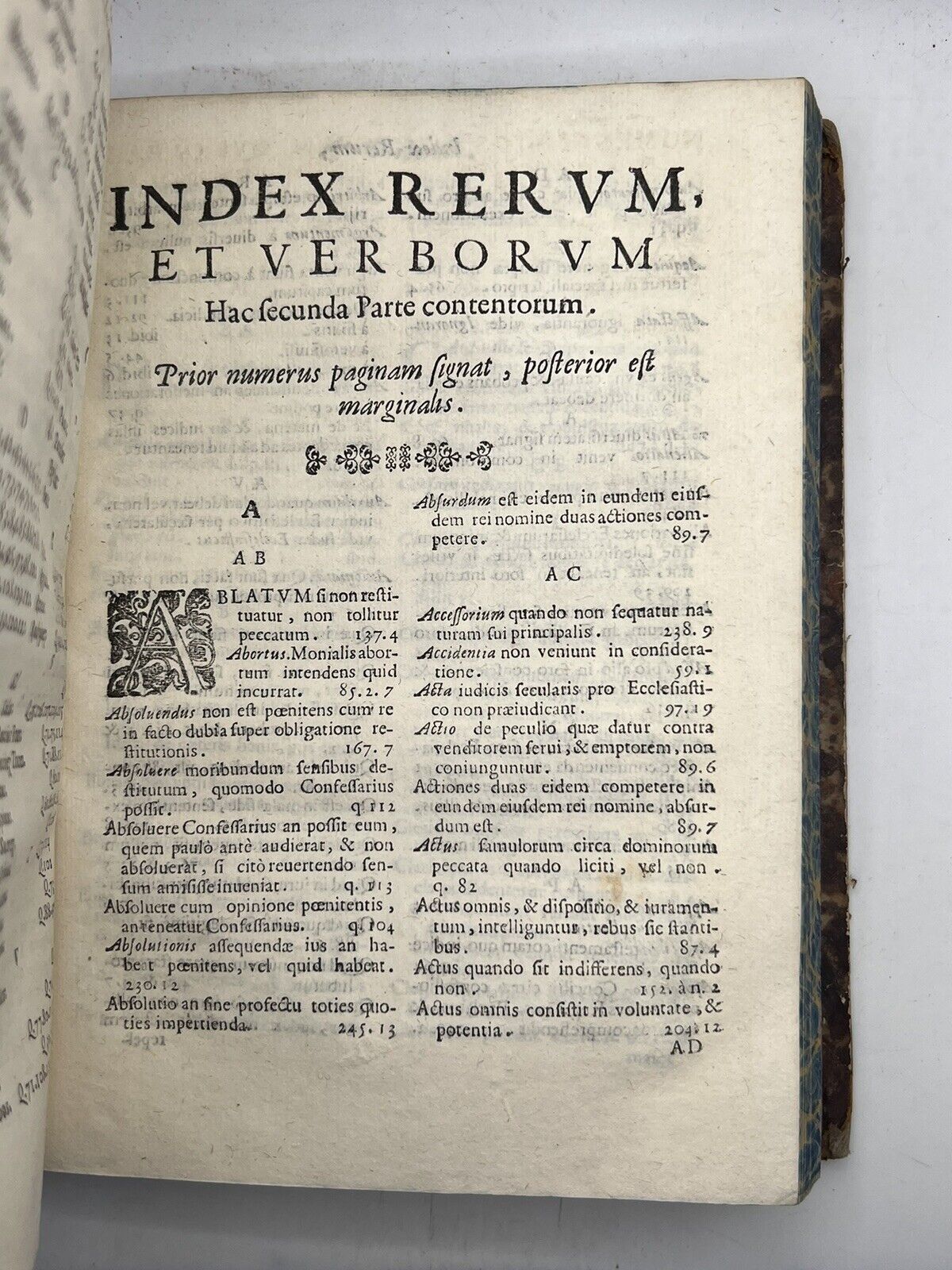 Resolved Moral and Vicarial Questions. In Which Many Matters Pertaining to Vicars and Ecclesiastical Judges, Their Hearings, and Syndicate Matters are Arranged, Along with Certain Questions Pertaining to Visitors. With Summaries and a Triple Index: One of Questions, Another of Laws and Rights, the Third of Rich Matters and Words. By D. Michael Ferro Manrique. First Edition. Venice, 1641.