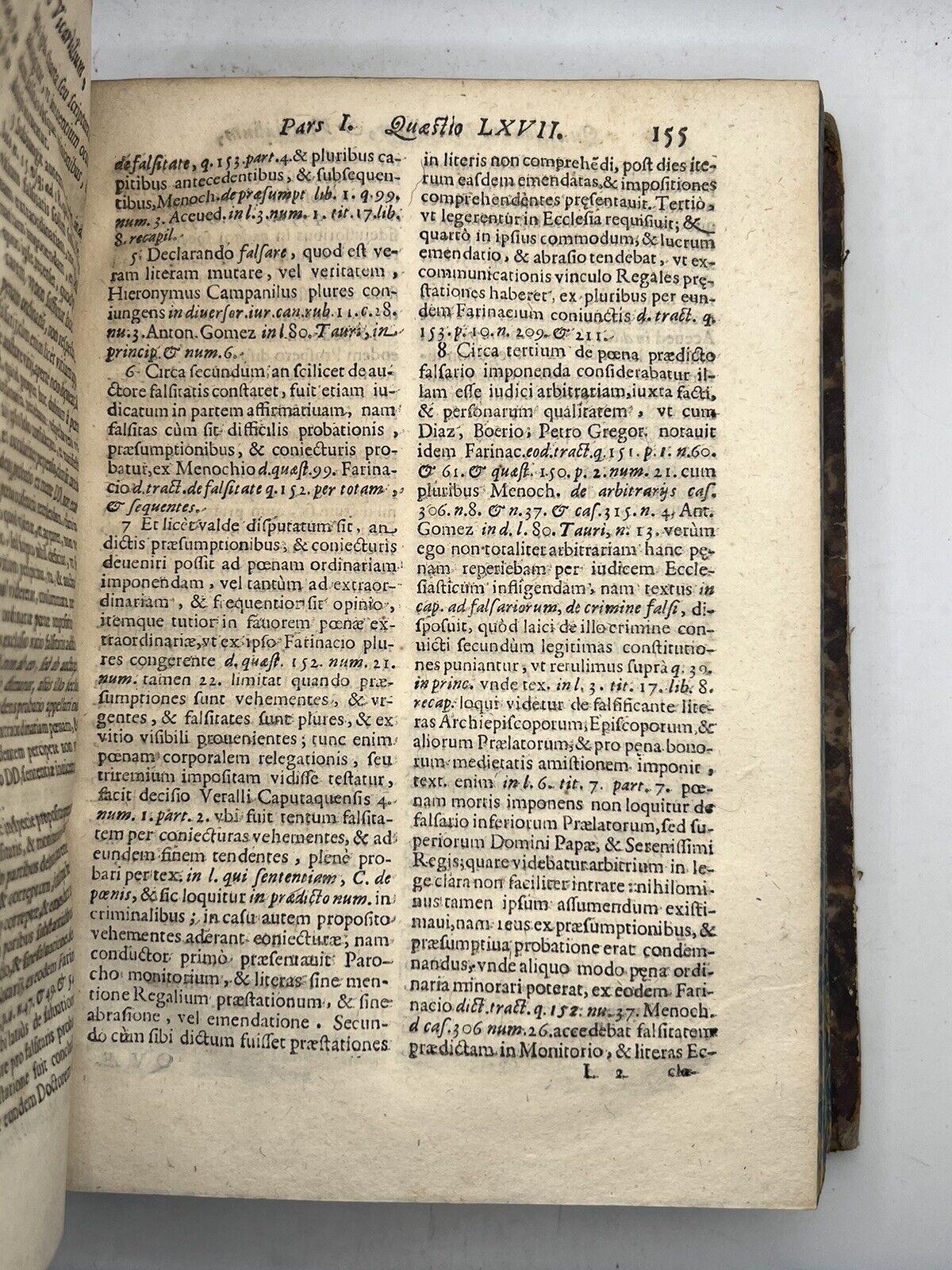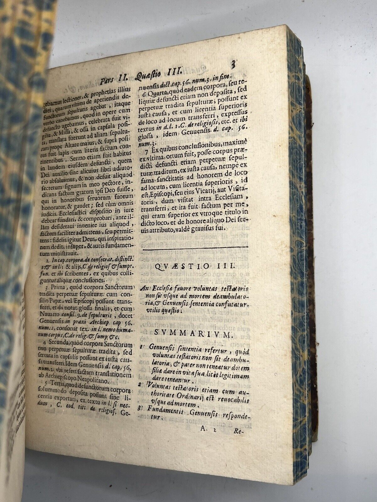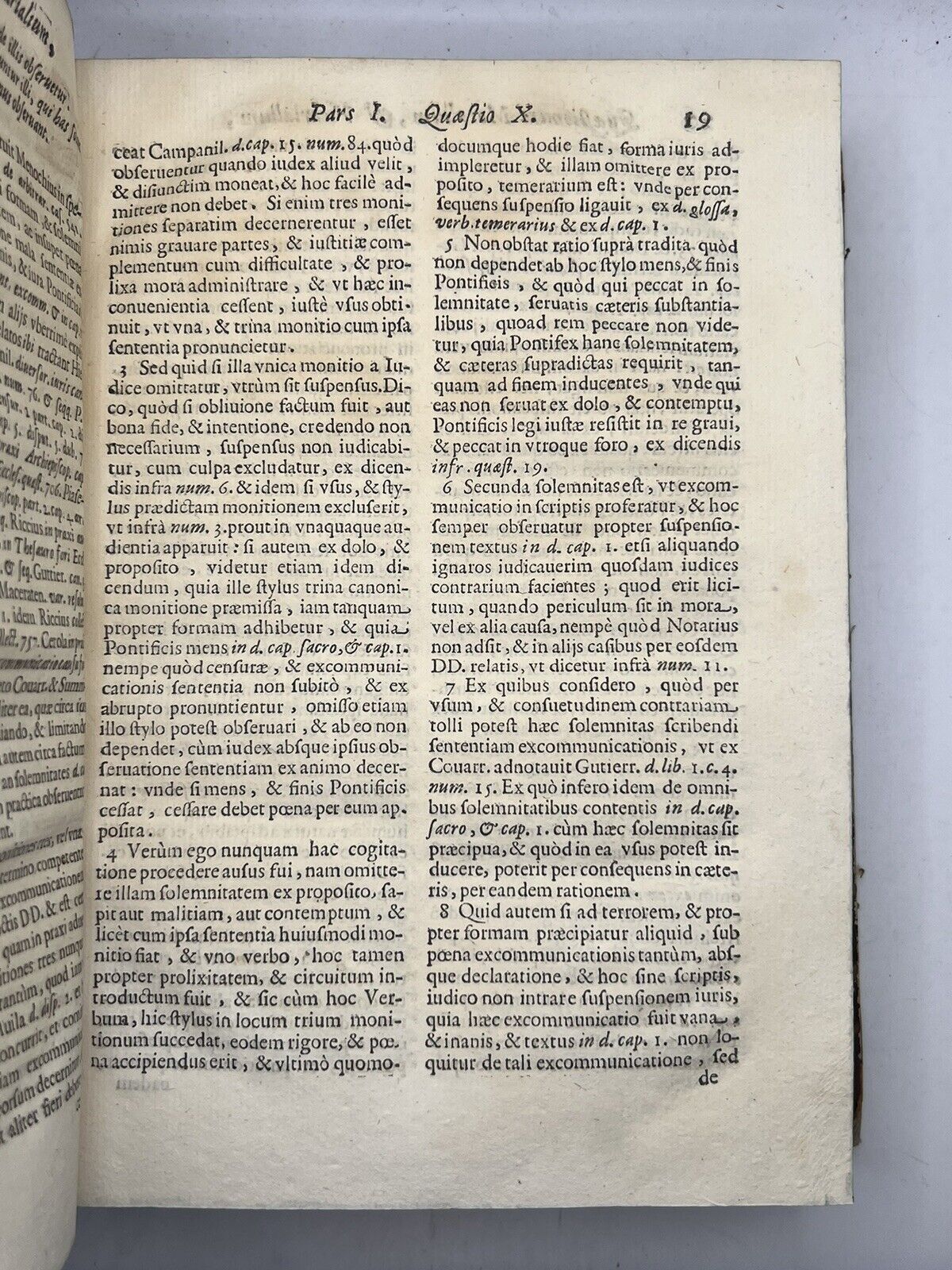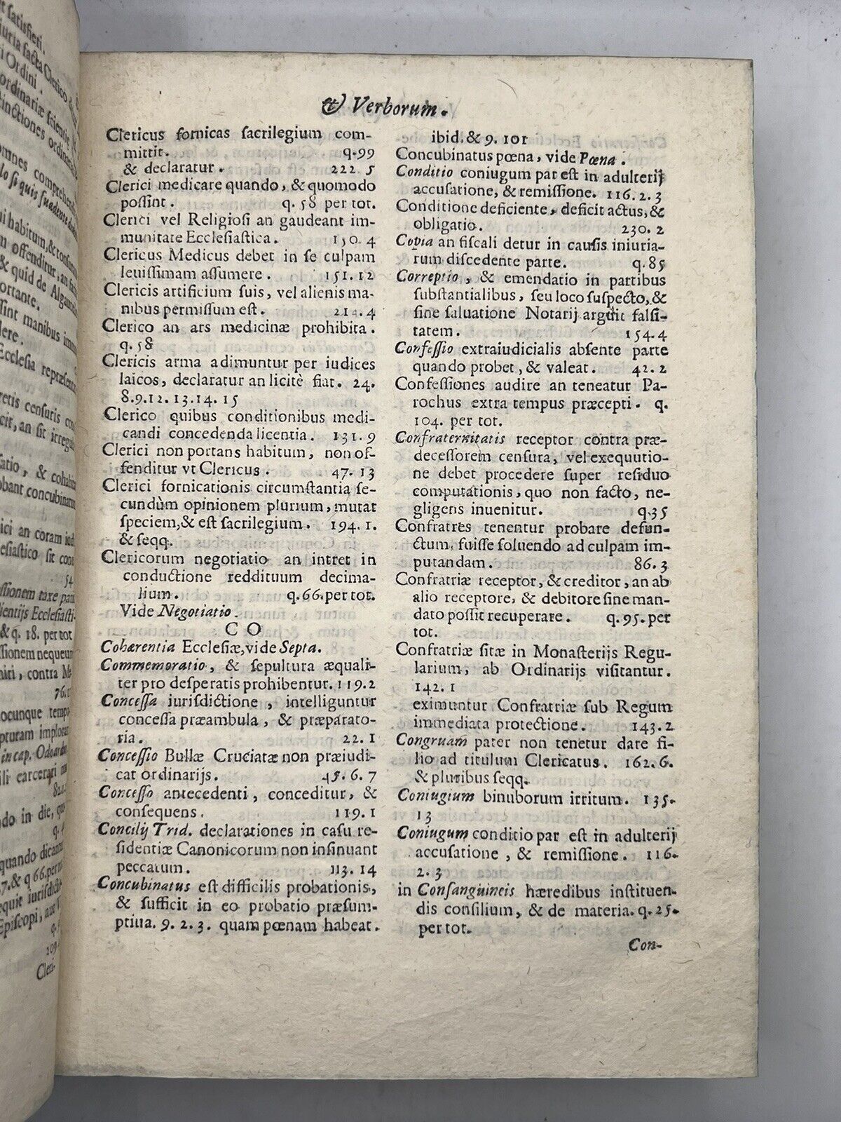 Resolved Moral and Vicarial Questions. In Which Many Matters Pertaining to Vicars and Ecclesiastical Judges, Their Hearings, and Syndicate Matters are Arranged, Along with Certain Questions Pertaining to Visitors. With Summaries and a Triple Index: One of Questions, Another of Laws and Rights, the Third of Rich Matters and Words. By D. Michael Ferro Manrique. First Edition. Venice, 1641.