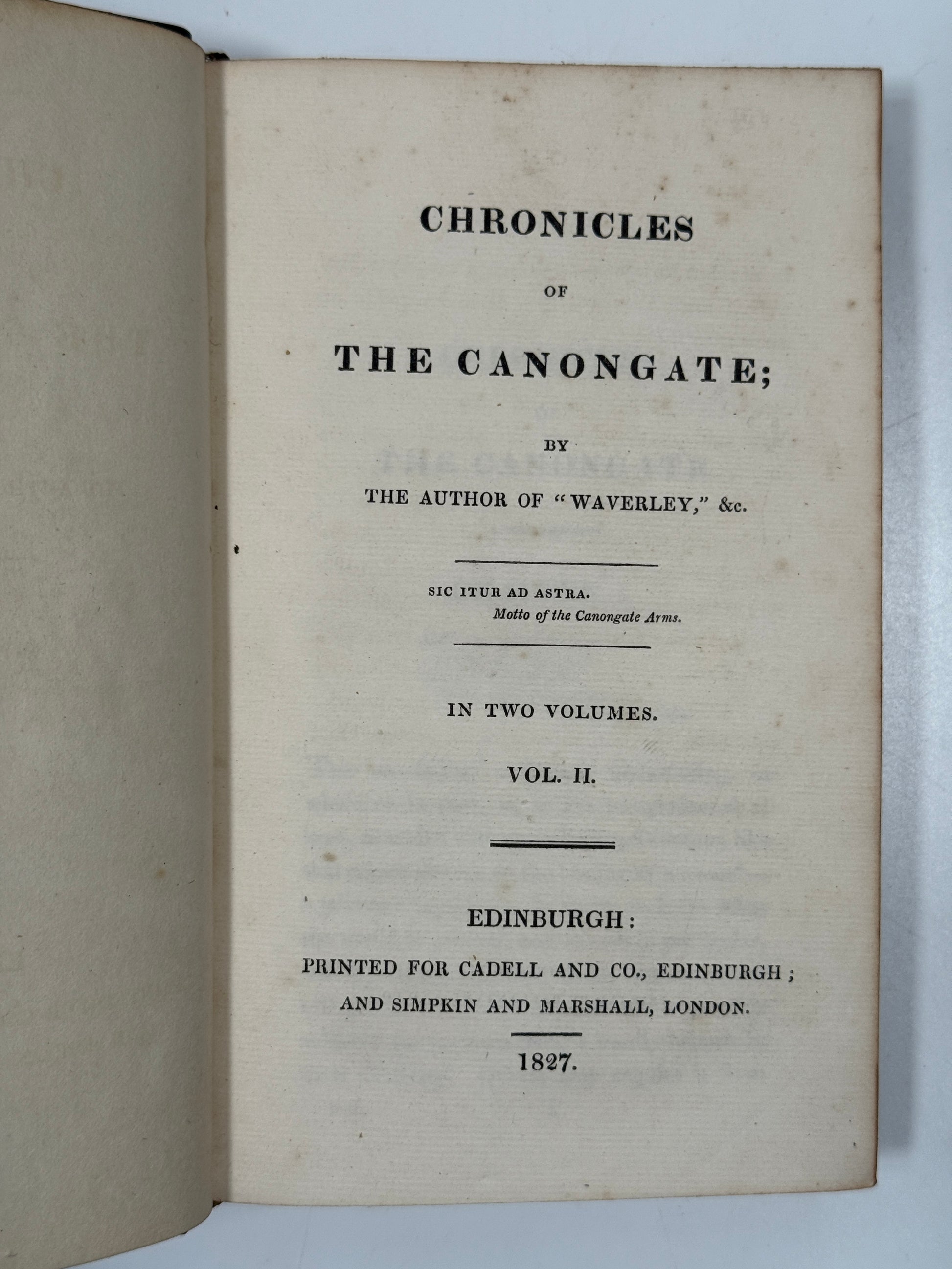 Chronicles of the Canongate; by the Author of "Waverley," &c. [Walter Scott]. In Two Volumes. Edinburgh: Printed for Cadell and Co., Edinburgh; and Simpkin and Marshall, London. 1827.