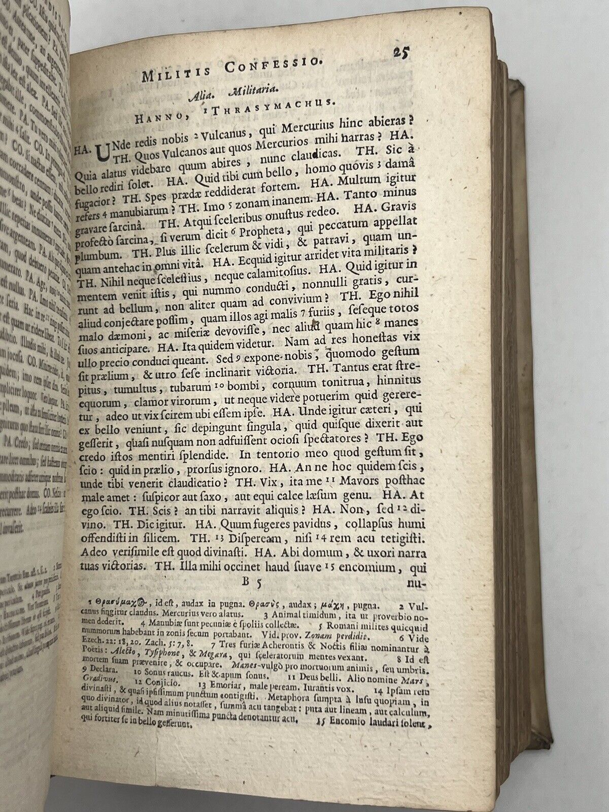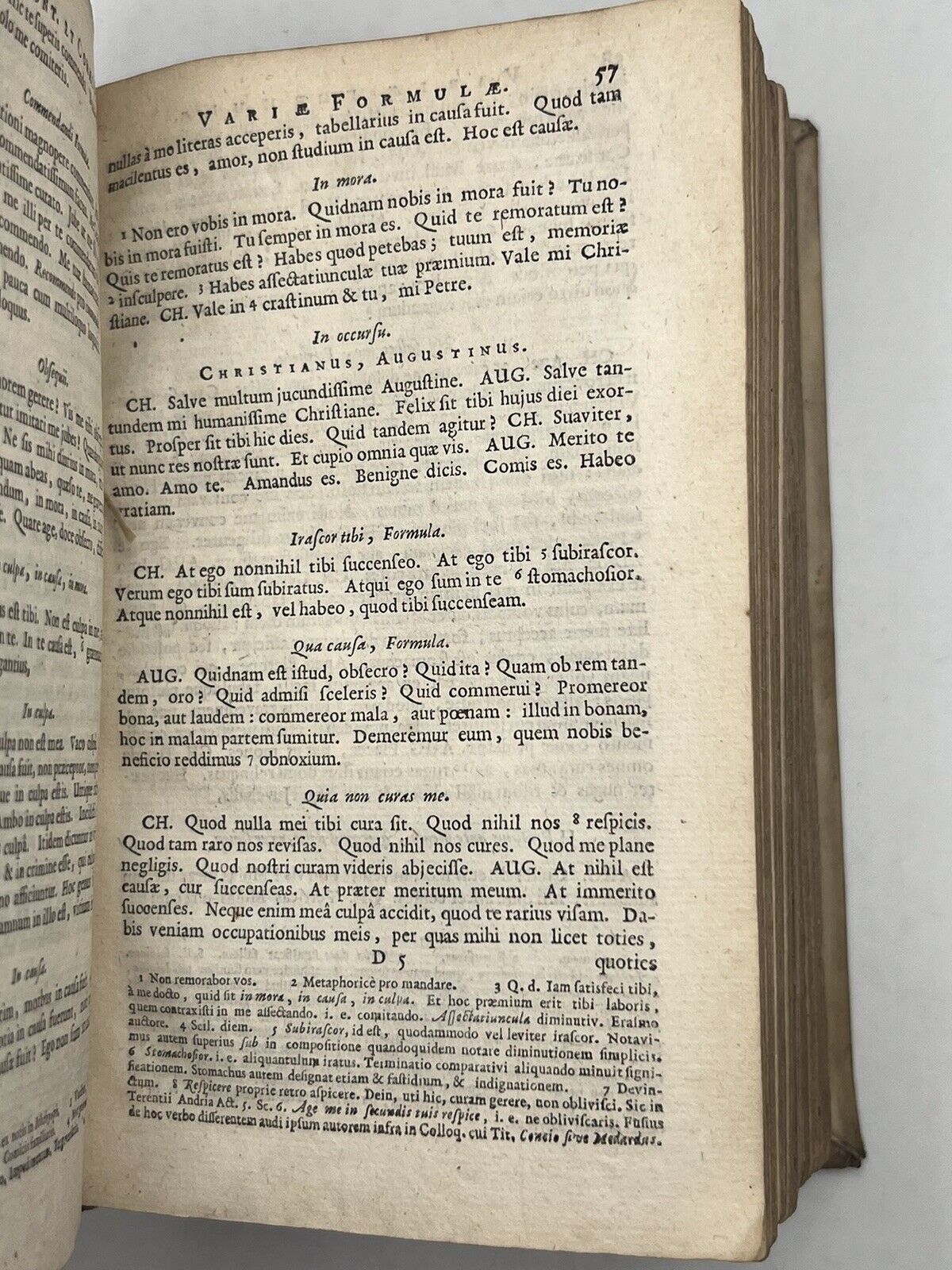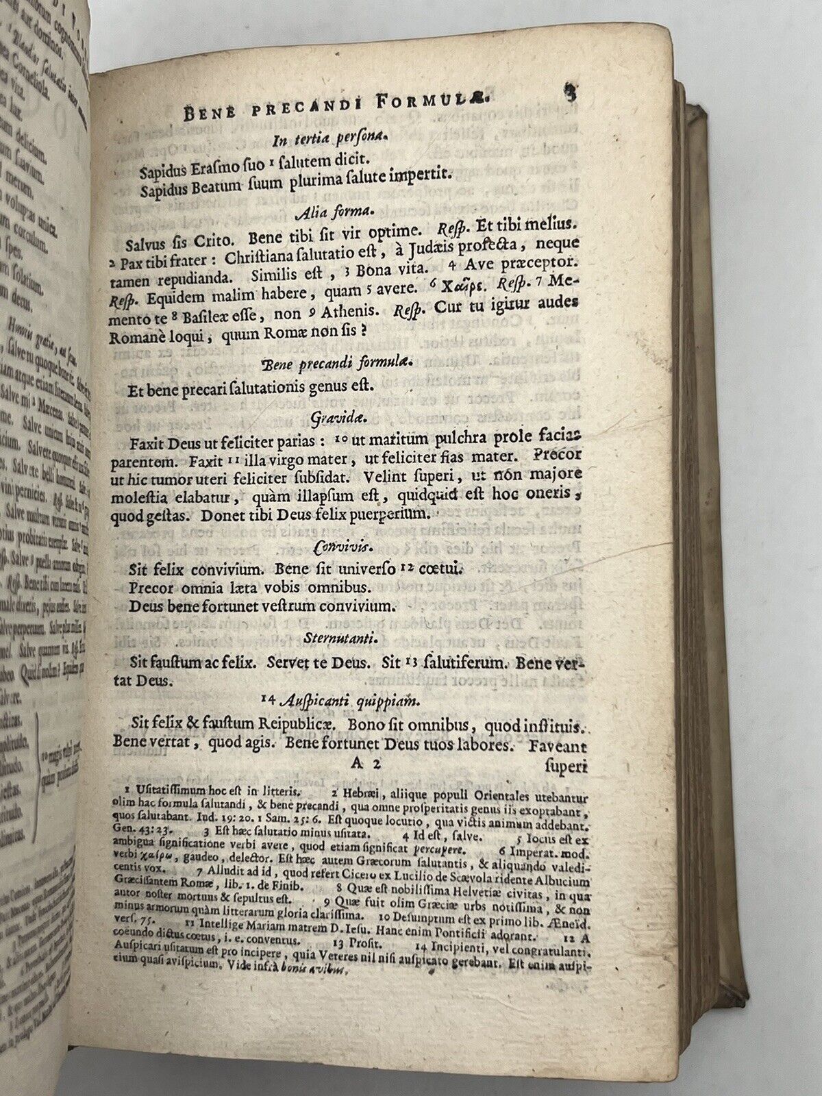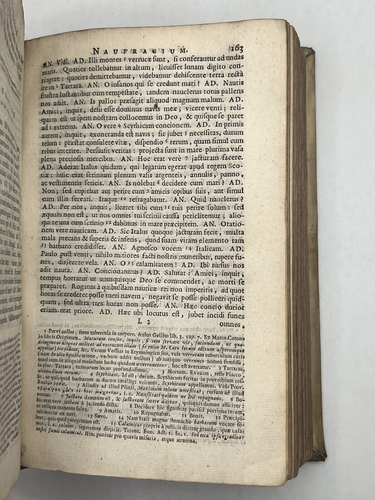 In this 1693 edition, edited by Petrus Rabus of Rotterdam, the Colloquies are added with his notes. Rabus' annotations are invaluable, providing clarity and commentary that enhance understanding of Erasmus' nuanced arguments.
