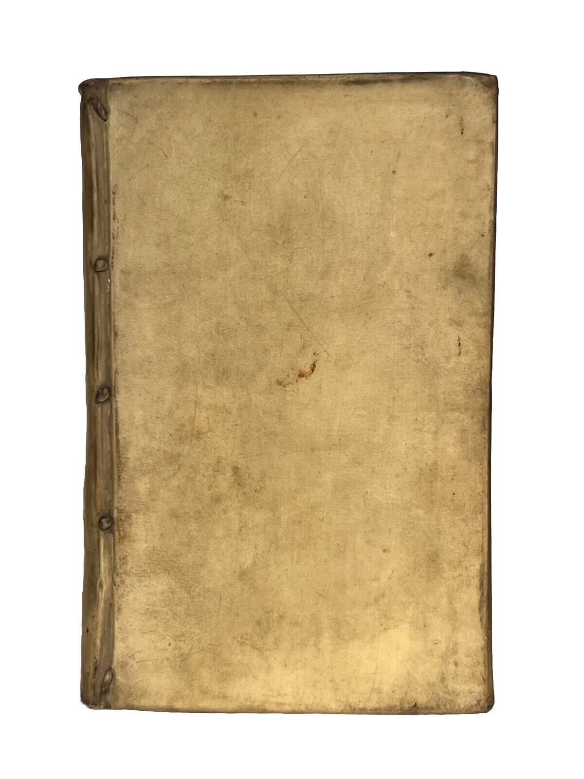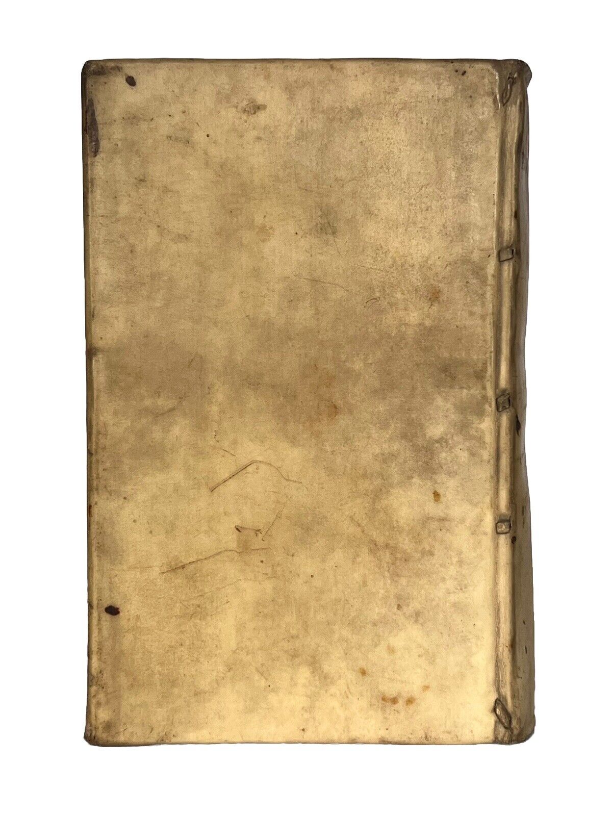 Contemporary full vellum binding with title written to head of spine contemporaneously, as often. Vellum a little discoloured but generally very good, structurally secure with both boards securely attached, retaining the original joints. Without shelf lean. Boards tend to splay outwards as often. Without any attached bookplates or ownership inscriptions, exceptionally clean throughout the text block. A remarkable copy. Text ends on 2L5, collated as complete, including the index bound in at the rear and supplementum. Pastedowns starting to separate from boards as often