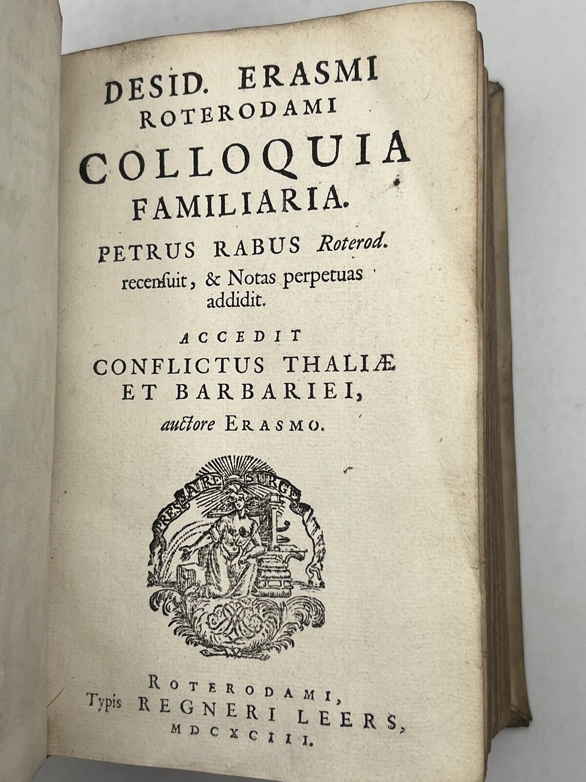 Desid. Erasmi Roterodami Colloquia Familiaria Petrus Rabus Roterod recensuit, et Notas perpetuas addidit Accedit Conflictus Thaliae et Barbariei, auctire Erasmo. Roterodami: Regneri Leers, 1693.