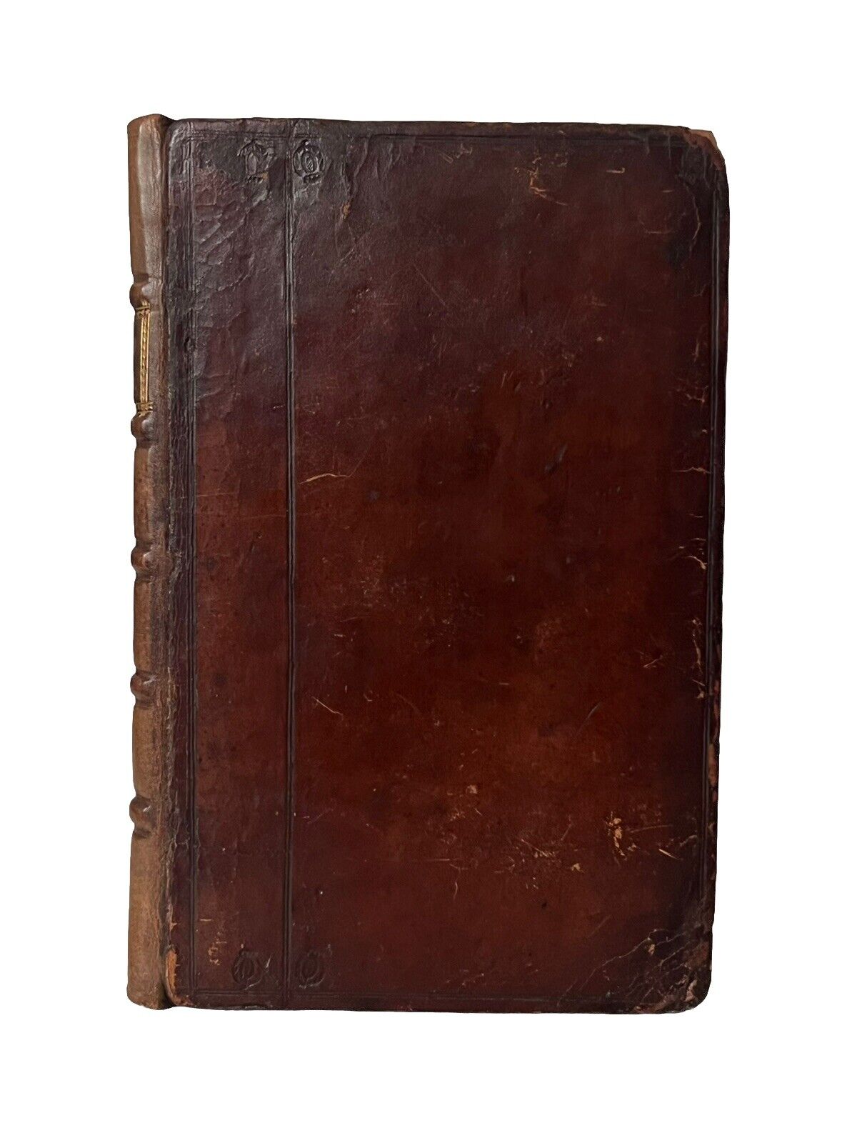 Finely rebacked full calf binding, preserving the contemporary boards which are lined in a very typical 17th century English binding with a very distinctive blindstamp at the extremities of these lines on the boards which one assumes should identify the binder, but we couldn't trace a record of who this tool belongs to in H.M. Nixon's bibliography on this. The book shows very attractively indeed on the shelf, spine in fine condition, with an attractive, though a little naively, tooled label. Binding secure with both boards securely attached, the binding without shelf lean. Collated as complete, but without the original blanks which have here been replaced with the rebacking. No attached bookplates, but with a few ownership inscriptions in the typical places, with some minimal marginalia dated c.1769. Ownership inscription of John Brown to head of title page, small. Text block toned throughout as typical, but generally very clean, free of foxing/staining, etc. Internally excellent.