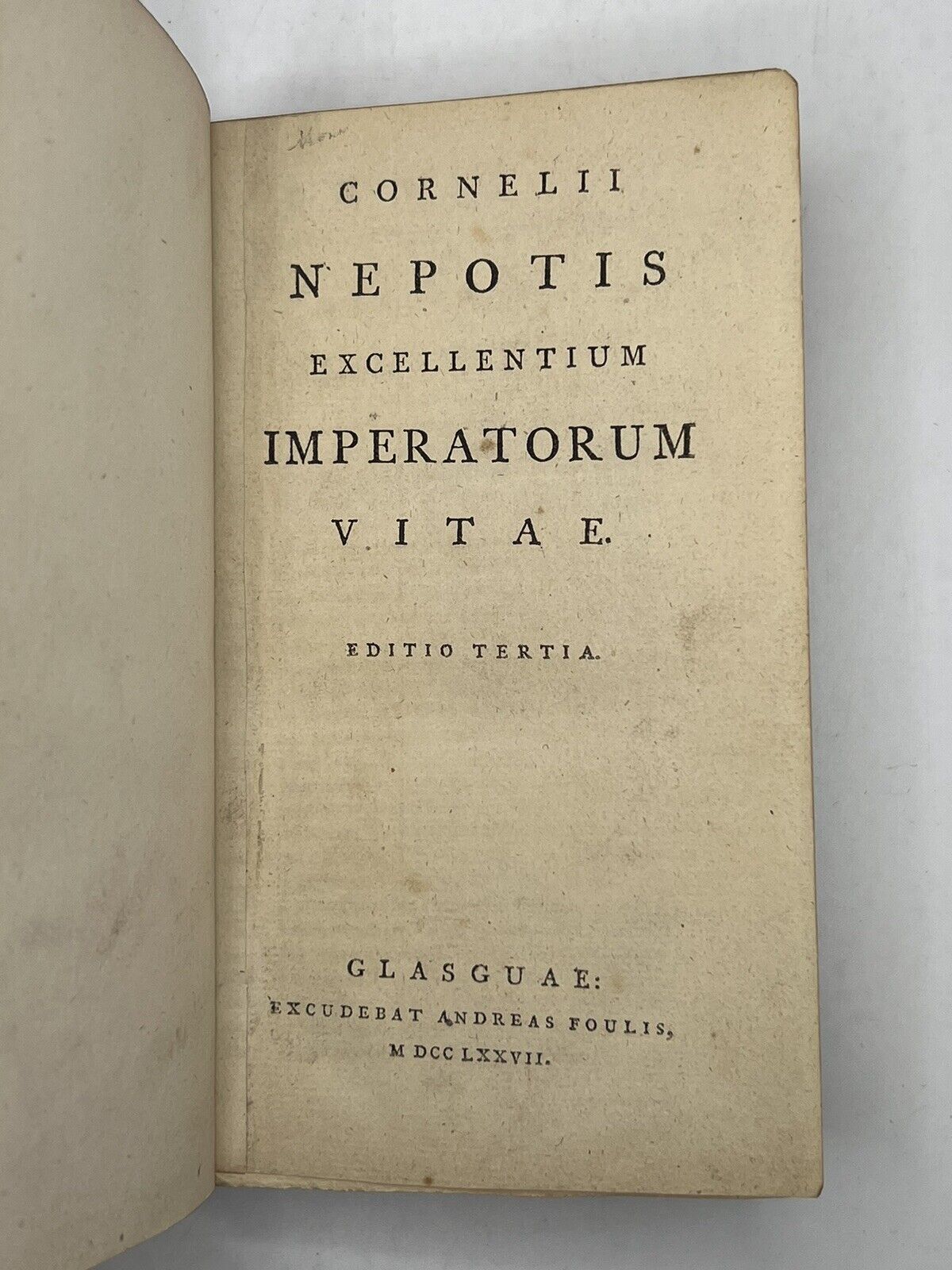 Cornelii Nepotis Excellentium Imperatorum Vitae. Editio Tertia. Glasguae: Andreas Foulis, 1777, t.e.g.