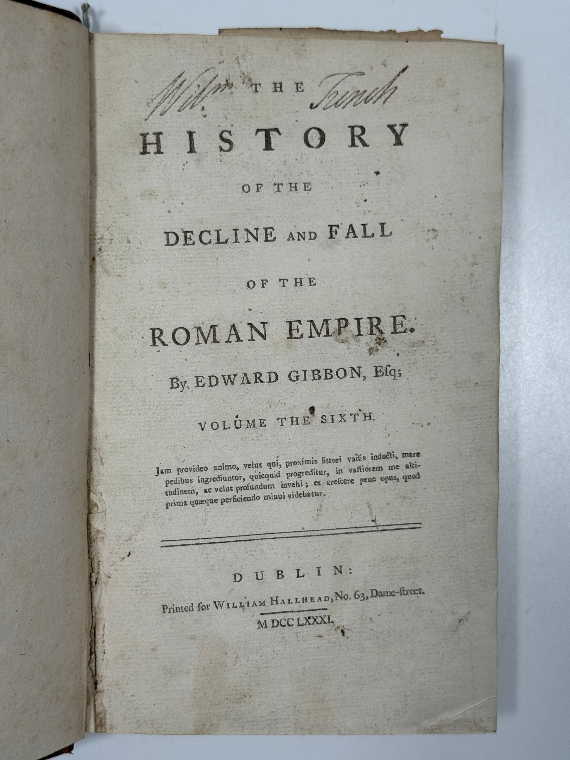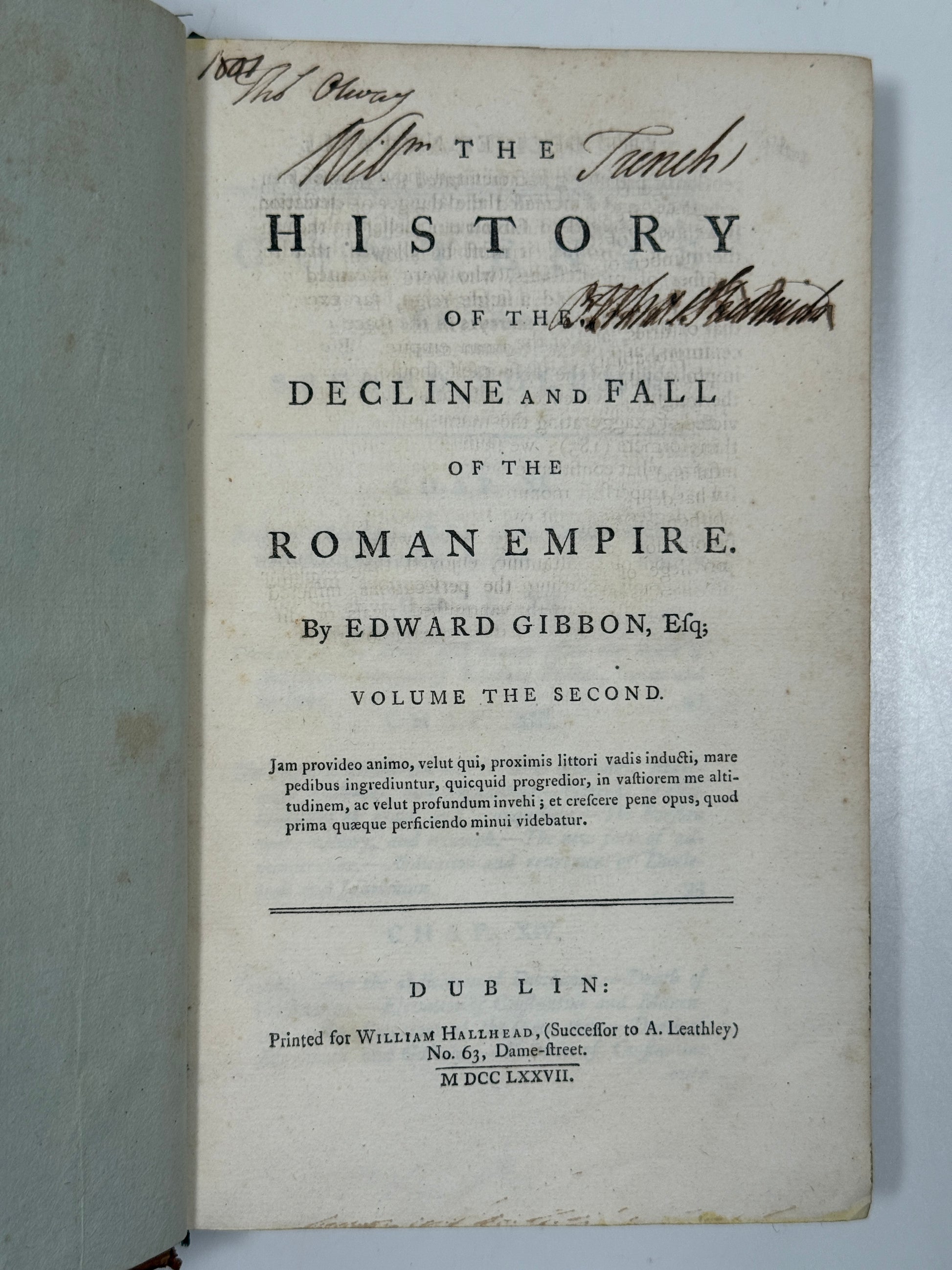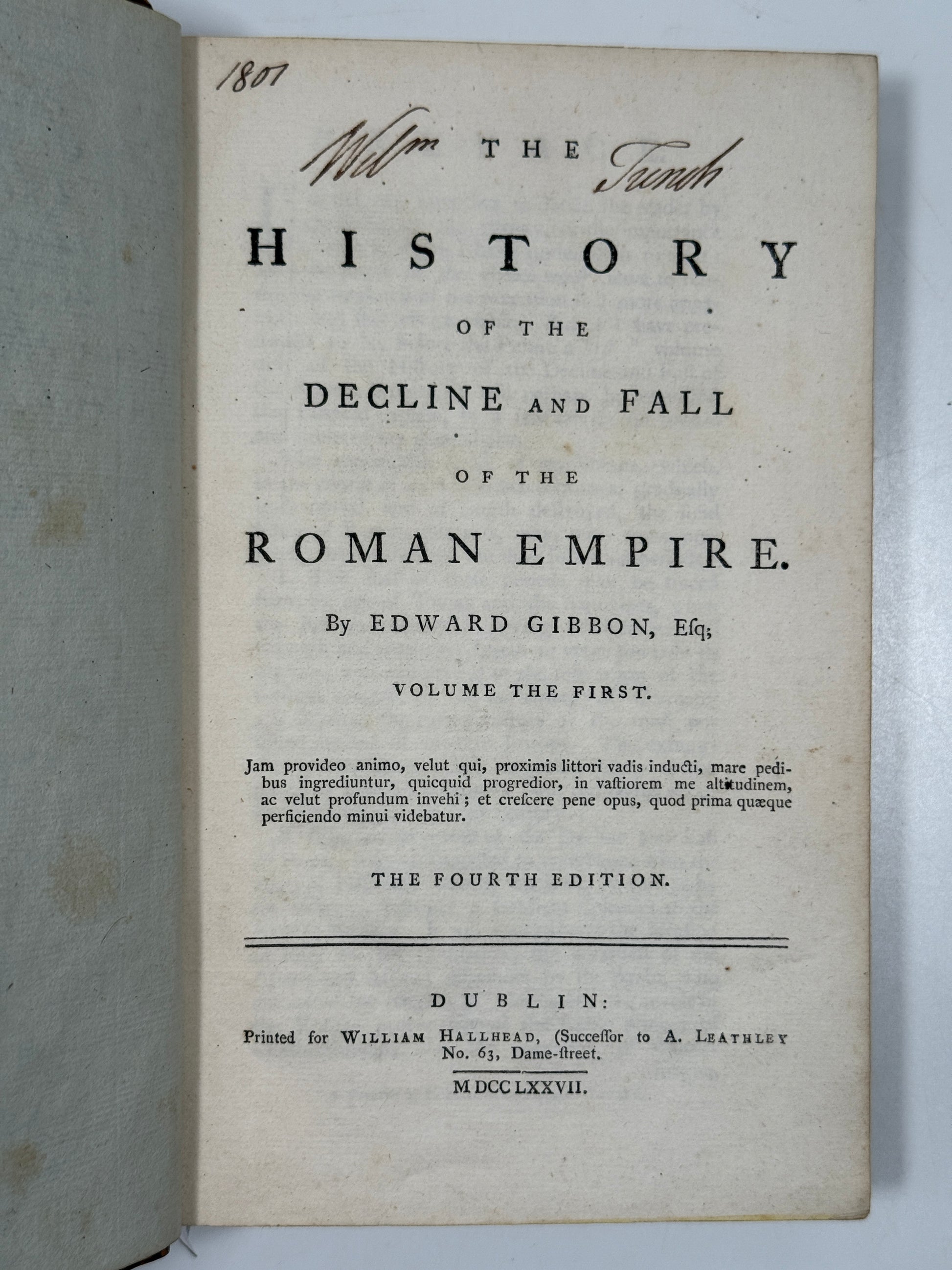 The History of the Decline and Fall of the Roman Empire by Edward Gibbon. Dublin: William Hallhead, 1777-1781, 8vo.