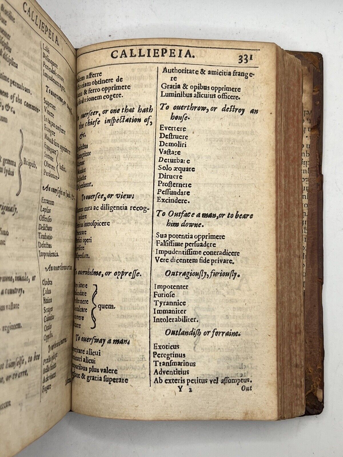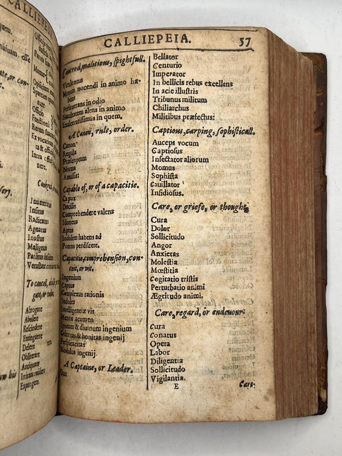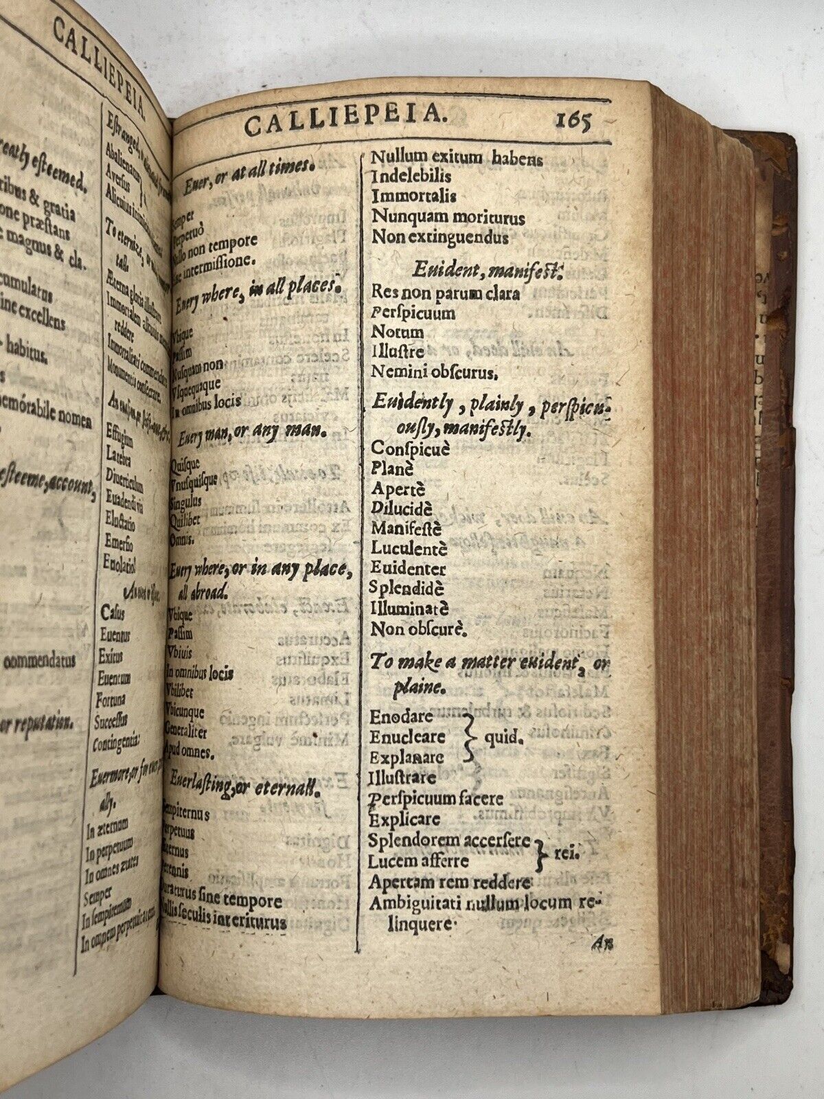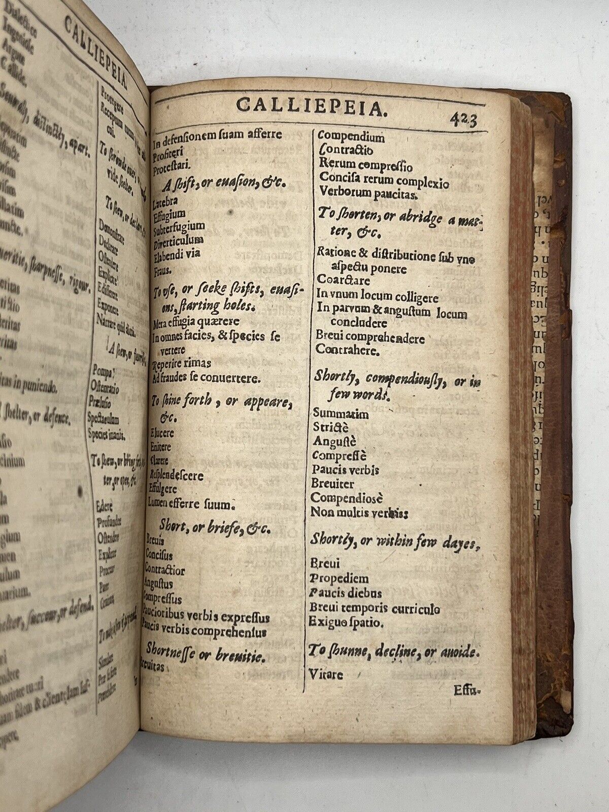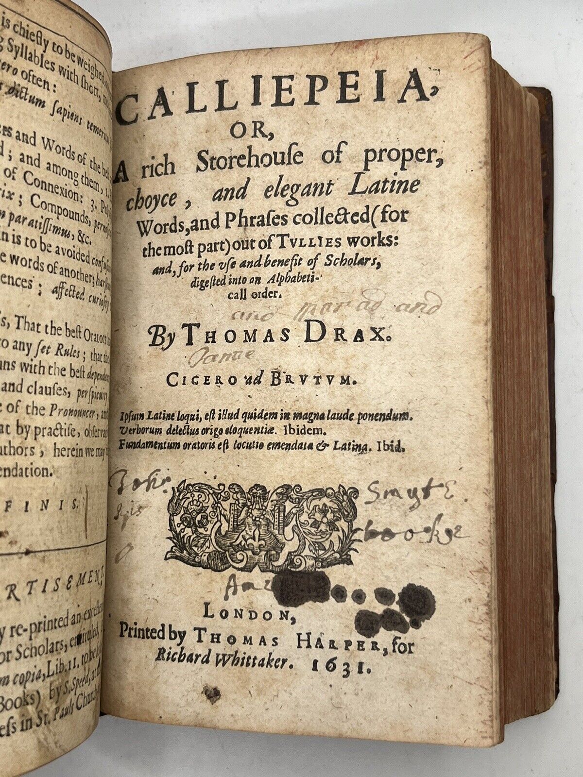 Calliepeia, Or, A Rich Storehouse of Proper, Choyce, and Elegant Latine Words, and Phrases Collected (for the Most Part) out of Tullies Works: and, for the Use and Benefit of Scholars, Digested Into an Alphabeticall Order. By Thomas Drax. London: Thomas Harper, 1631.