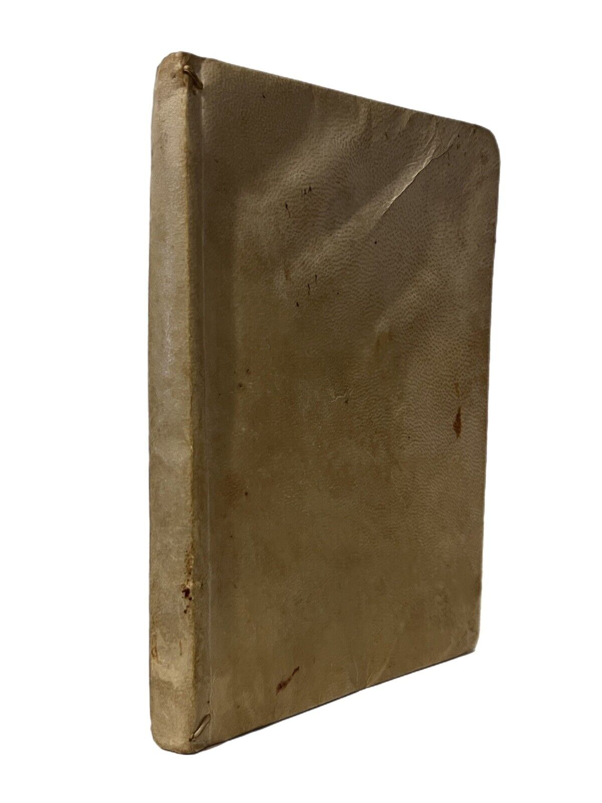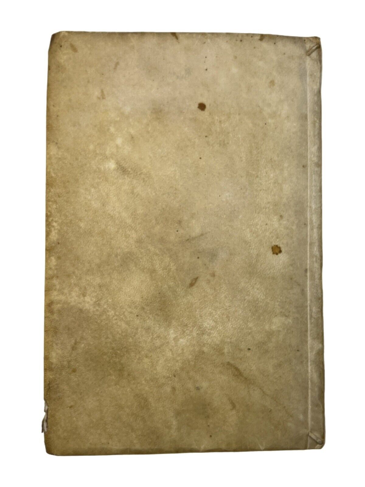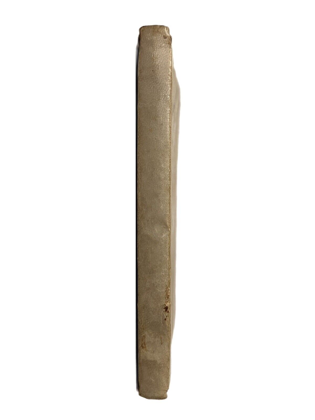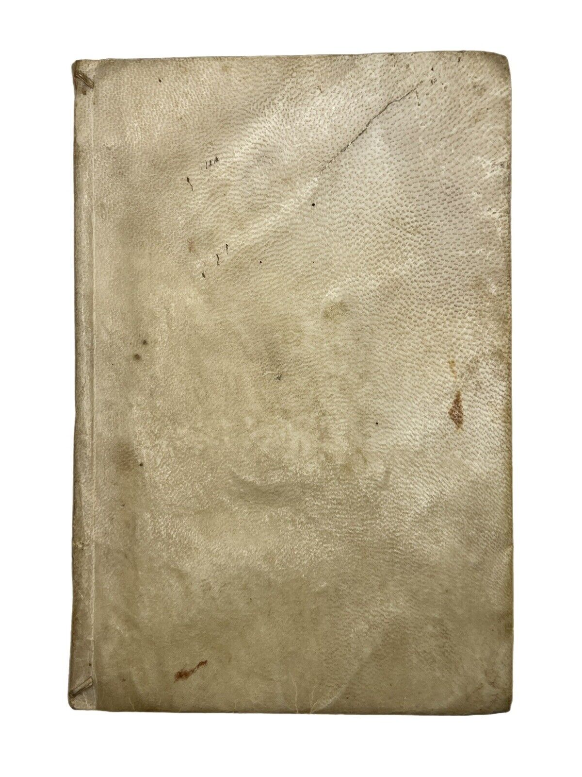 Later (c.18th century) full limp vellum binding without external identification, boards securely attached. Backstrip separated from page block but attached with binding strings at extremities. Some minor discolouration to vellum, but generally very good, without the significant deformation typical of limp vellum. Generally very clean throughout the text block, some dampstaining to a few leaves towards the rear of the book, mainly to margins. Occasional minor marks / small ink stains as often.