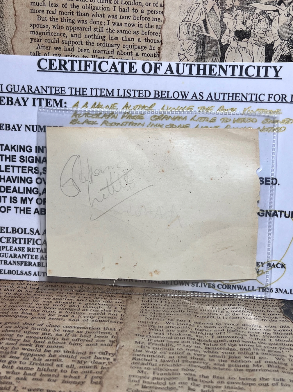 Signature: Lightly toned with very minor foxing. Pencil ownership signature on reverse side. Comes with authenticity certificate from Elbolsa Autographs and Collectables, Cornwall, UK.