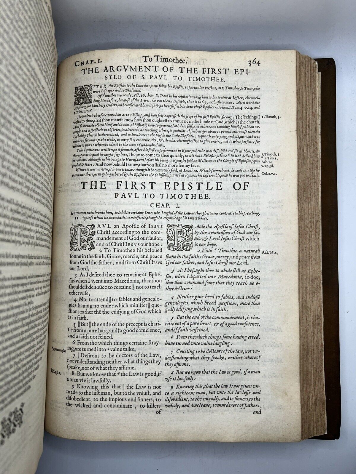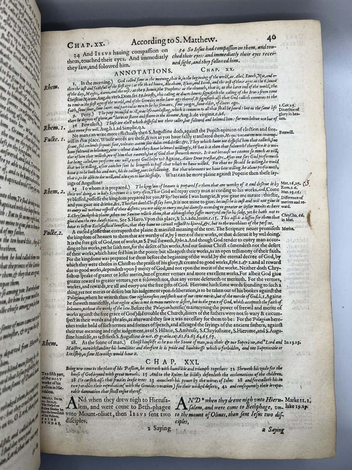 THE FIRST EDITION OF FULKE'S NEW TESTAMENT, AN IMPORTANT PRECURSOR TO THE KING JAMES BIBLE WHICH COMPARES THE BISHOPS BIBLE AND DOUAY-RHEIMS VERSIONS IN PARALLEL COLUMNS.