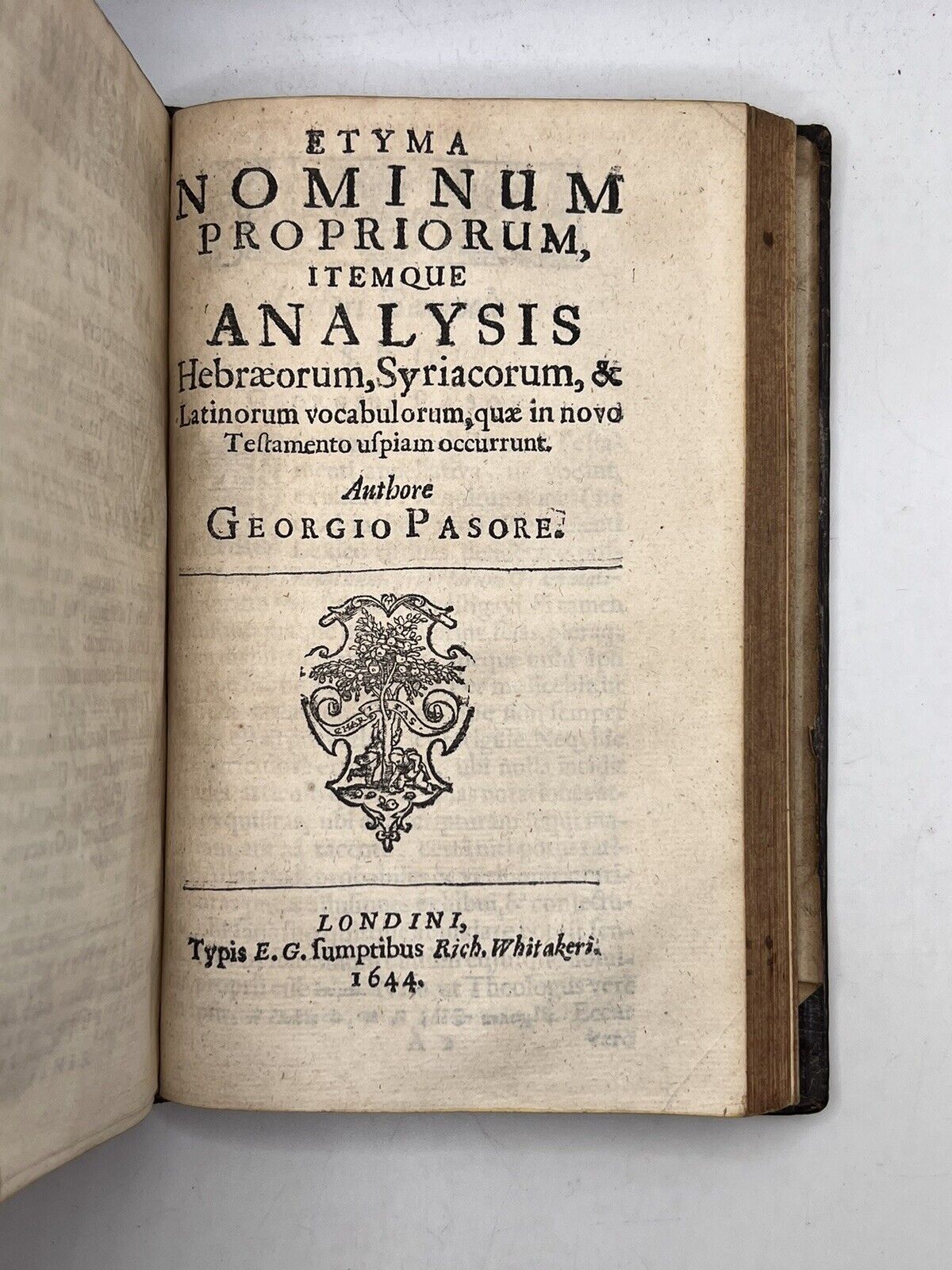 Etyma Nominum Propriorum, Itemque Analysis Hebraeorum, Syriacorum, & Latinorum Vocabulorum, Quae In Novo Testamento Uspaim Occurrunt. Authore Georgio Pasore. Londini, Typis E. G. Sumptibus Rich. Whitakeri. 1644.