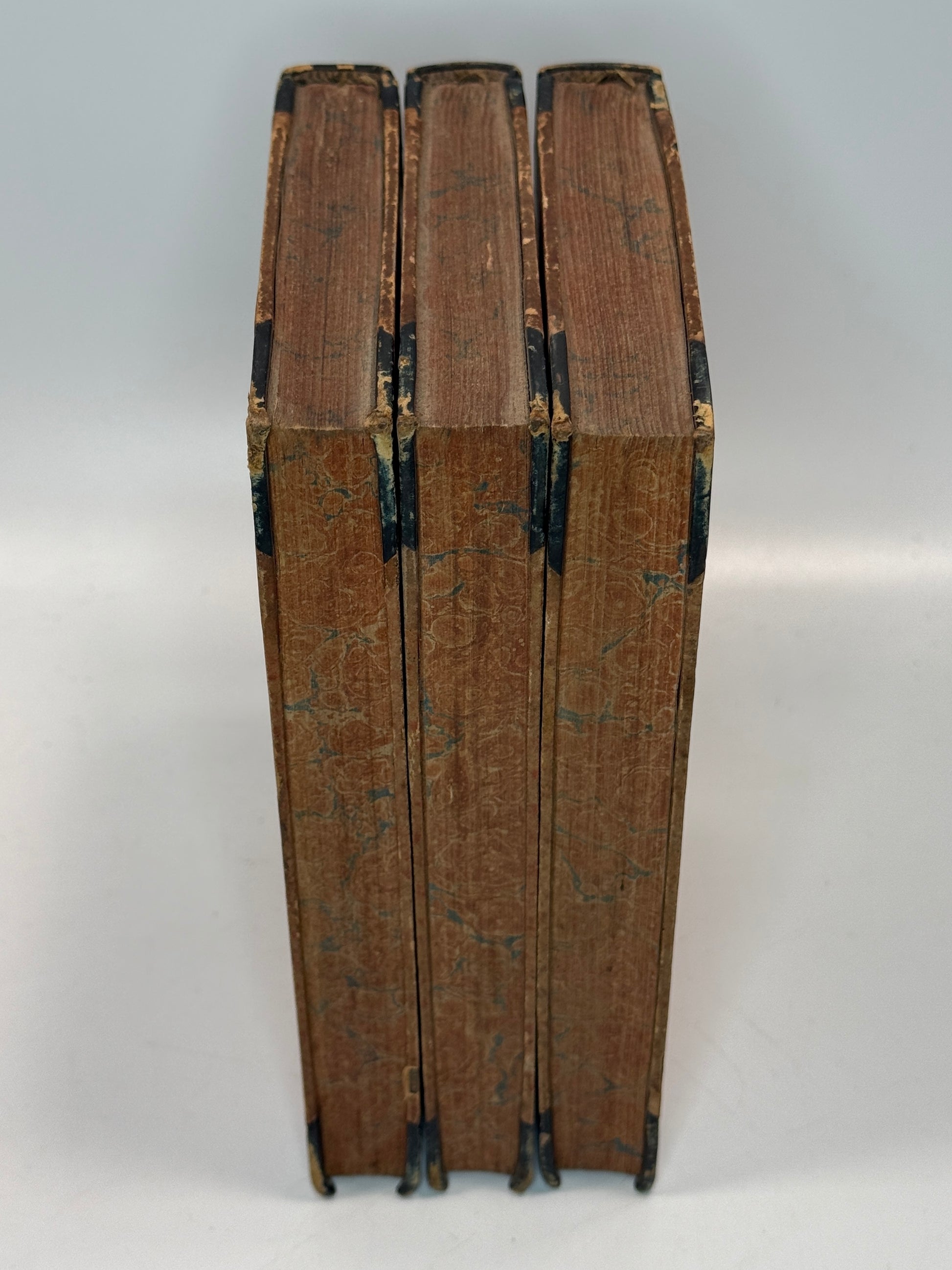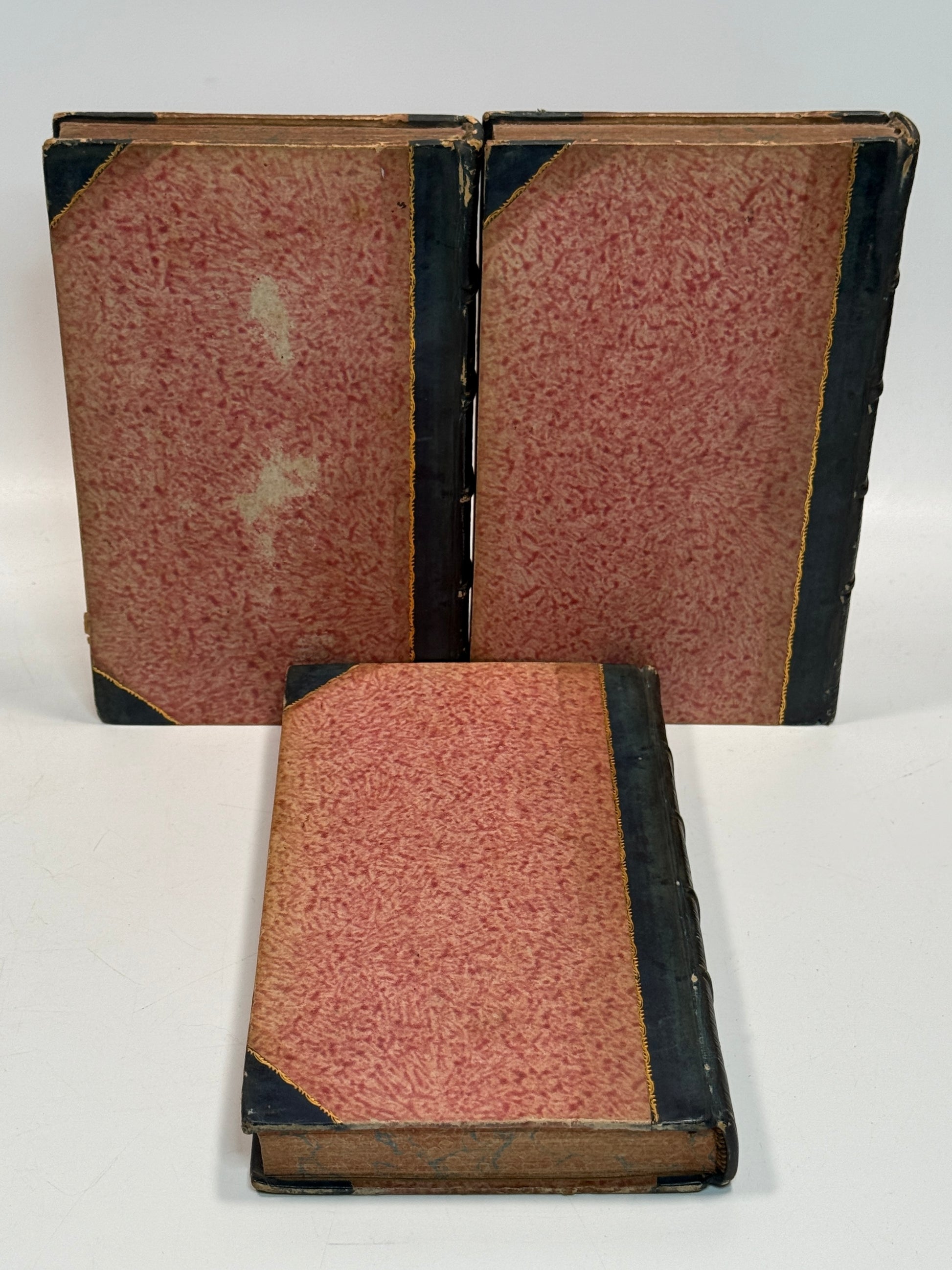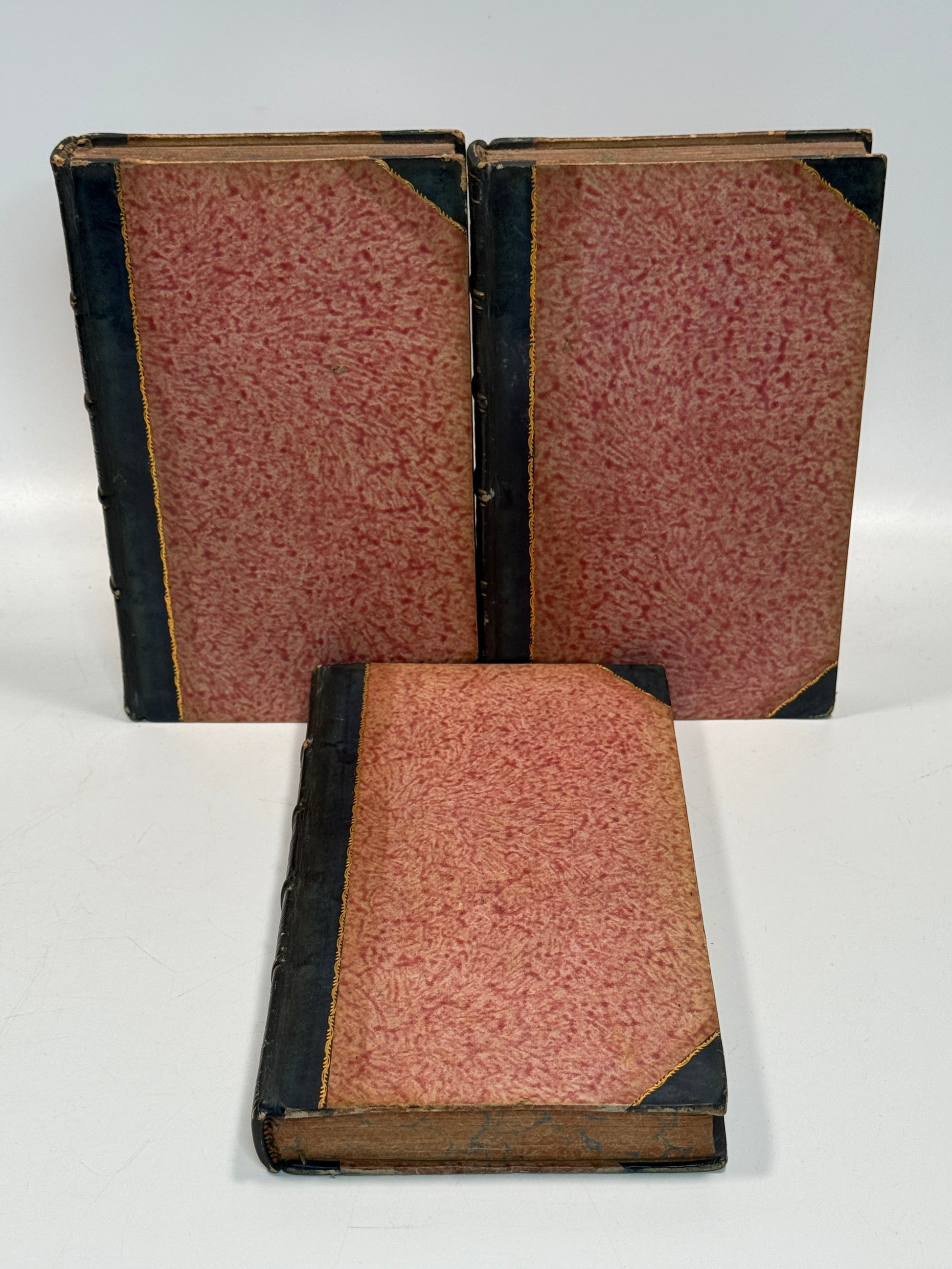Contemporary quarter navy morocco over marbled paper backed boards with gilt titles and volume numbers to spines. Bindings with minor signs of wear, some minor toning, very minor and faint marks, some rubbing, and few very minor scratches. All boards attached with wear to joints and hinges, some hinges starting. Shelf and edge wear. Marbled page edges somewhat dulled with the top edges darkened. Bookplate attached to front pastedowns. Text blocks very clean with light toning and occasional foxing. Small number of leaves more toned and foxed than others. Uncollated.