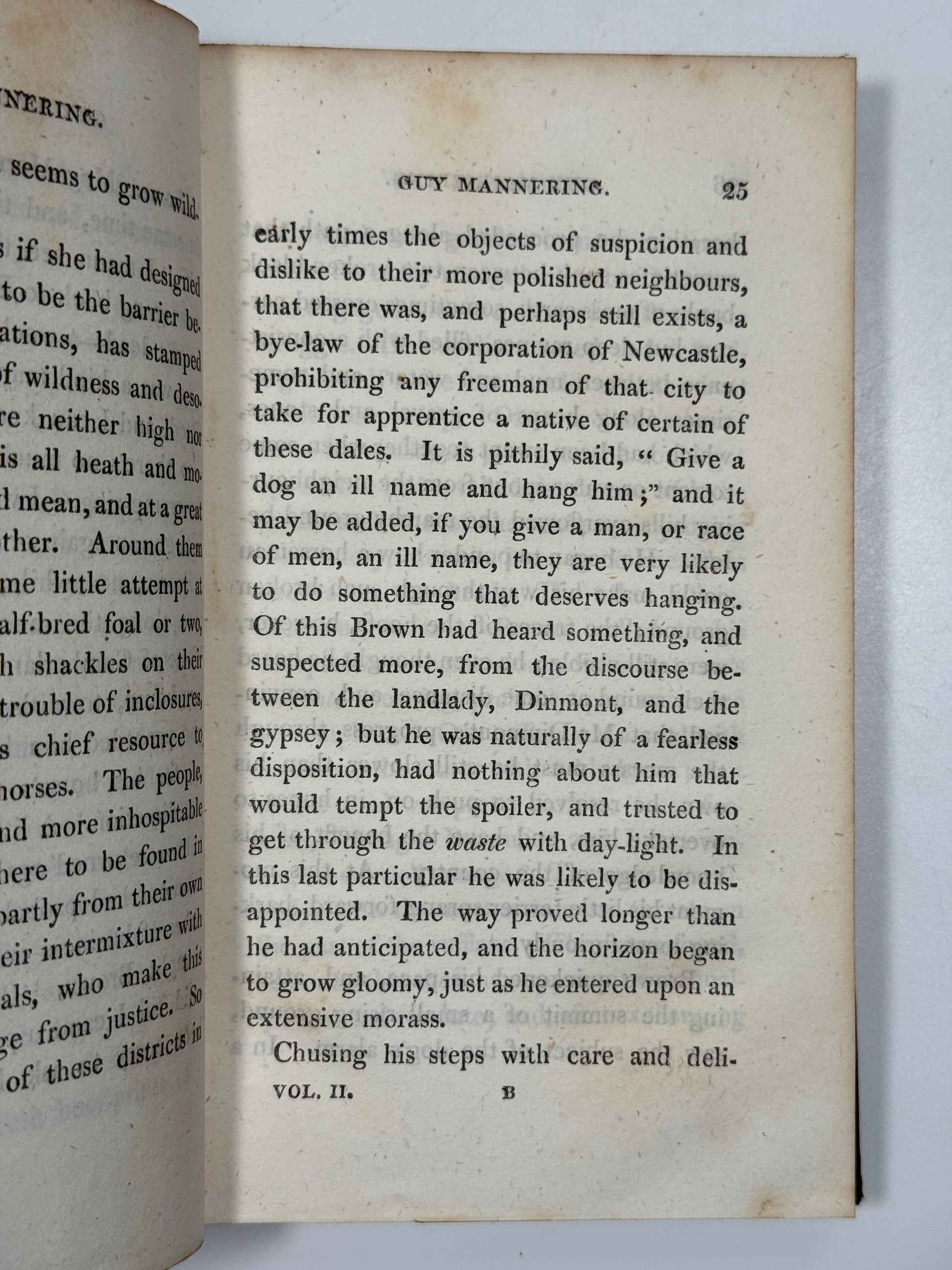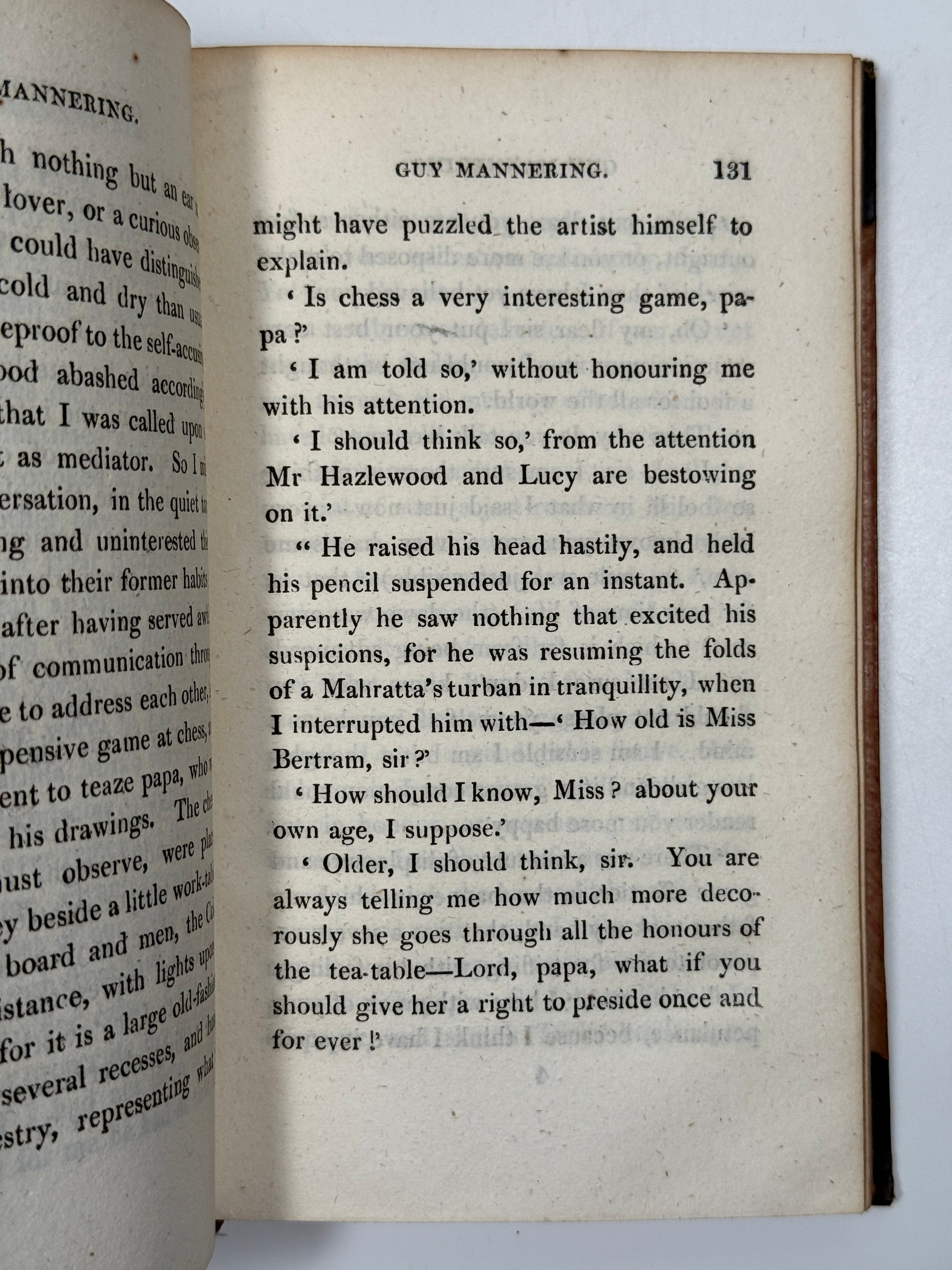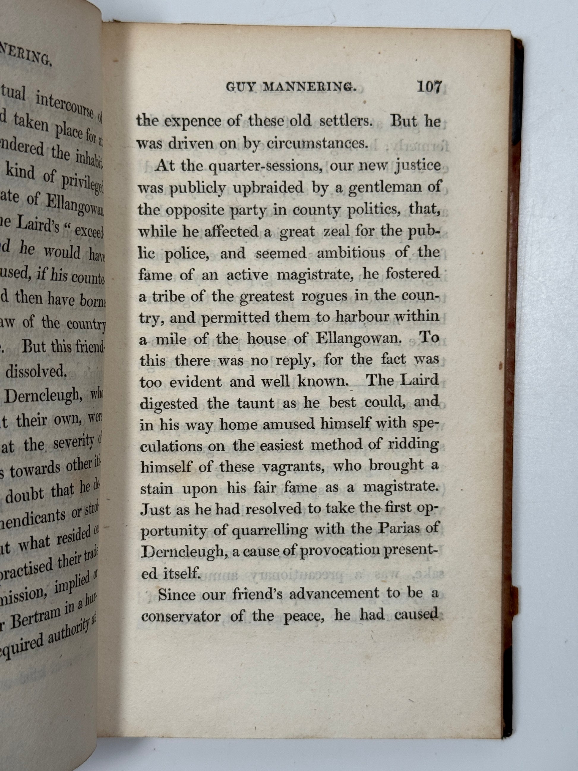 Guy Mannering; or, the Astrologer. By the Author of "Waverley." [Walter Scott]. In Three Volumes. Fourth Edition. Edinburgh: Printed by James Ballantyne and Co., for Longman, Hurst, Rees, Orme, and Brown, London; and Archibald Constable and Co., Edinburgh. 1817.