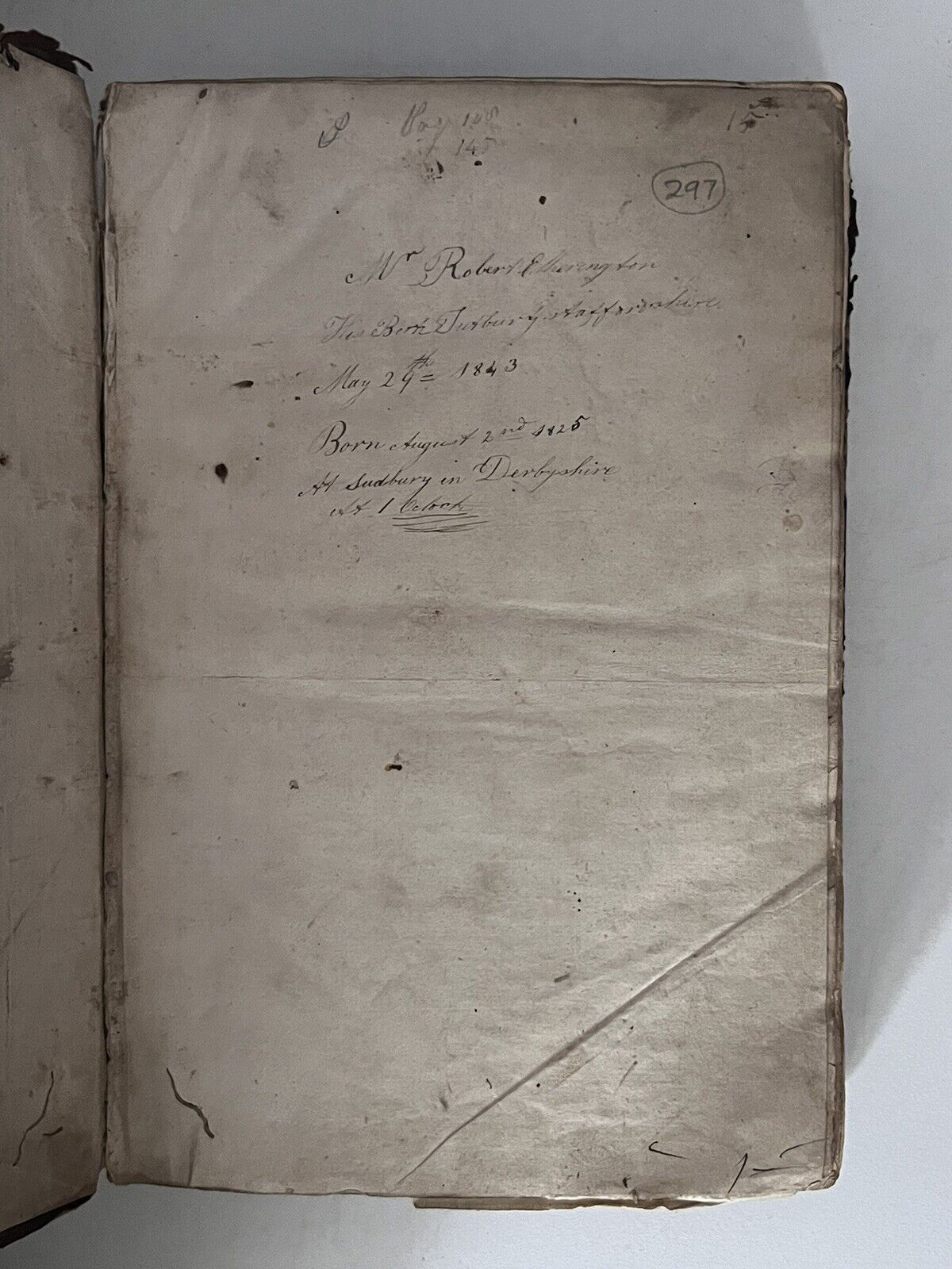 Ownership inscription of Robert Etherington of Staffordshire dated May 29th 1843.