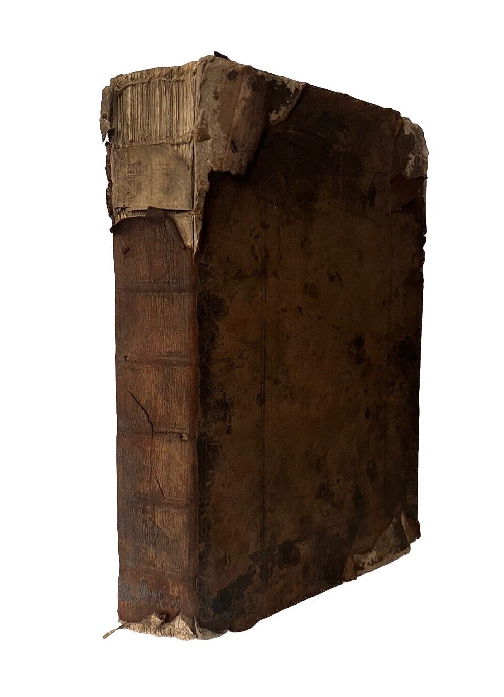 Original contemporary full calf binding, panelled, certainly of English origin. Binding rubbed with some losses to leather, peeling in places, both boards securely attached. A few ownership inscriptions to endpapers, one to title page. Pasted paper to front endpaper dated 1837 recording S.T. Etherington's death, quite possibly transferred from a family Bible. Some corresponding staining to reverse of that blank from the glue. Text block mildly toned, but generally exceptionally clean throughout, it's really rather remarkable how beautifully clean the text block is throughout, some small minor worming in marginal blank space to a few leaves but generally internally excellent. Collates as complete including the index, errata, and advertisement leaf.